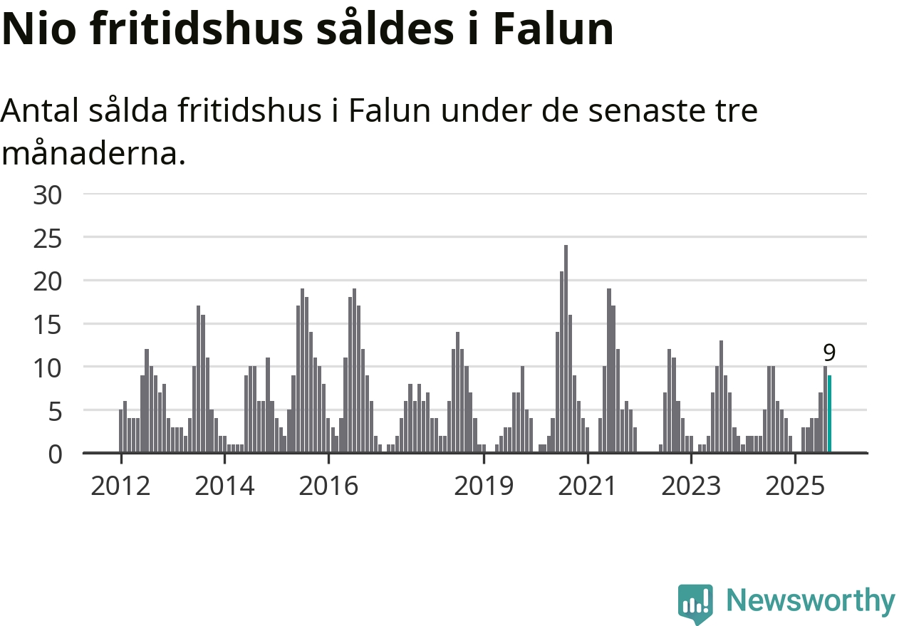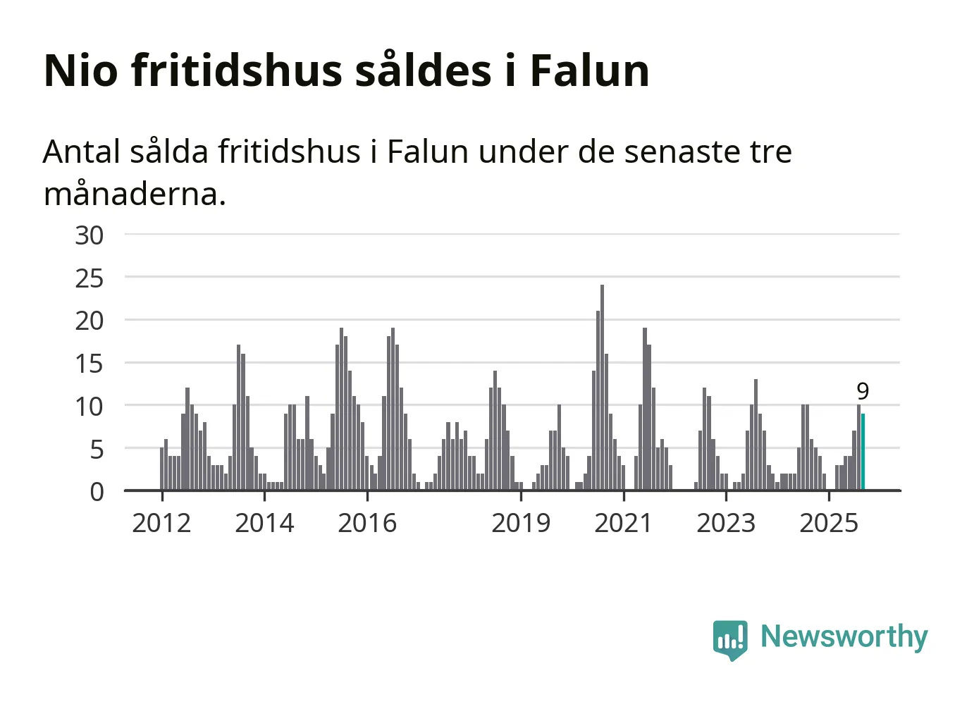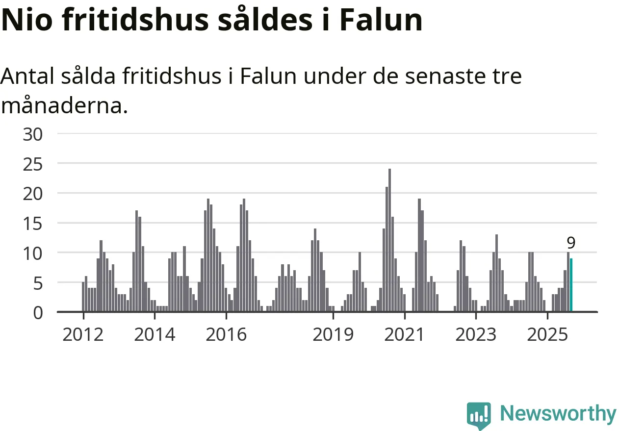 Mellan juli och september gjordes sammanlagt nio affärer med fritidshus i Falu kommun. Det kan jämföras med sex vid motsvarande tid i fjol.