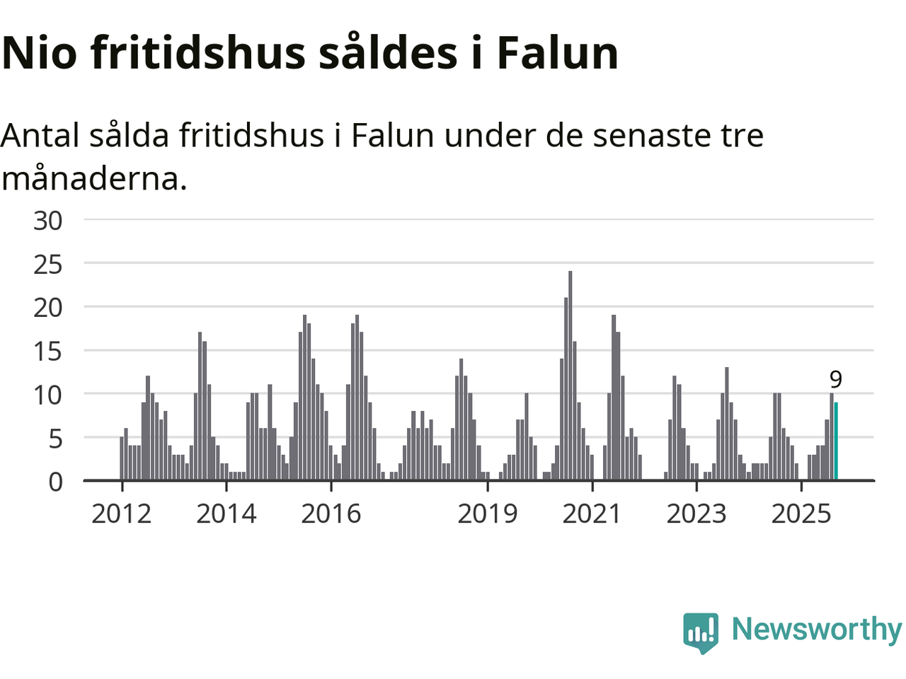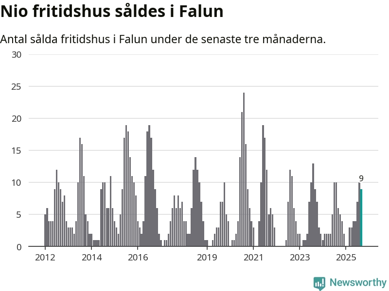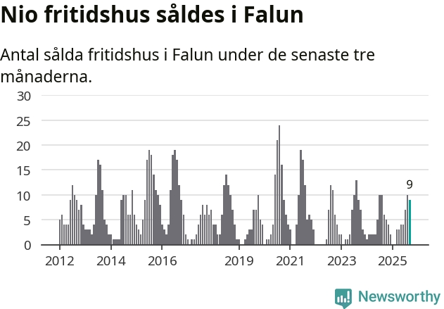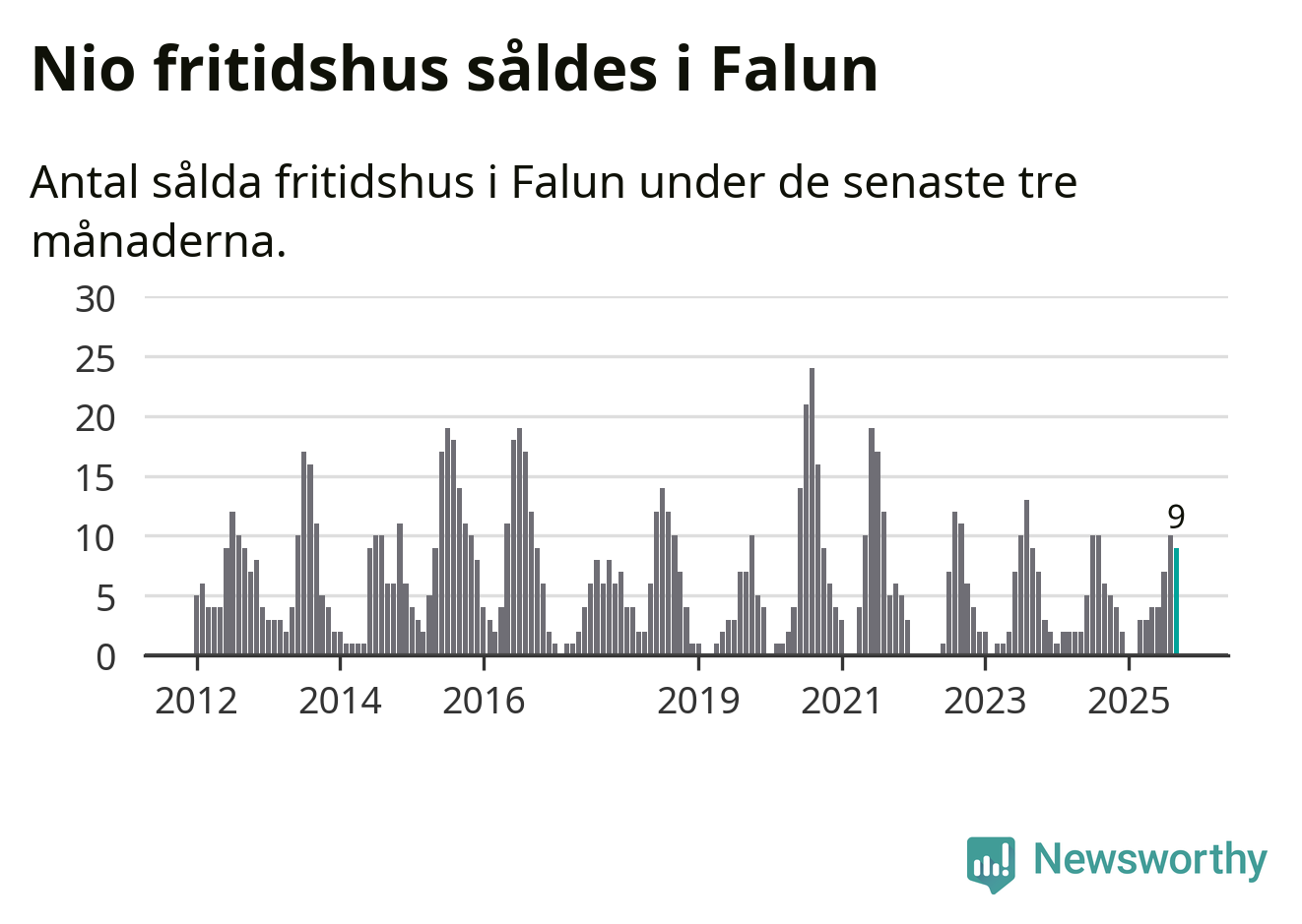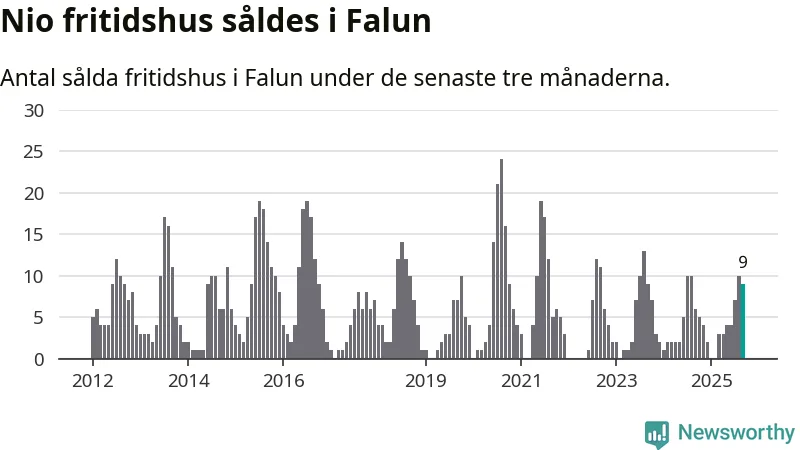 Mellan juli och september gjordes sammanlagt nio affärer med fritidshus i Falu kommun. Det kan jämföras med sex vid motsvarande tid i fjol.