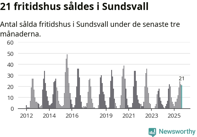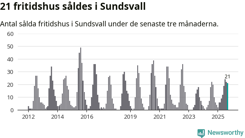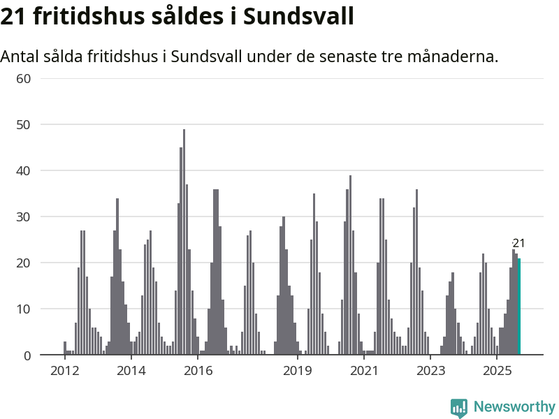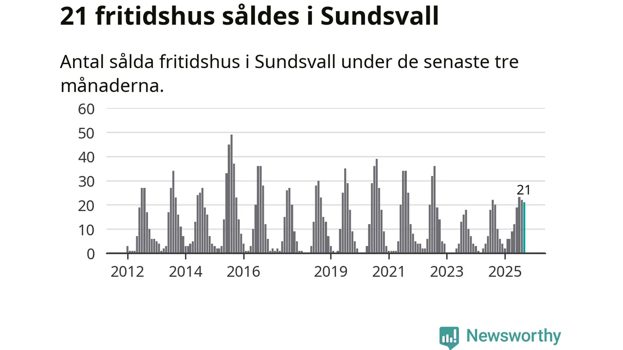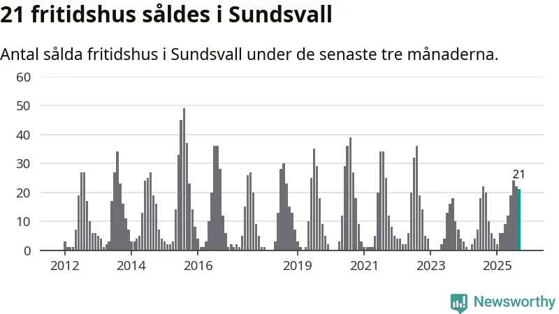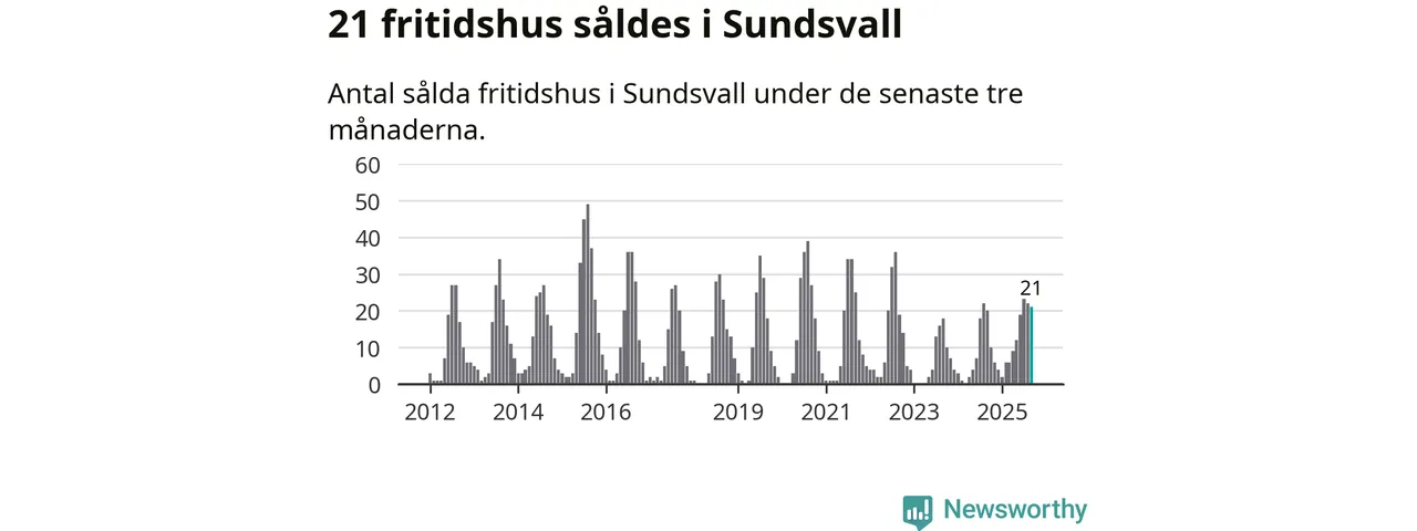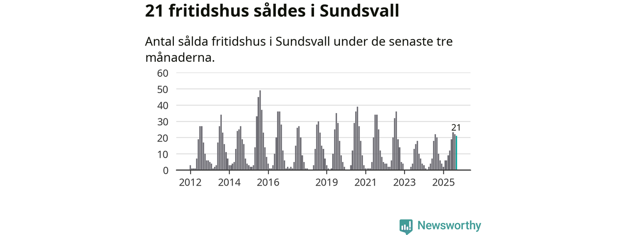 Sammanlagt såldes 21 fritidshus i Sundsvalls kommun mellan juli och september till ett genomsnittligt pris på 1,6 miljoner kronor. I fjol gjordes 20 affärer vid den här tiden på året.