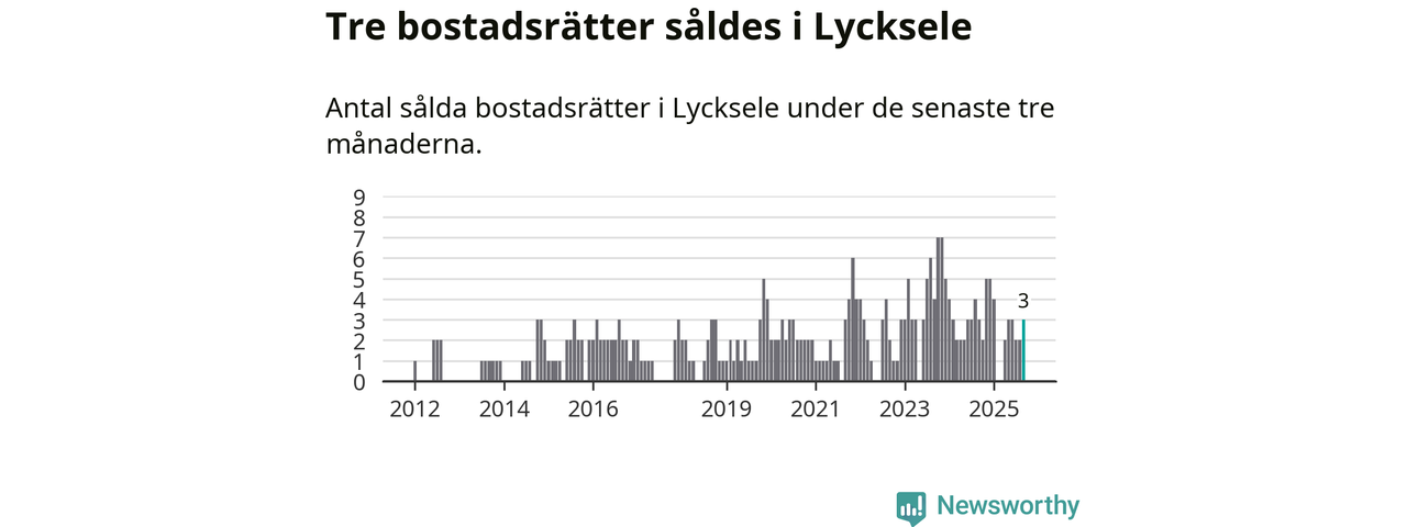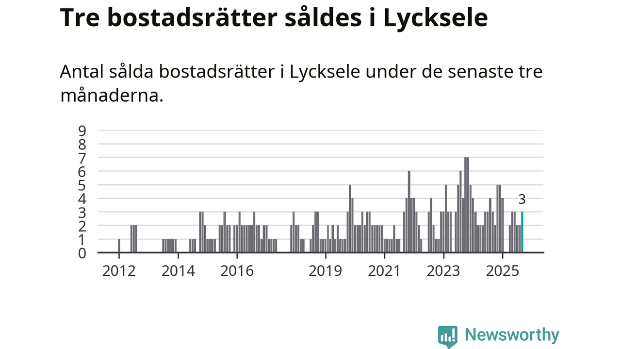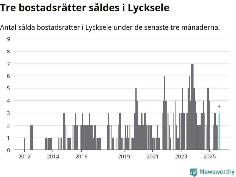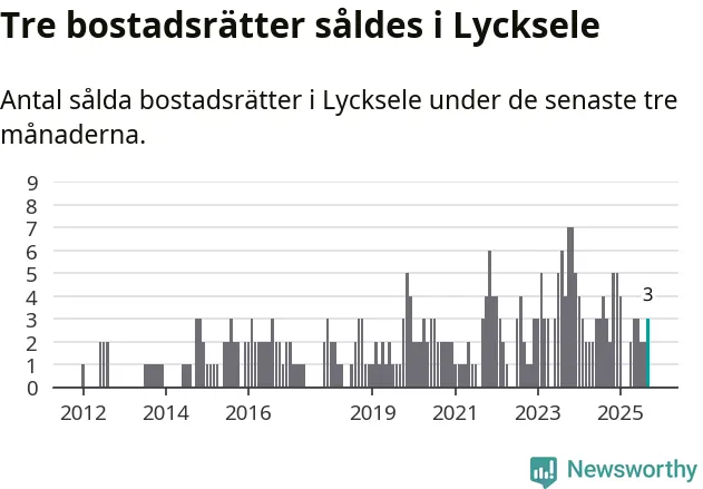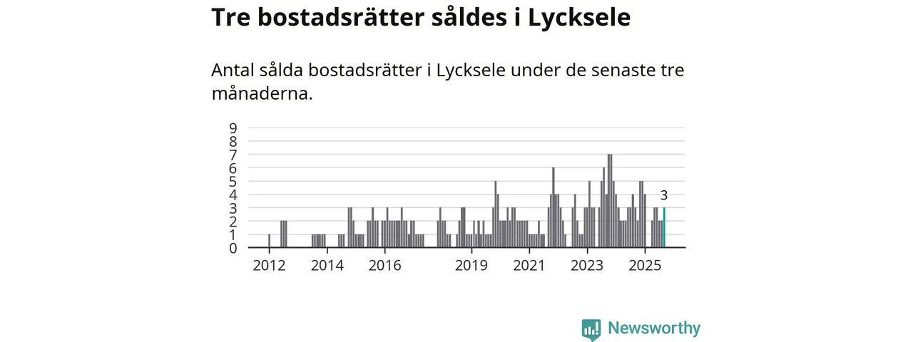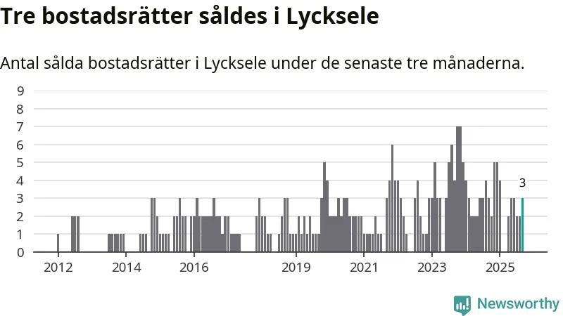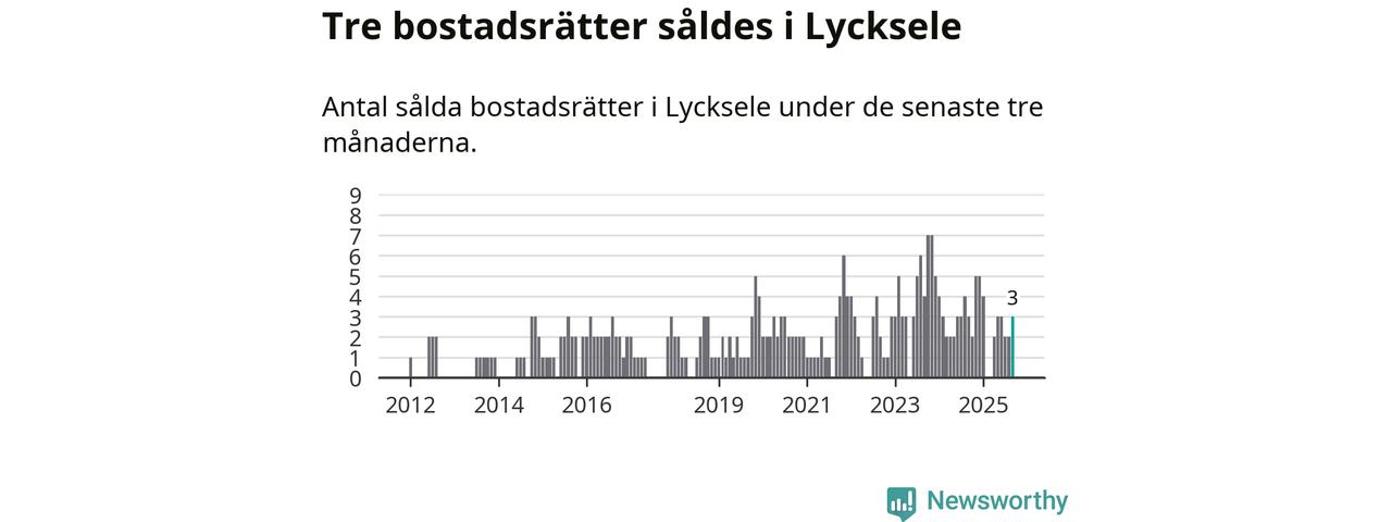 Mellan juli och september gjordes sammanlagt tre affärer med bostadsrätter i Lycksele kommun. Det är lika många affärer som vid motsvarande tid i fjol.