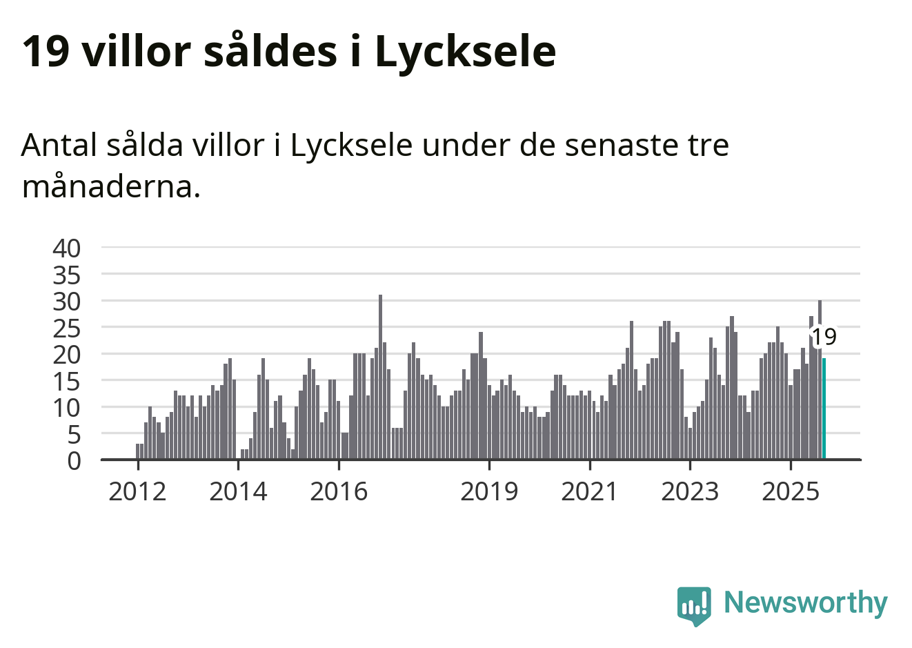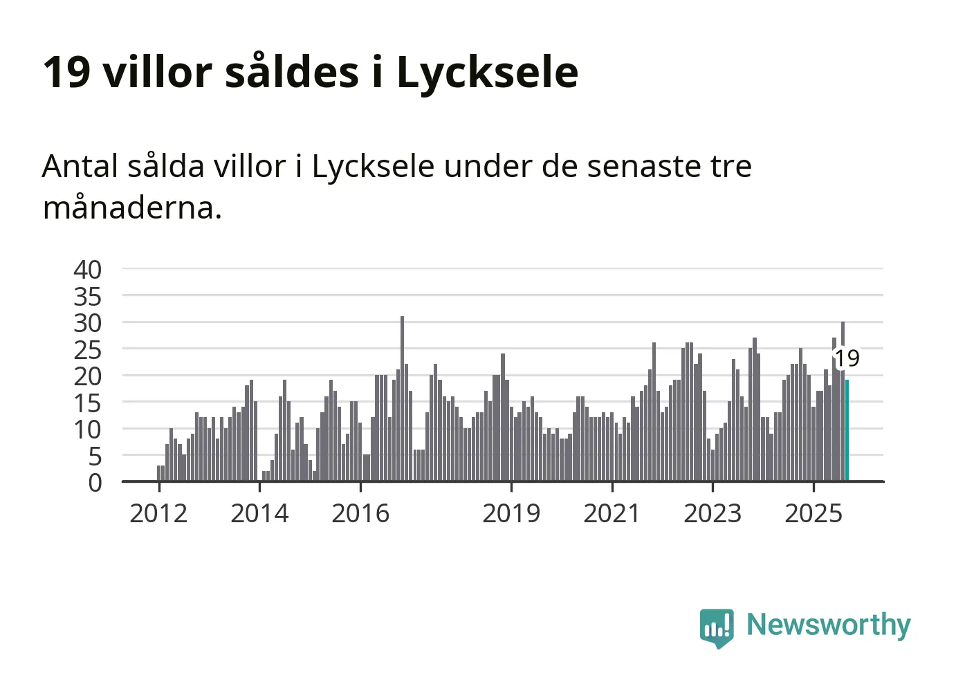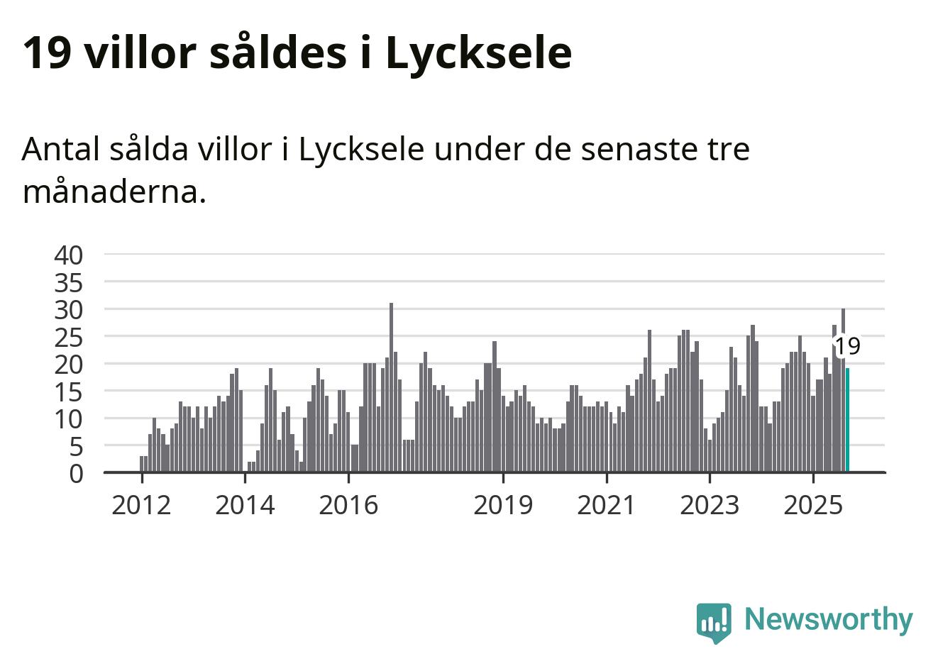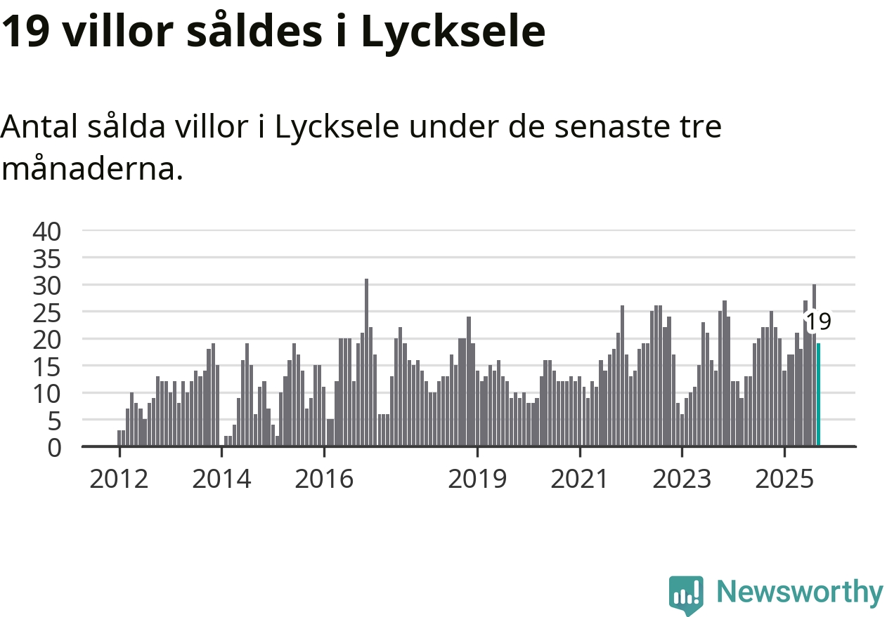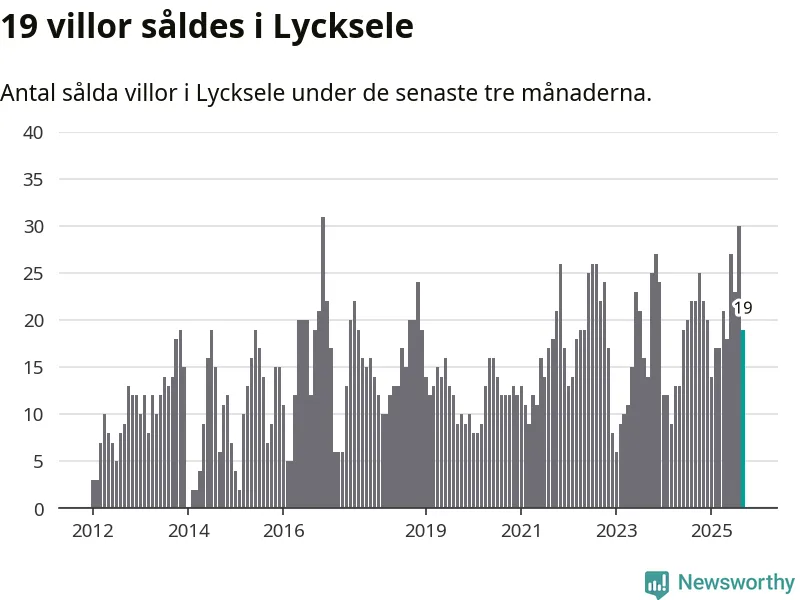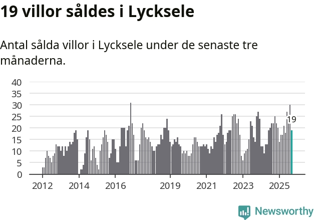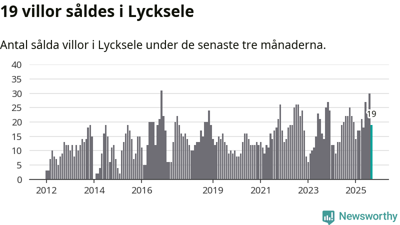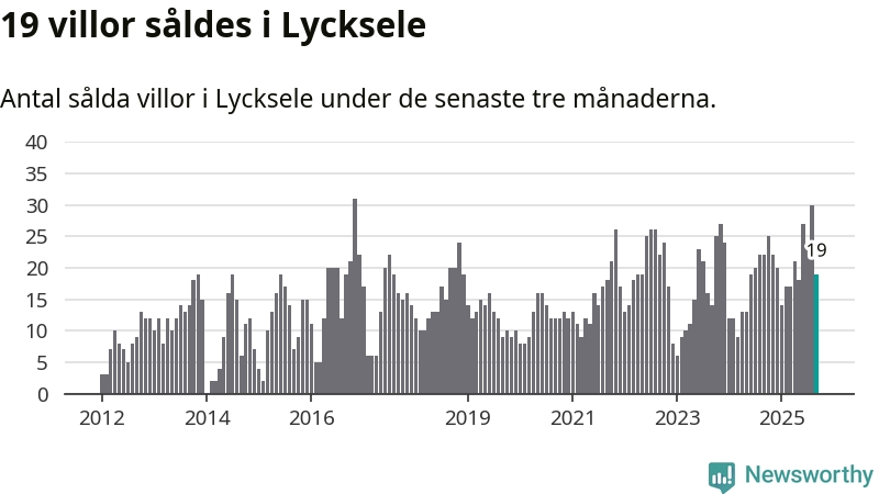 Mellan juli och september gjordes sammanlagt 19 affärer med villor i Lycksele kommun. Det kan jämföras med 22 vid motsvarande tid i fjol.
