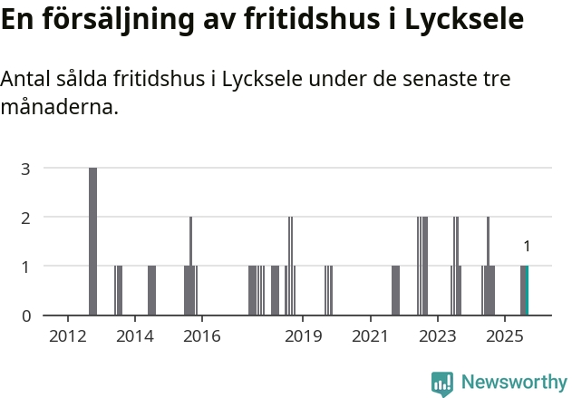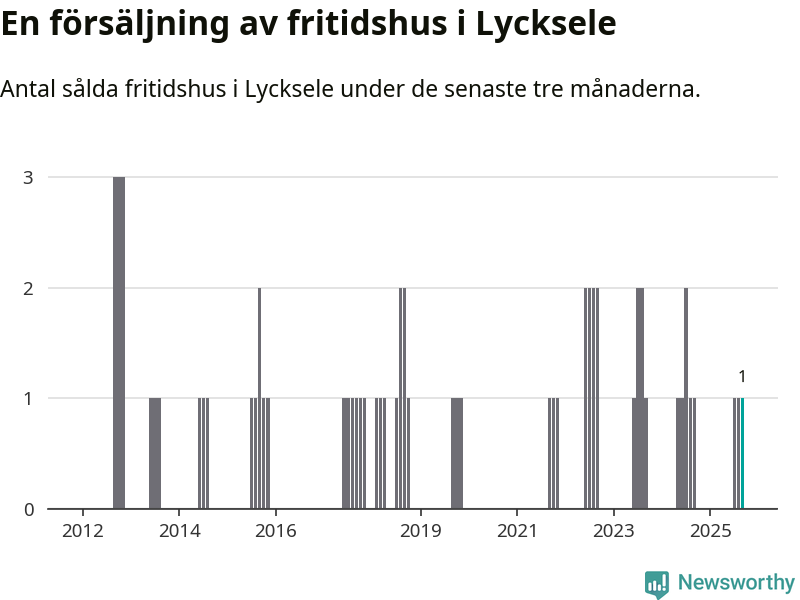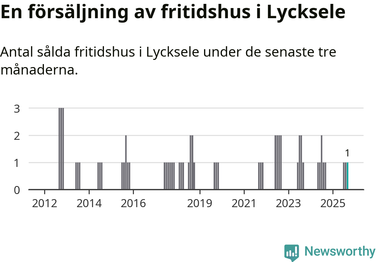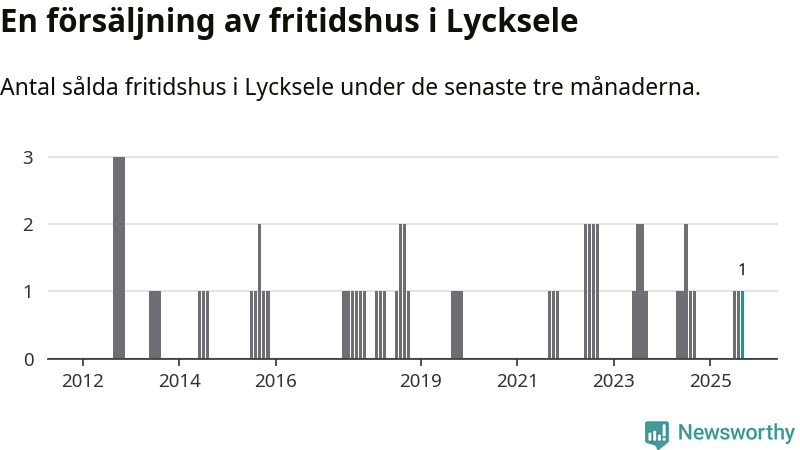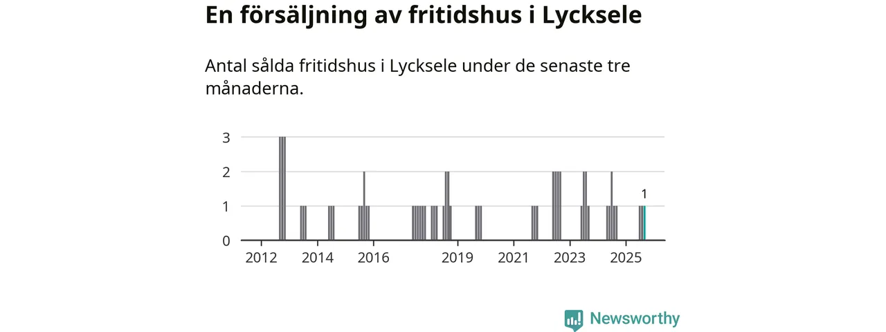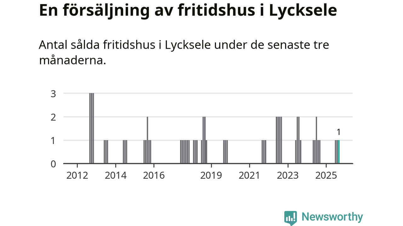 Mellan juli och september gjordes sammanlagt en affär med fritidshus i Lycksele kommun. Det är lika många affärer som vid motsvarande tid i fjol.