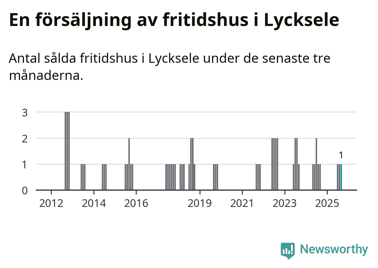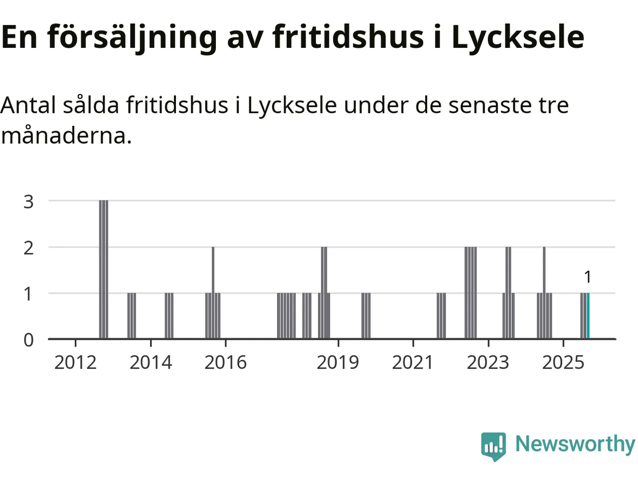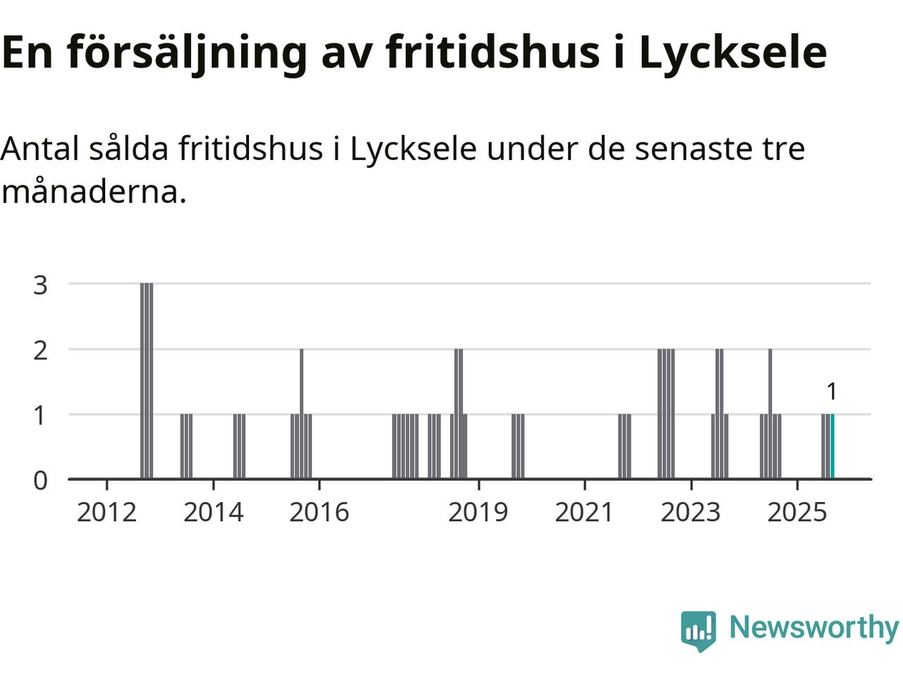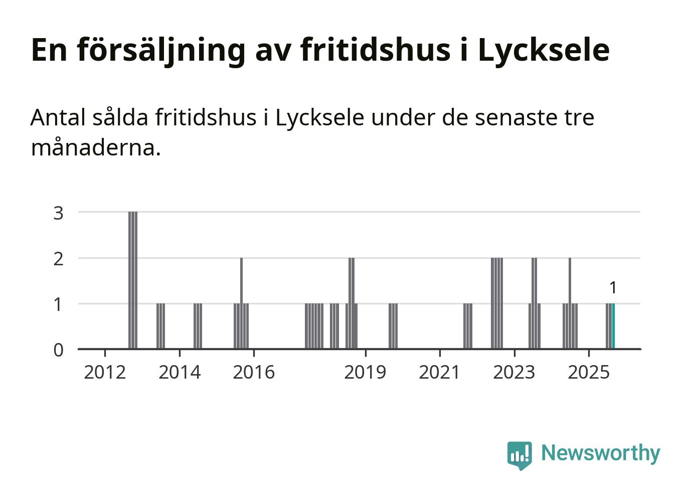 Mellan juli och september gjordes sammanlagt en affär med fritidshus i Lycksele kommun. Det är lika många affärer som vid motsvarande tid i fjol.