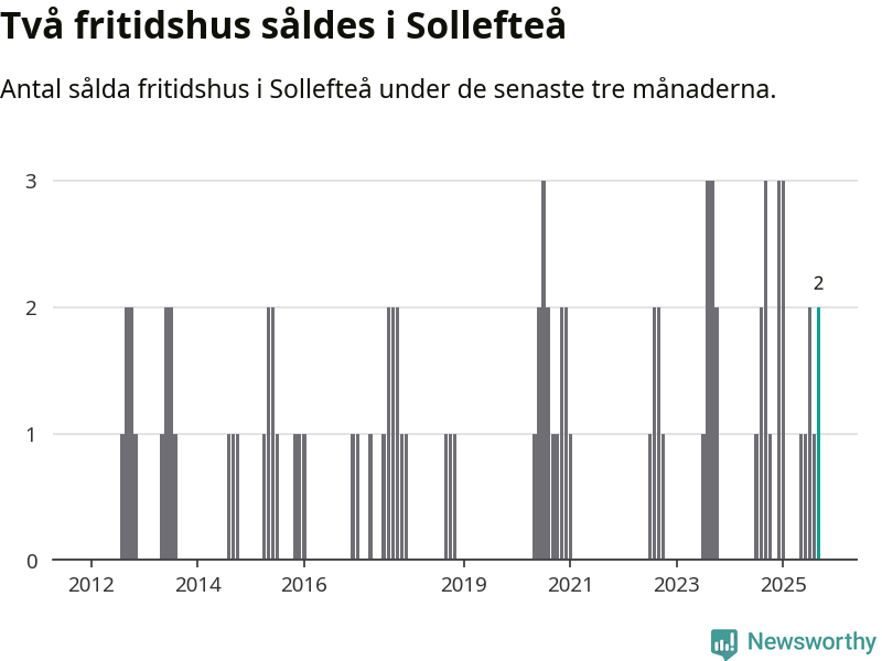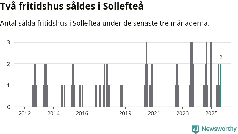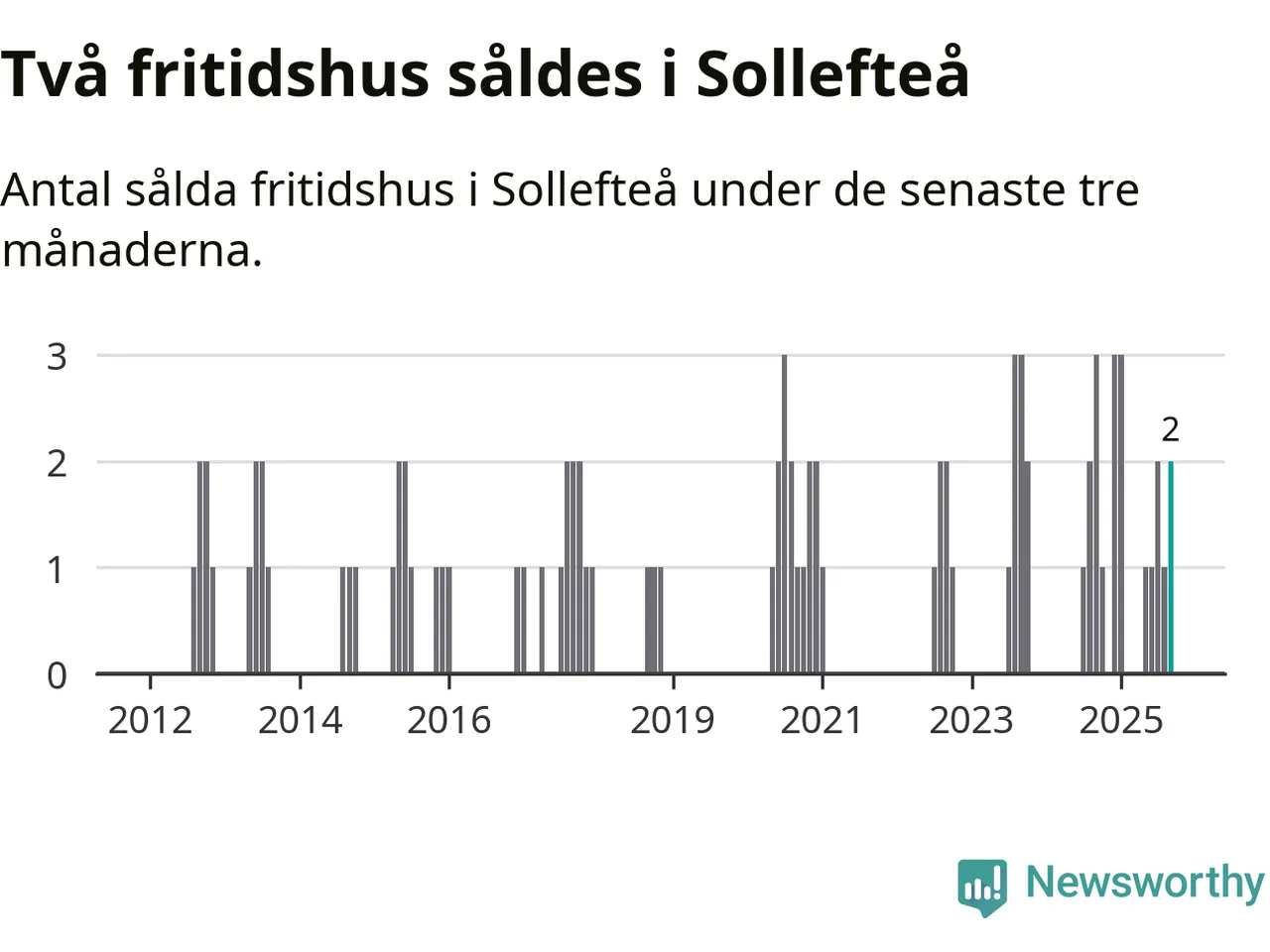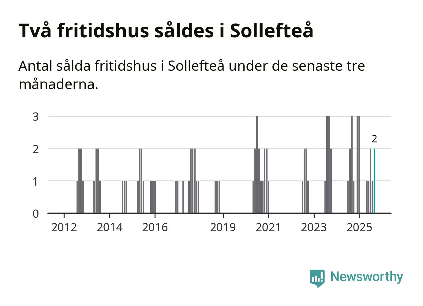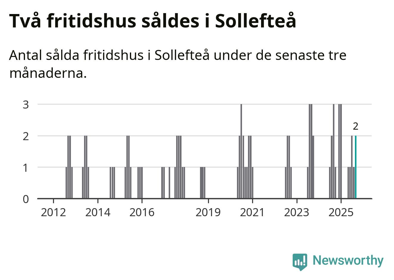 Mellan juli och september gjordes sammanlagt två affärer med fritidshus i Sollefteå kommun. Det kan jämföras med tre vid motsvarande tid i fjol.