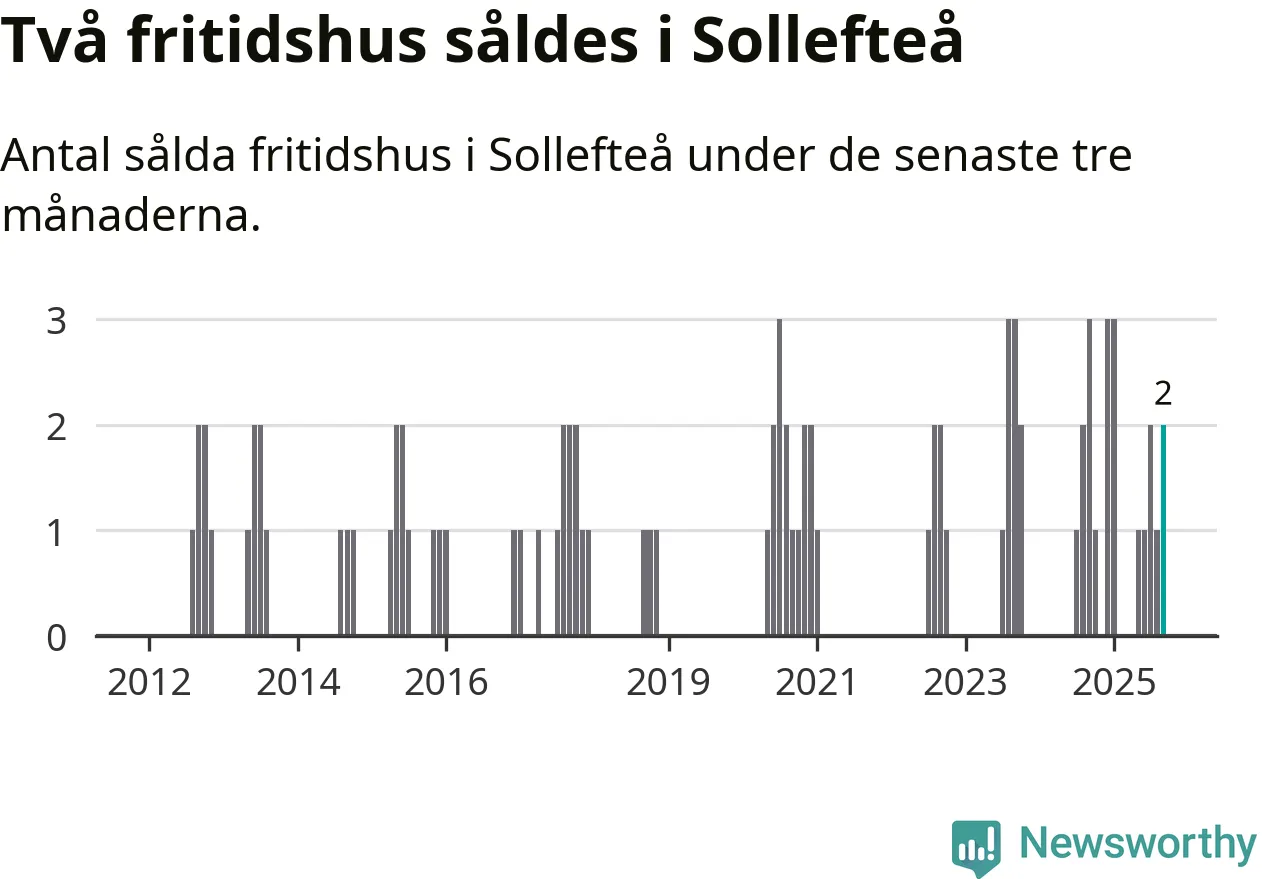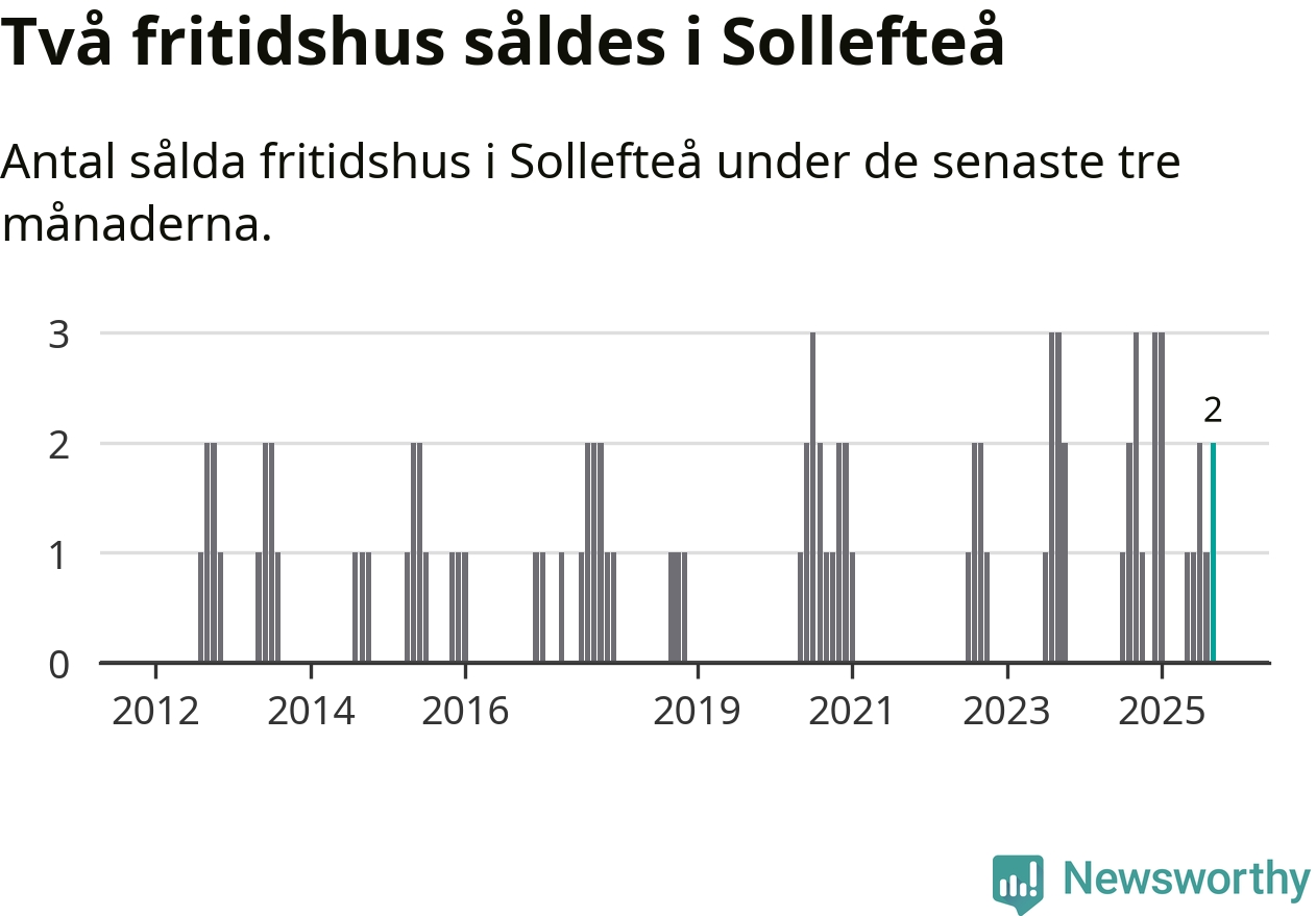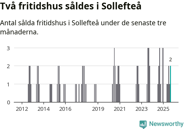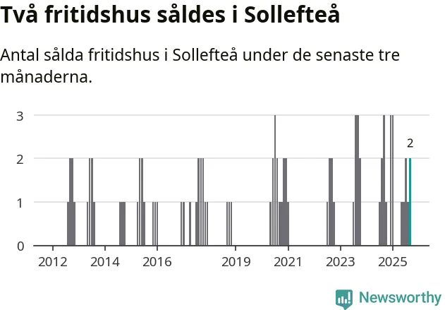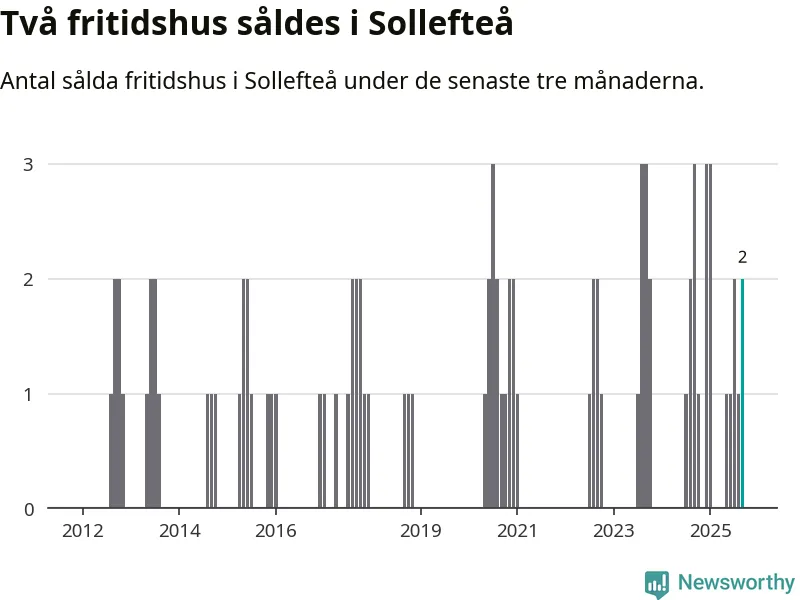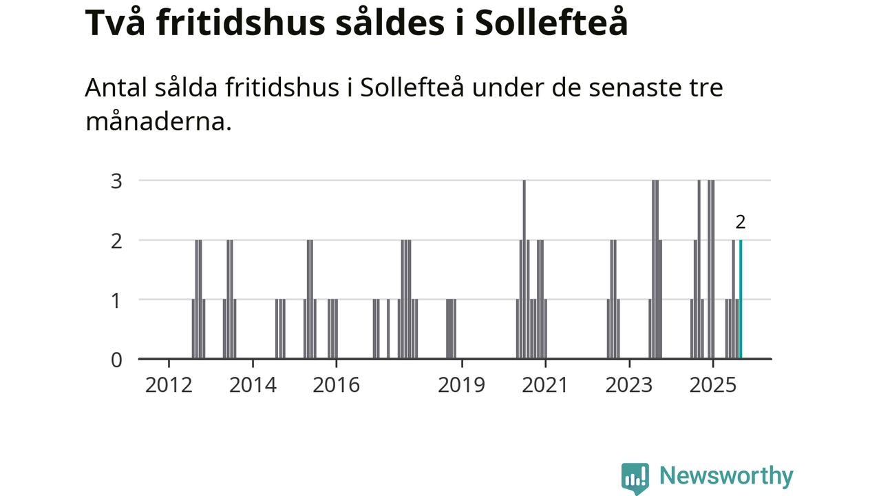 Mellan juli och september gjordes sammanlagt två affärer med fritidshus i Sollefteå kommun. Det kan jämföras med tre vid motsvarande tid i fjol.