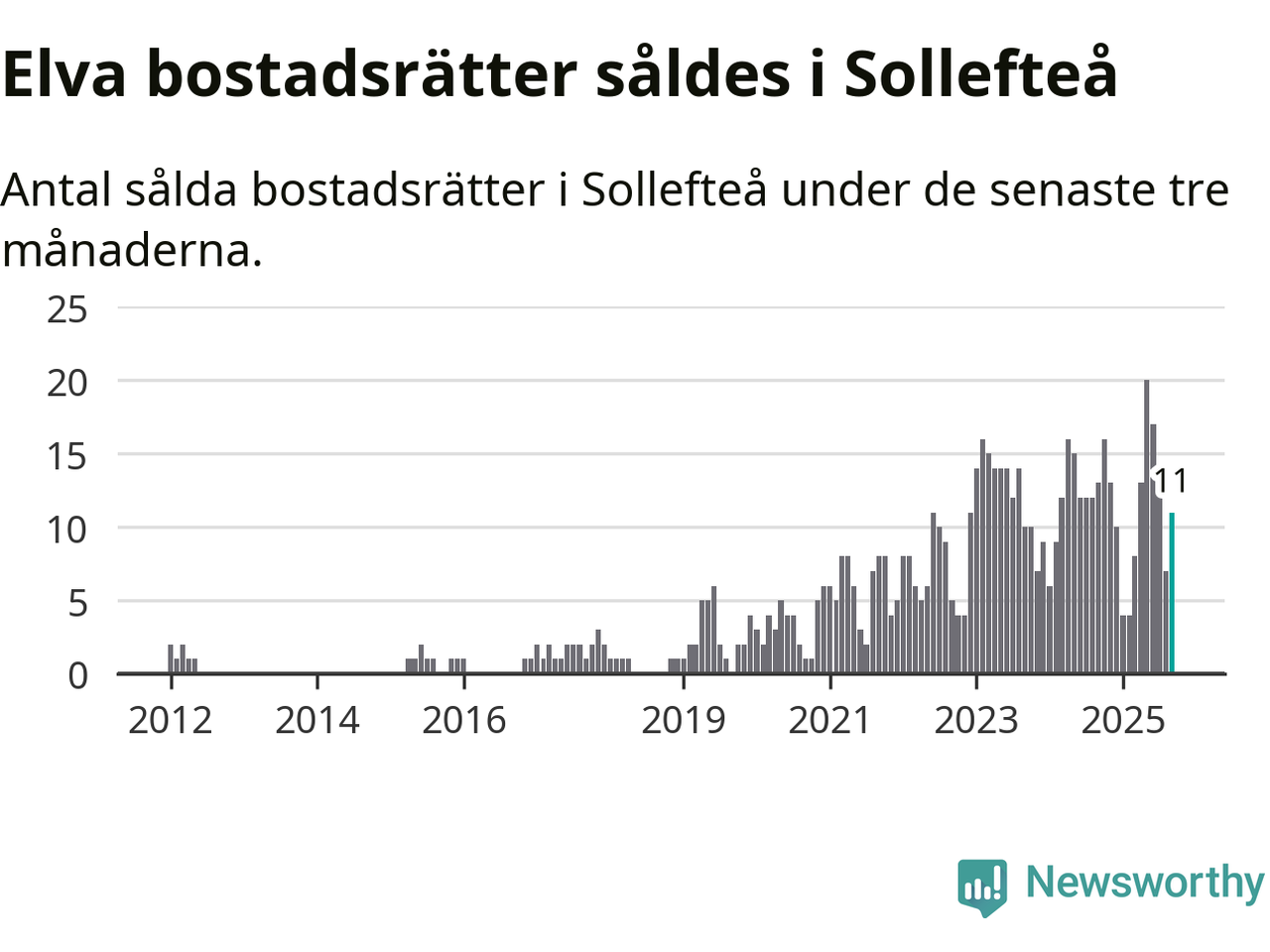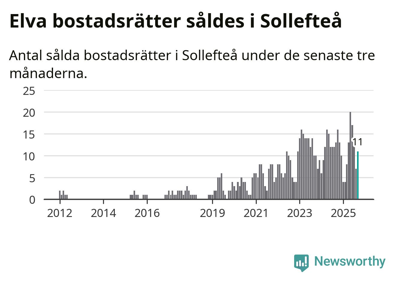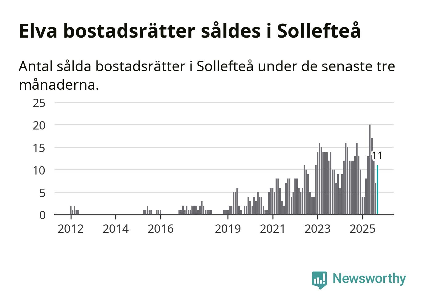 Mellan juli och september gjordes sammanlagt elva affärer med bostadsrätter i Sollefteå kommun. Det kan jämföras med 13 vid motsvarande tid i fjol.