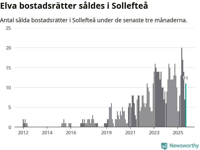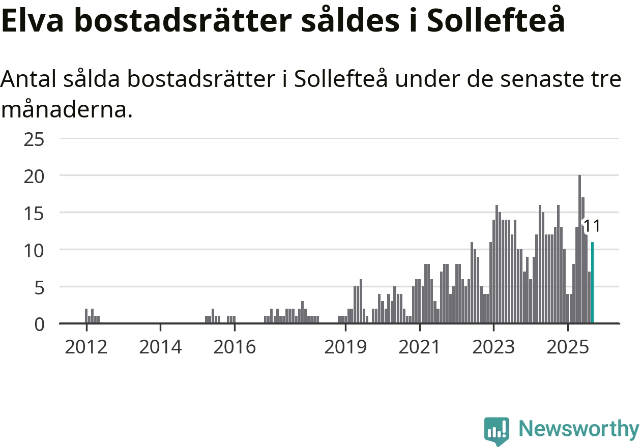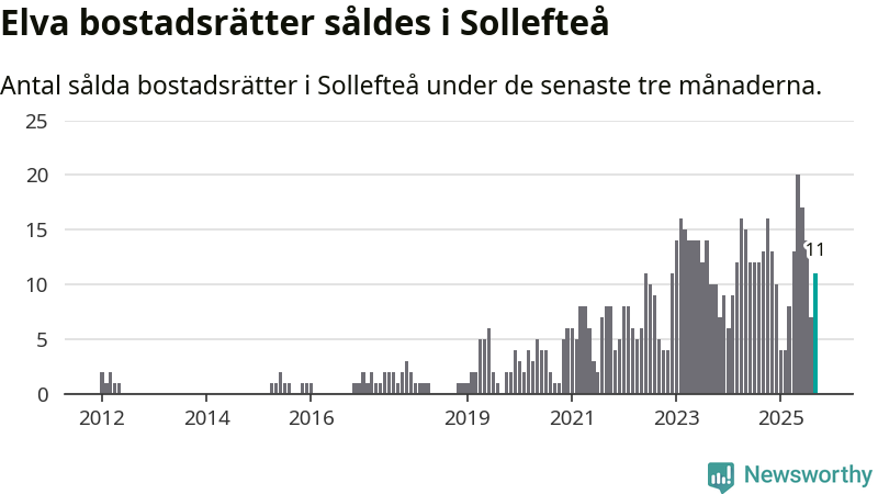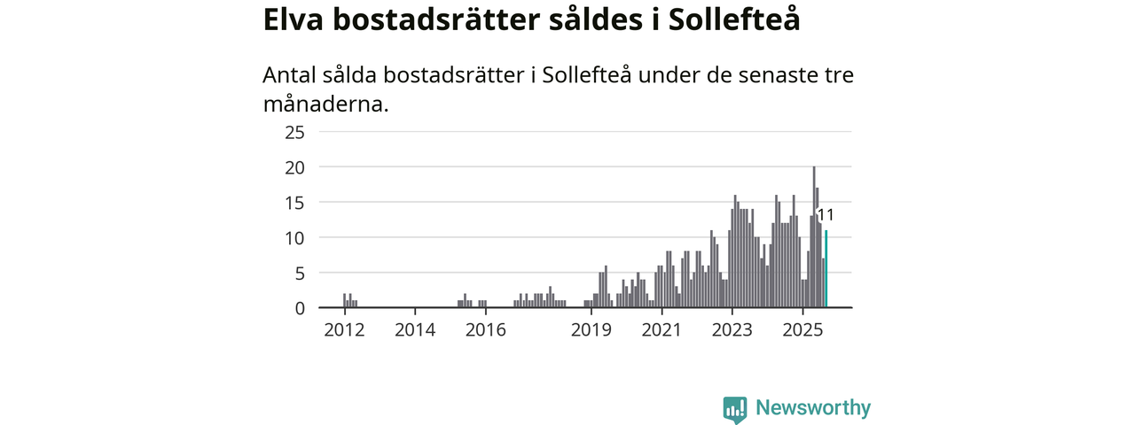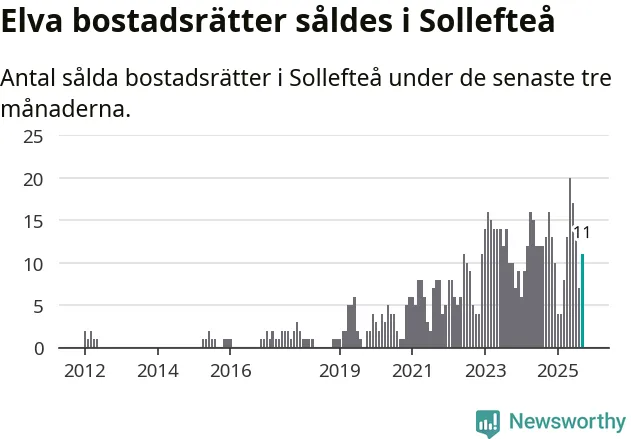 Mellan juli och september gjordes sammanlagt elva affärer med bostadsrätter i Sollefteå kommun. Det kan jämföras med 13 vid motsvarande tid i fjol.