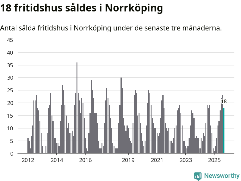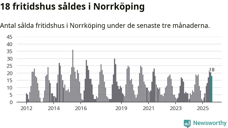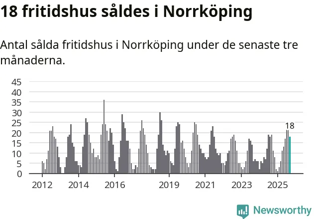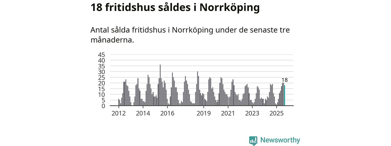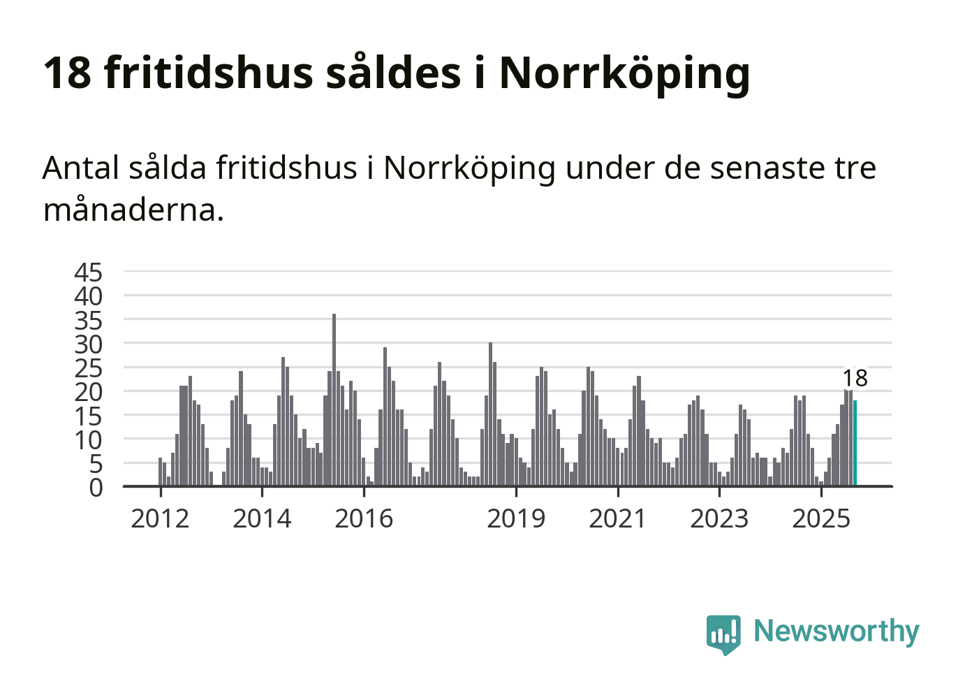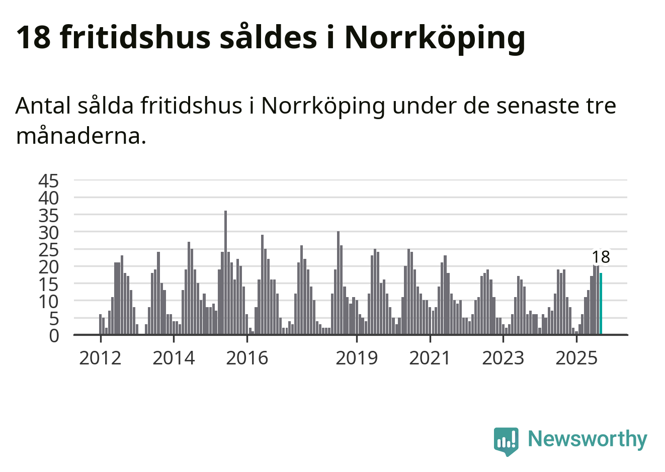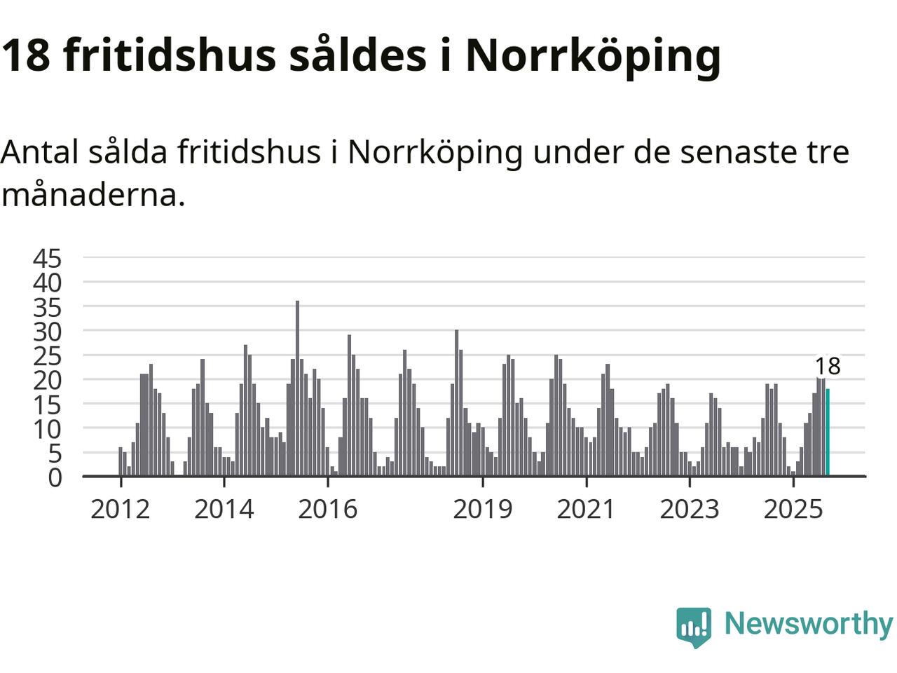 Sammanlagt såldes 18 fritidshus i Norrköpings kommun mellan juli och september till ett genomsnittligt pris på 2,7 miljoner kronor. I fjol gjordes 19 affärer vid den här tiden på året.