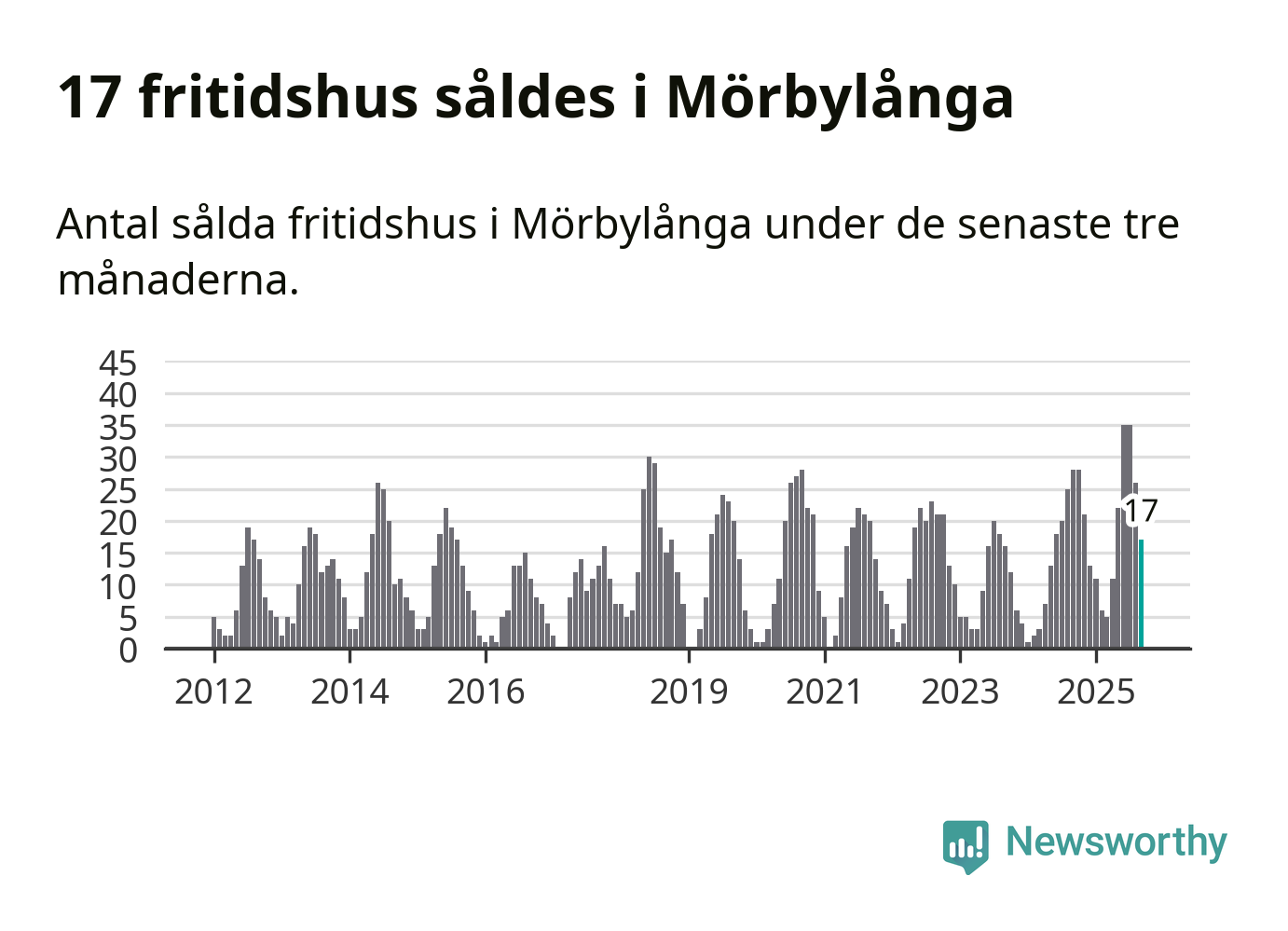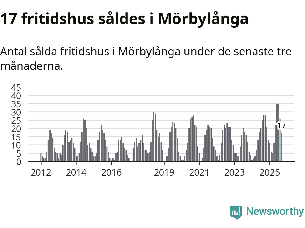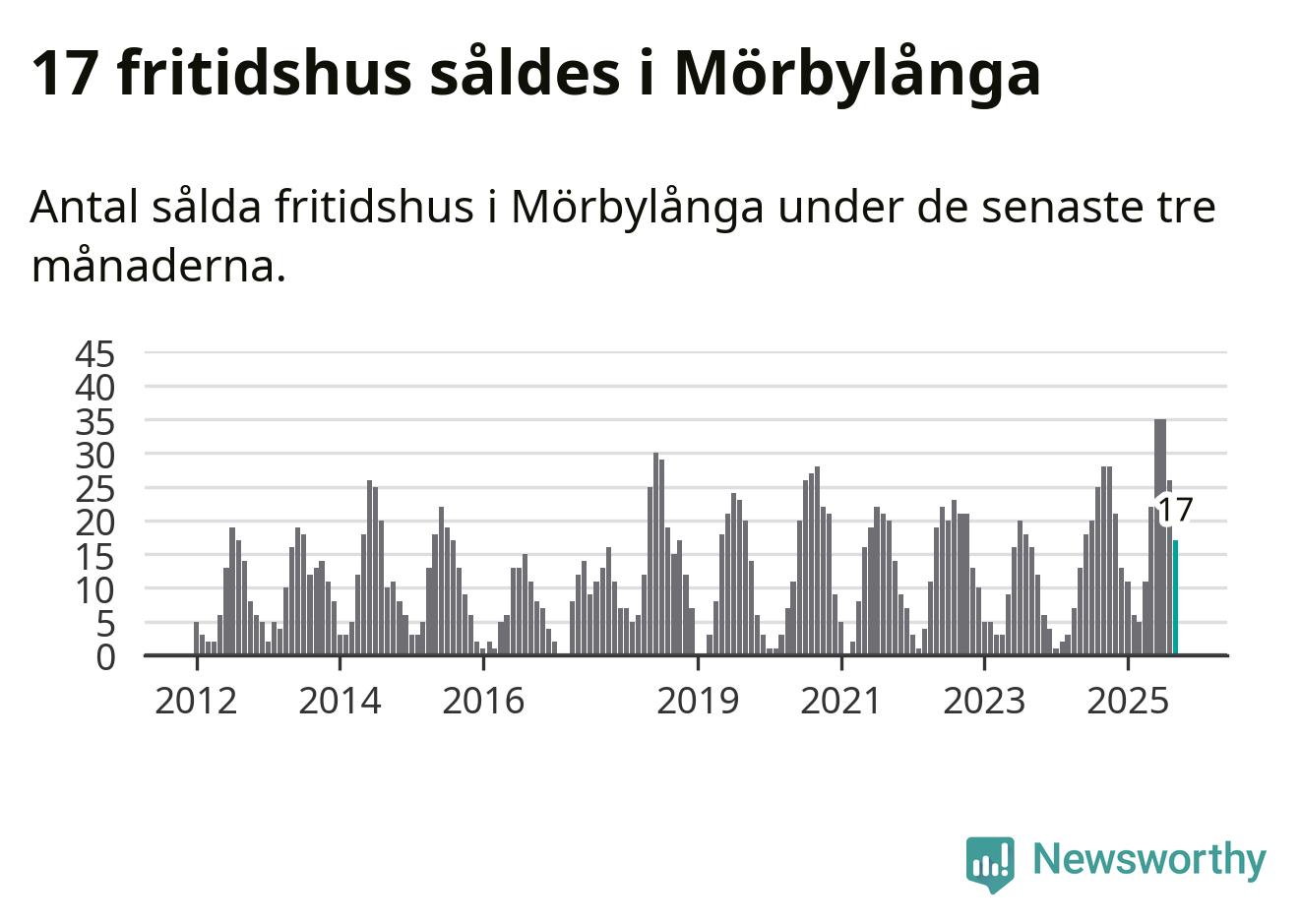 Sammanlagt såldes 17 fritidshus i Mörbylånga kommun mellan juli och september till ett genomsnittligt pris på 2,0 miljoner kronor. I fjol gjordes 28 affärer vid den här tiden på året.