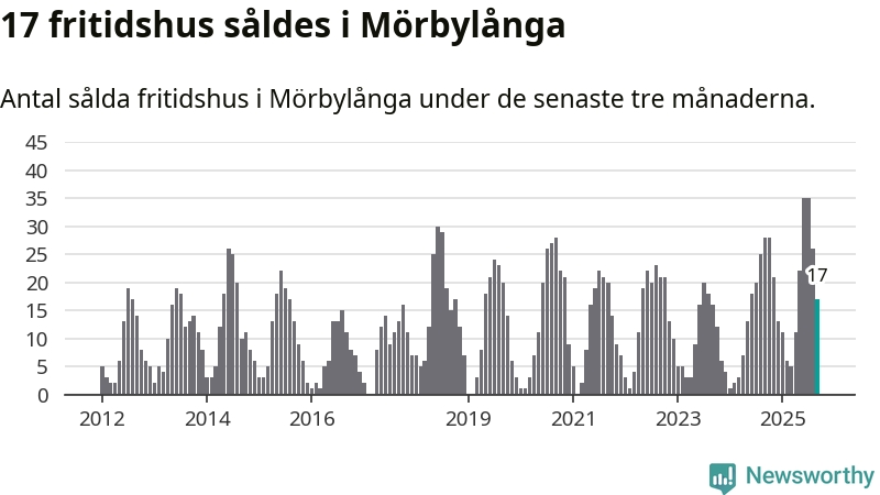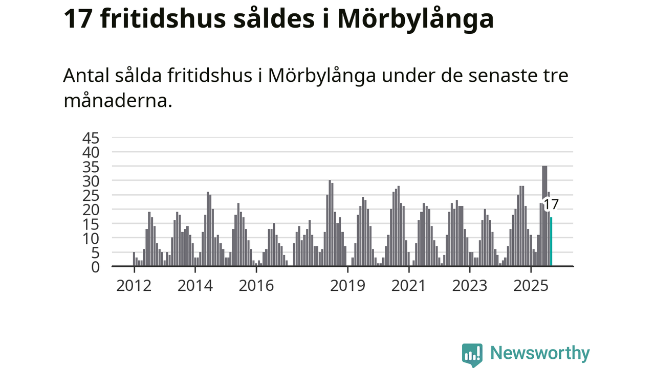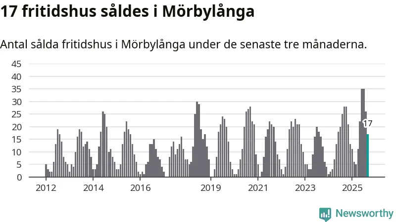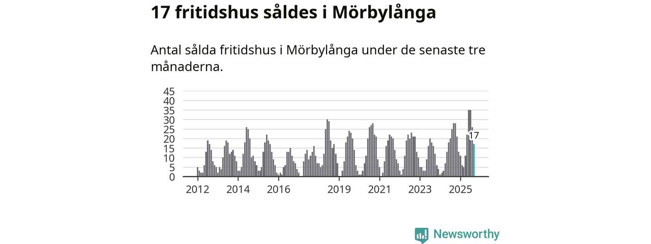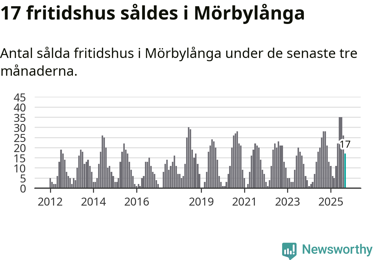 Sammanlagt såldes 17 fritidshus i Mörbylånga kommun mellan juli och september till ett genomsnittligt pris på 2,0 miljoner kronor. I fjol gjordes 28 affärer vid den här tiden på året.