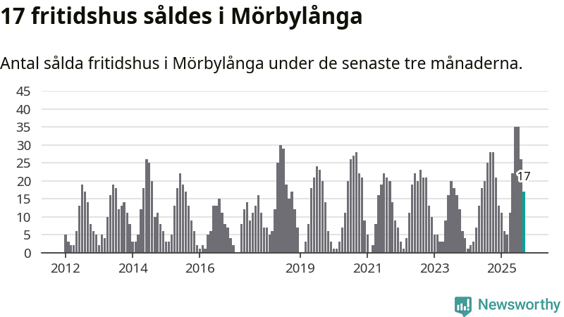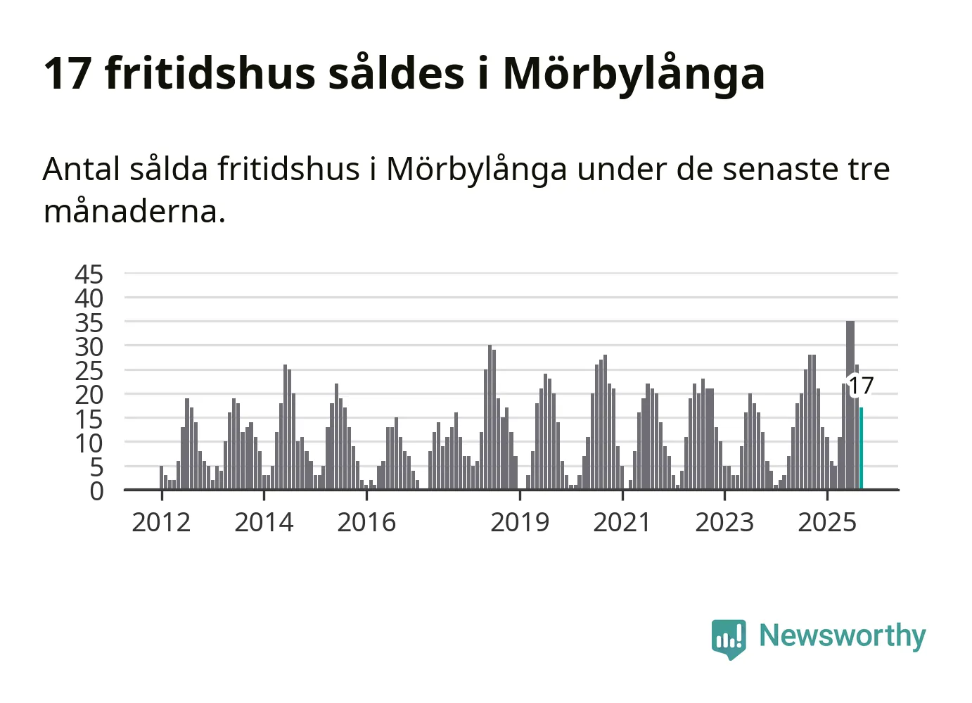 Graf: Antal sålda fritidshus i Mörbylånga kommun