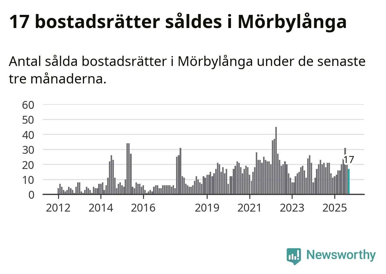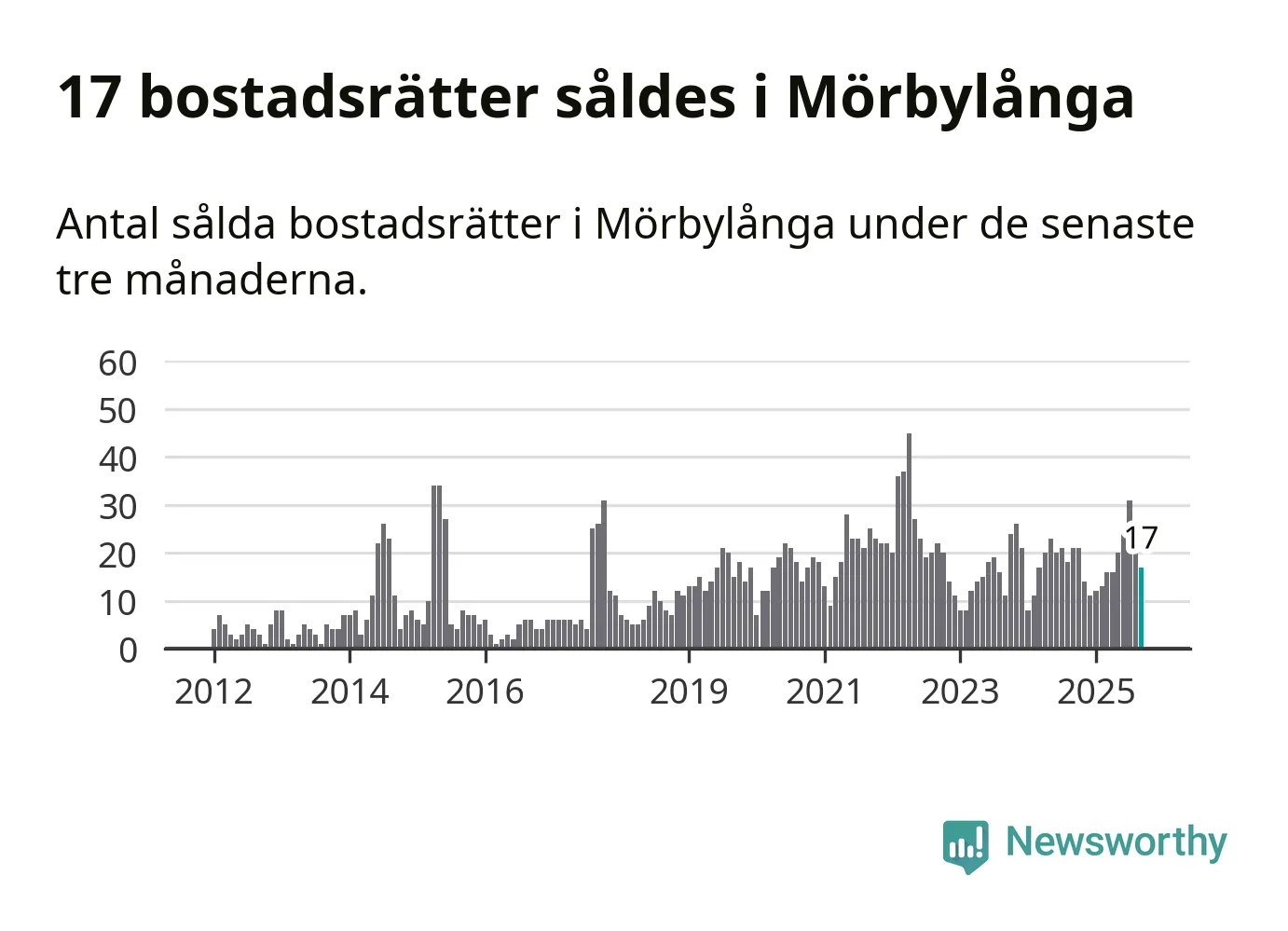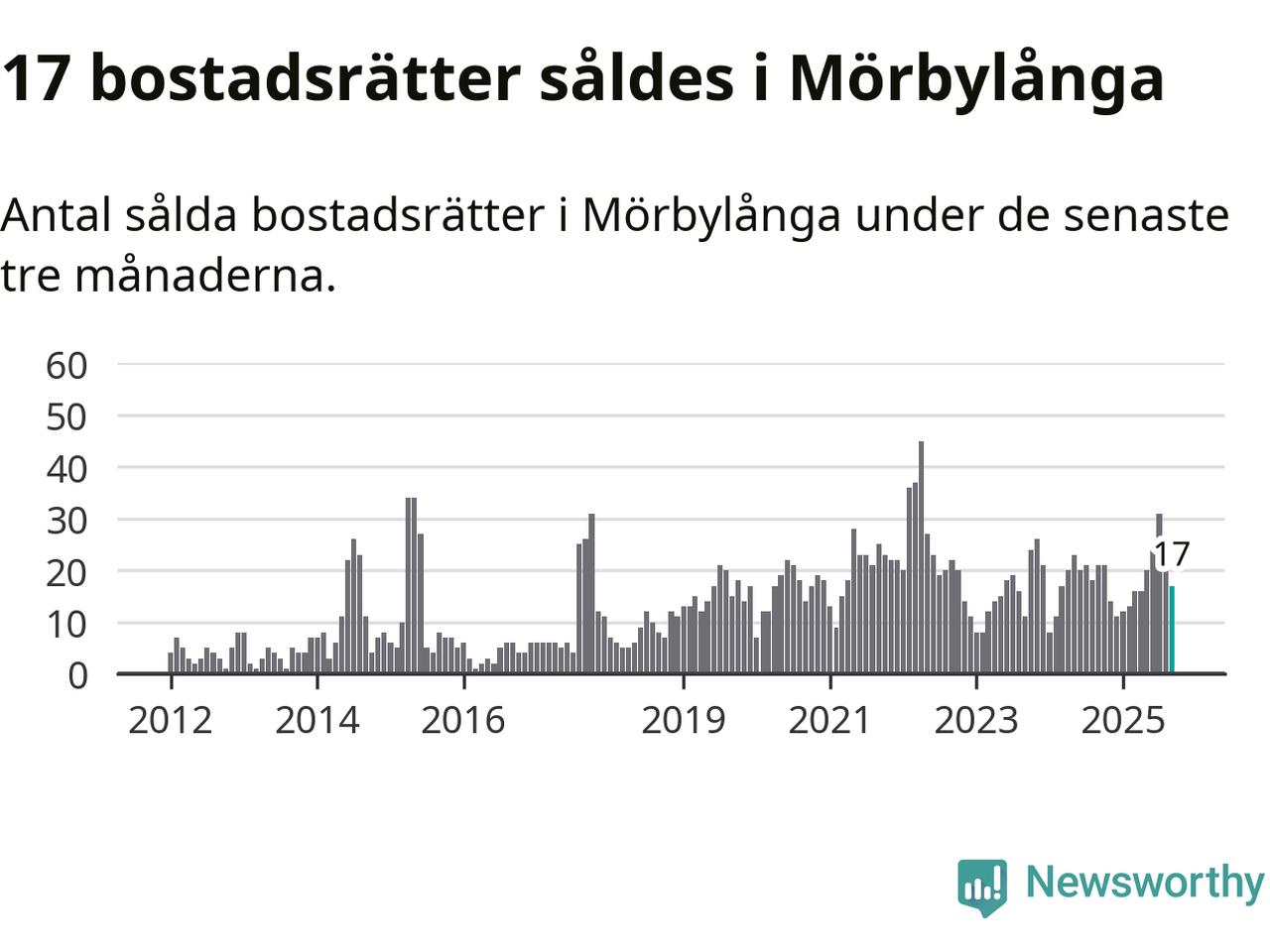 Mellan juli och september gjordes sammanlagt 17 affärer med bostadsrätter i Mörbylånga kommun. Det kan jämföras med 21 vid motsvarande tid i fjol.
