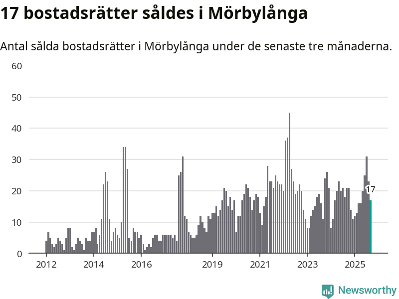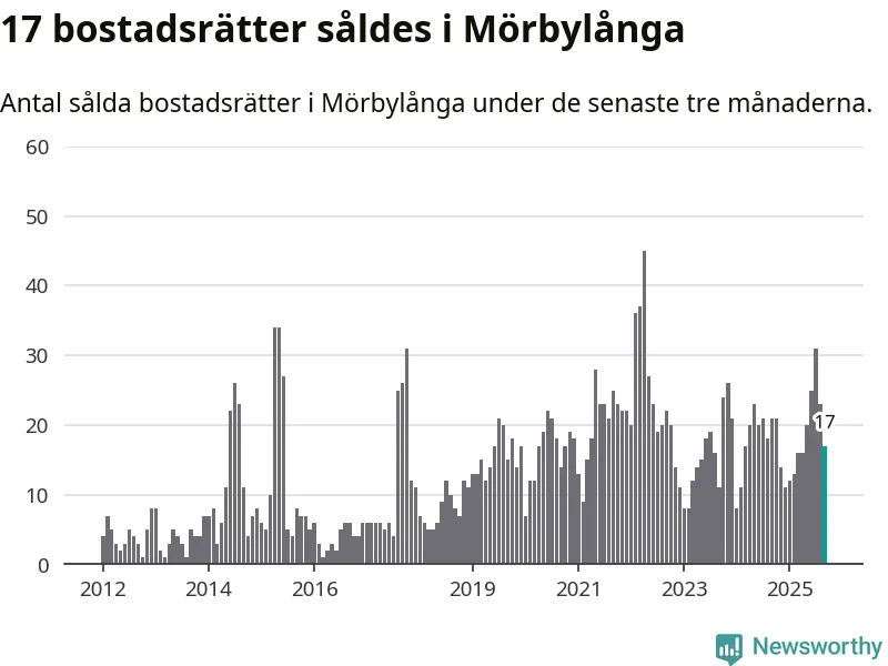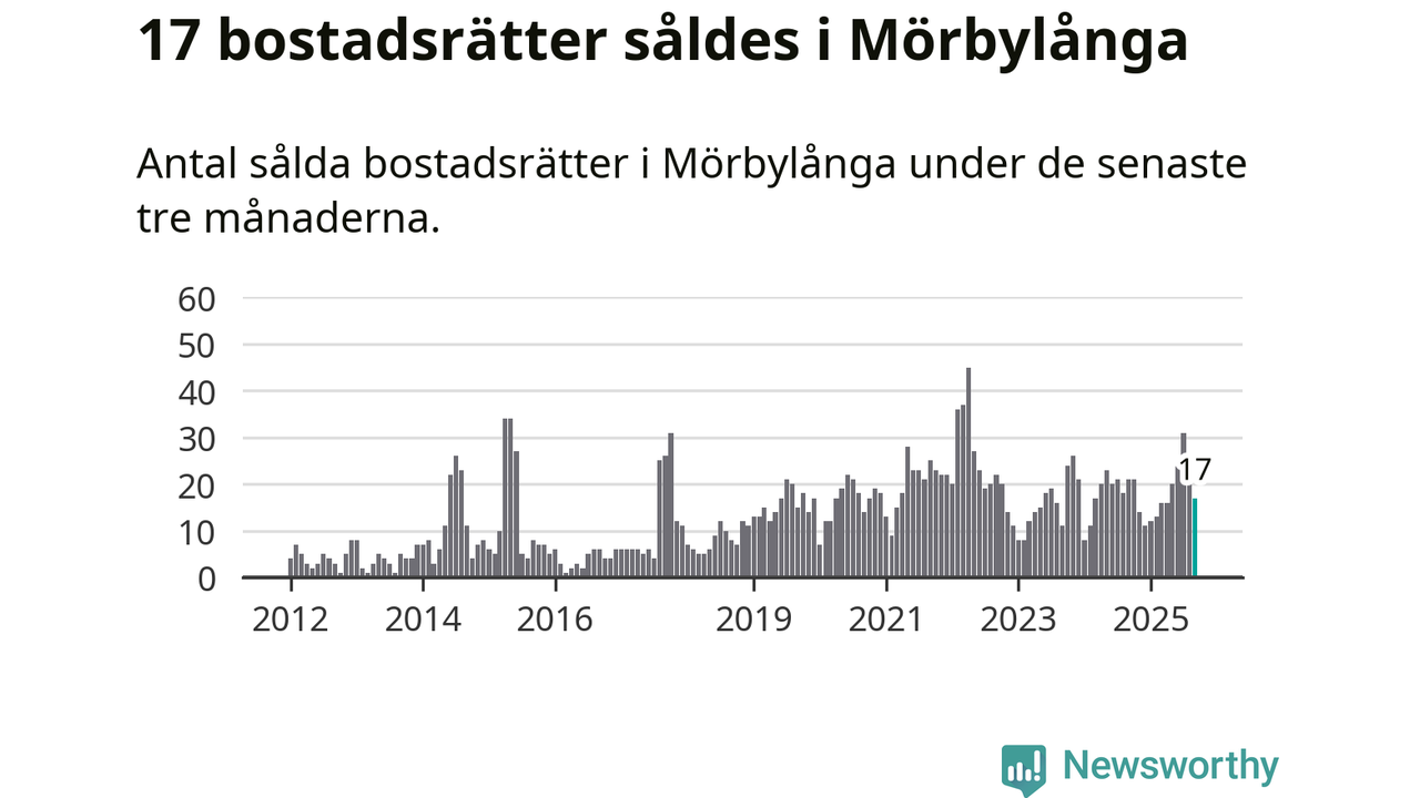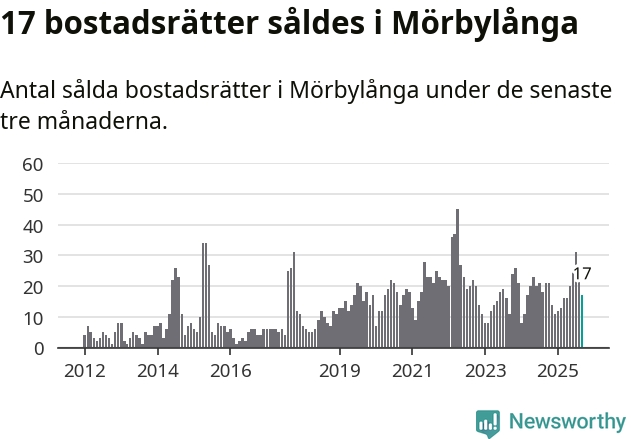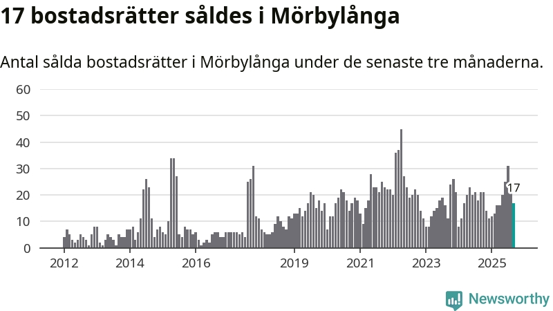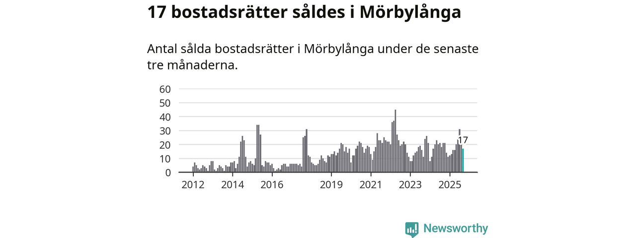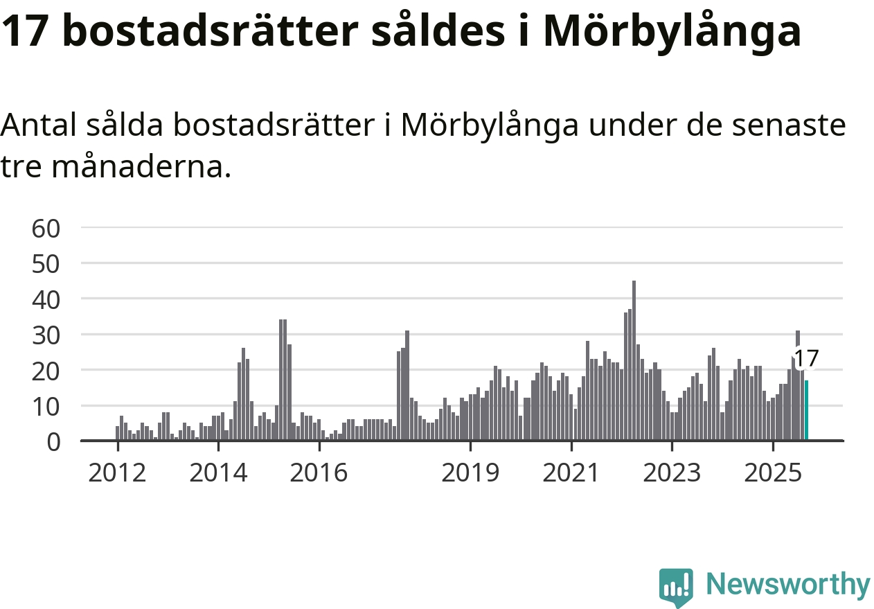 Mellan juli och september gjordes sammanlagt 17 affärer med bostadsrätter i Mörbylånga kommun. Det kan jämföras med 21 vid motsvarande tid i fjol.
