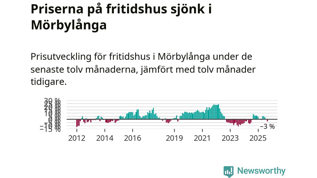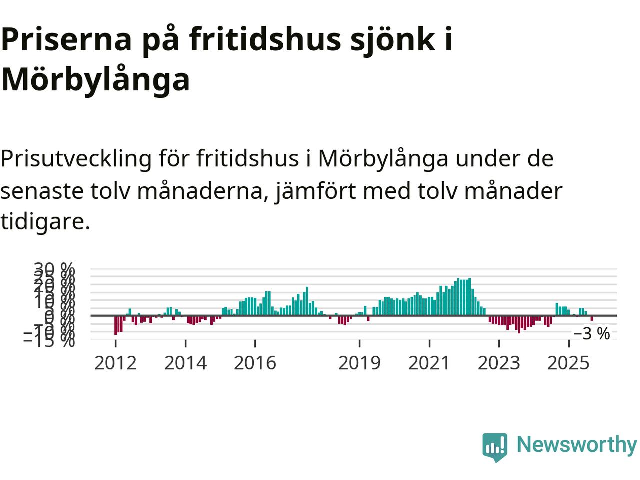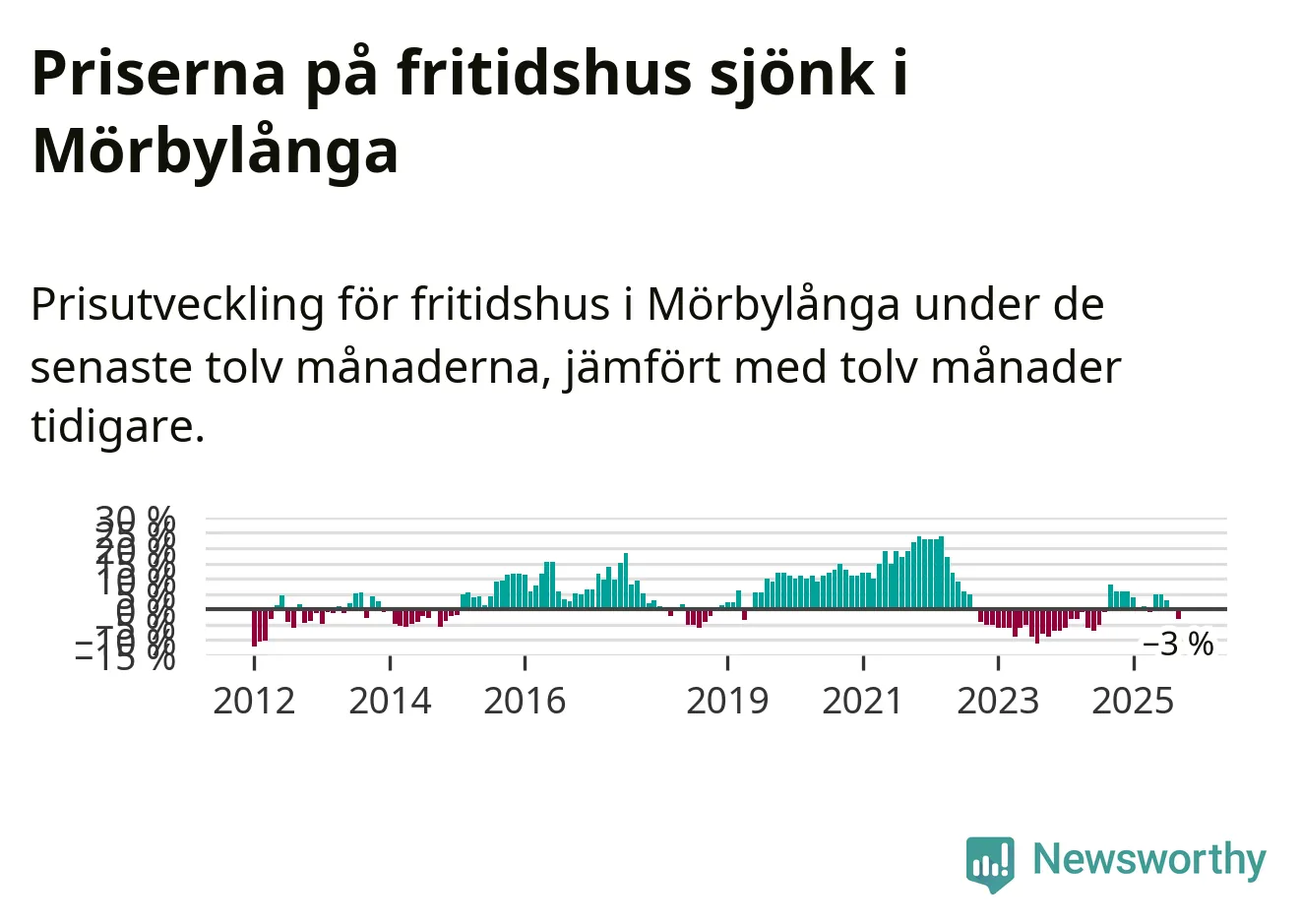 Priserna på fritidshus har gått ner i Mörbylånga kommun. Medelpriset på försäljningarna under de senaste tolv månaderna visar på en nedgång med 3 procent.