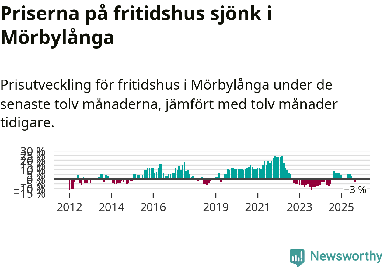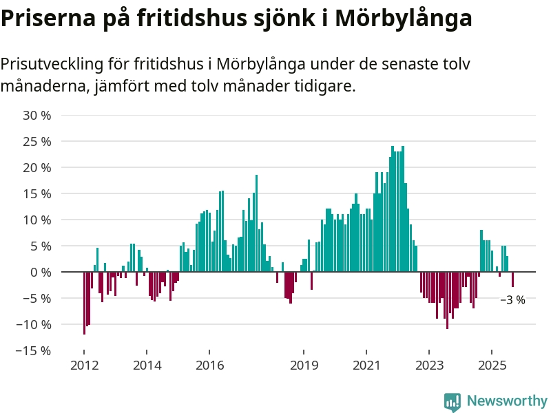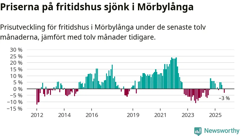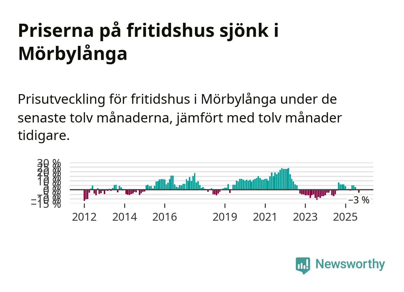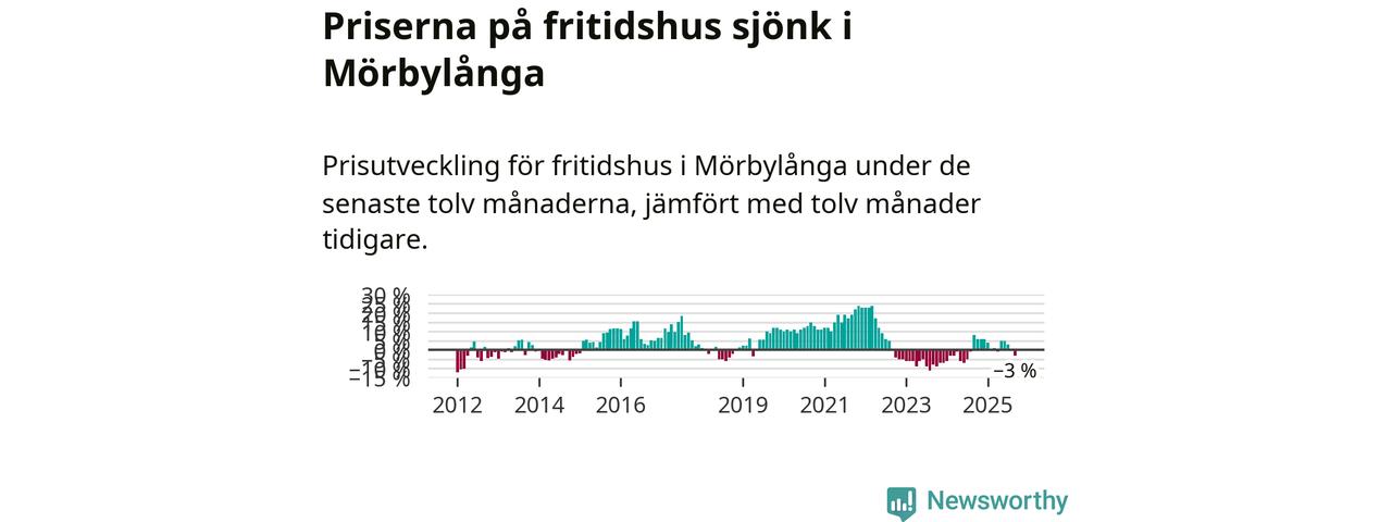 Priserna på fritidshus har gått ner i Mörbylånga kommun. Medelpriset på försäljningarna under de senaste tolv månaderna visar på en nedgång med 3 procent.