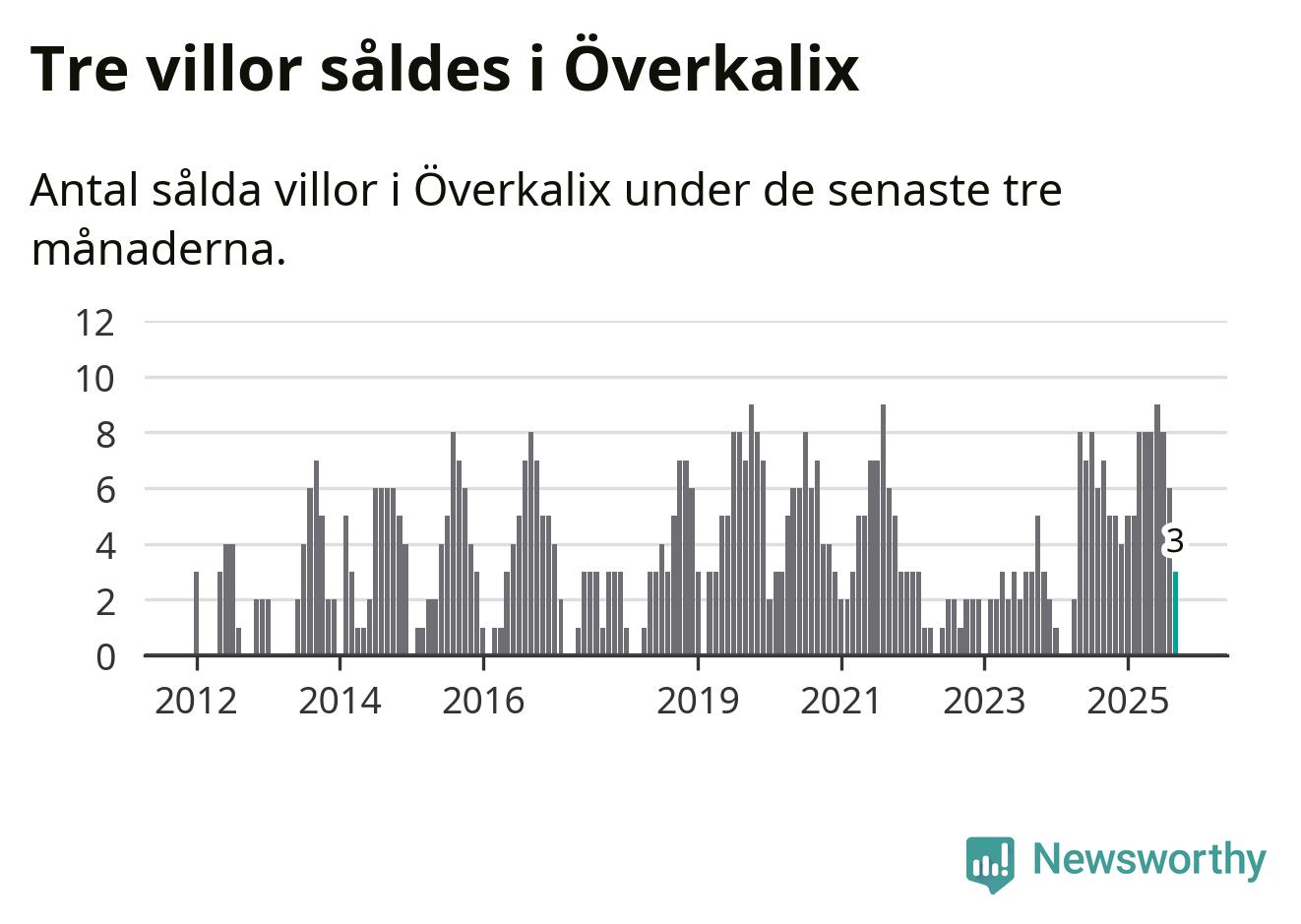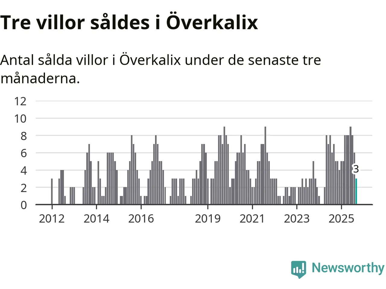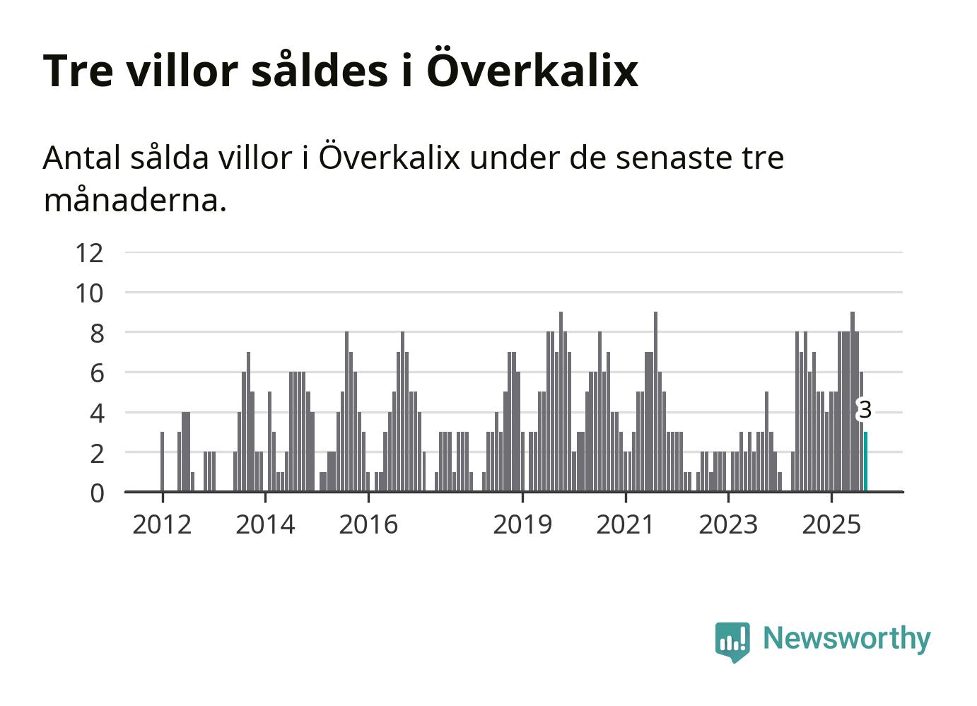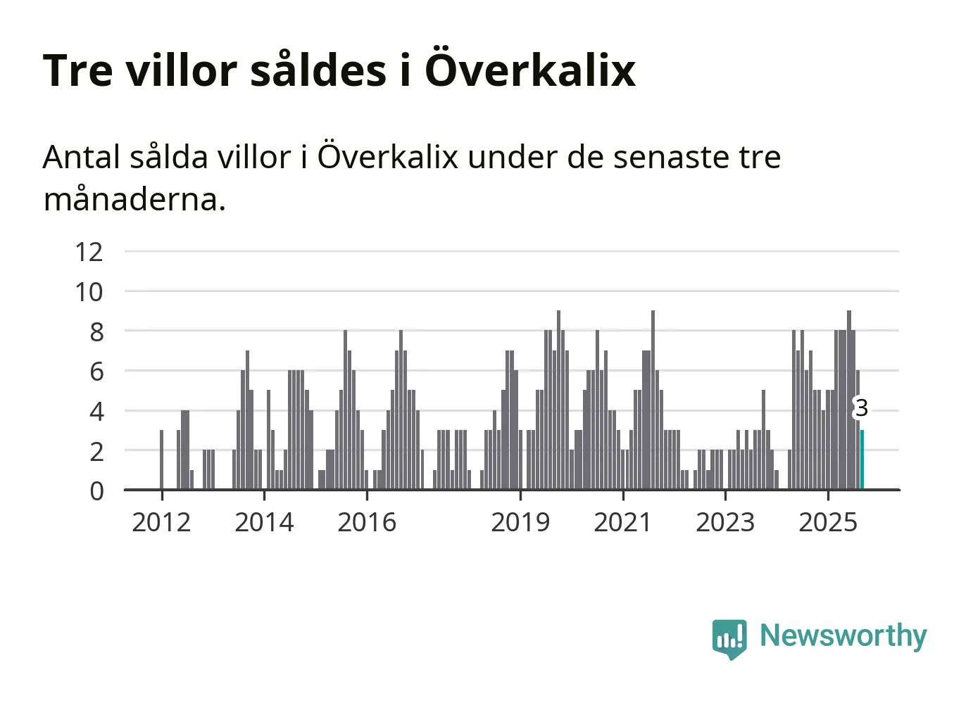 Mellan juli och september gjordes sammanlagt tre affärer med villor i Överkalix kommun. Det kan jämföras med sju vid motsvarande tid i fjol.