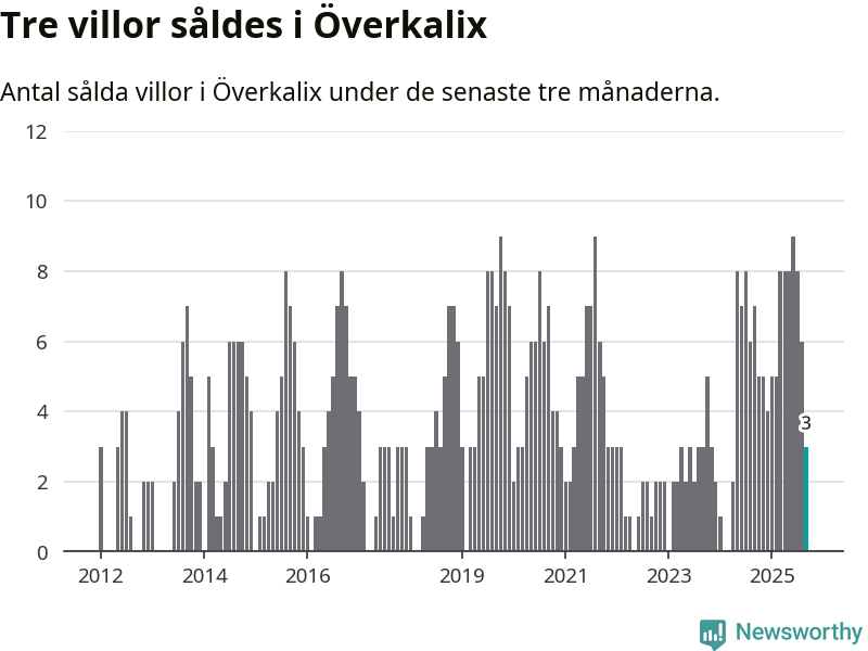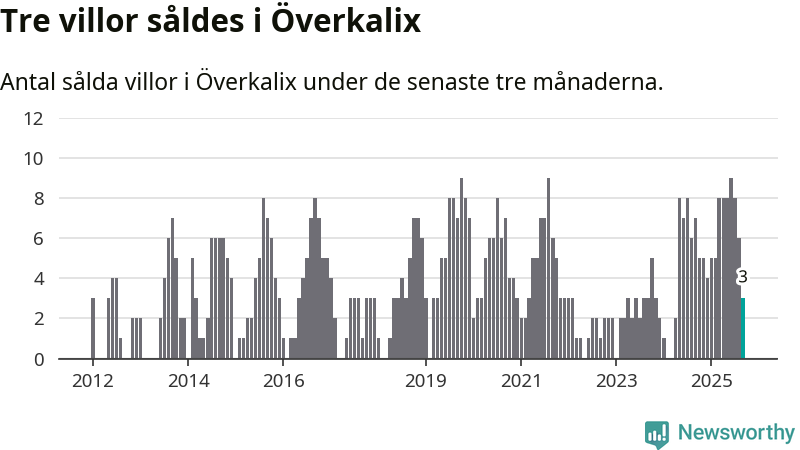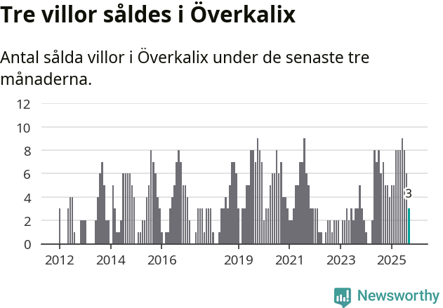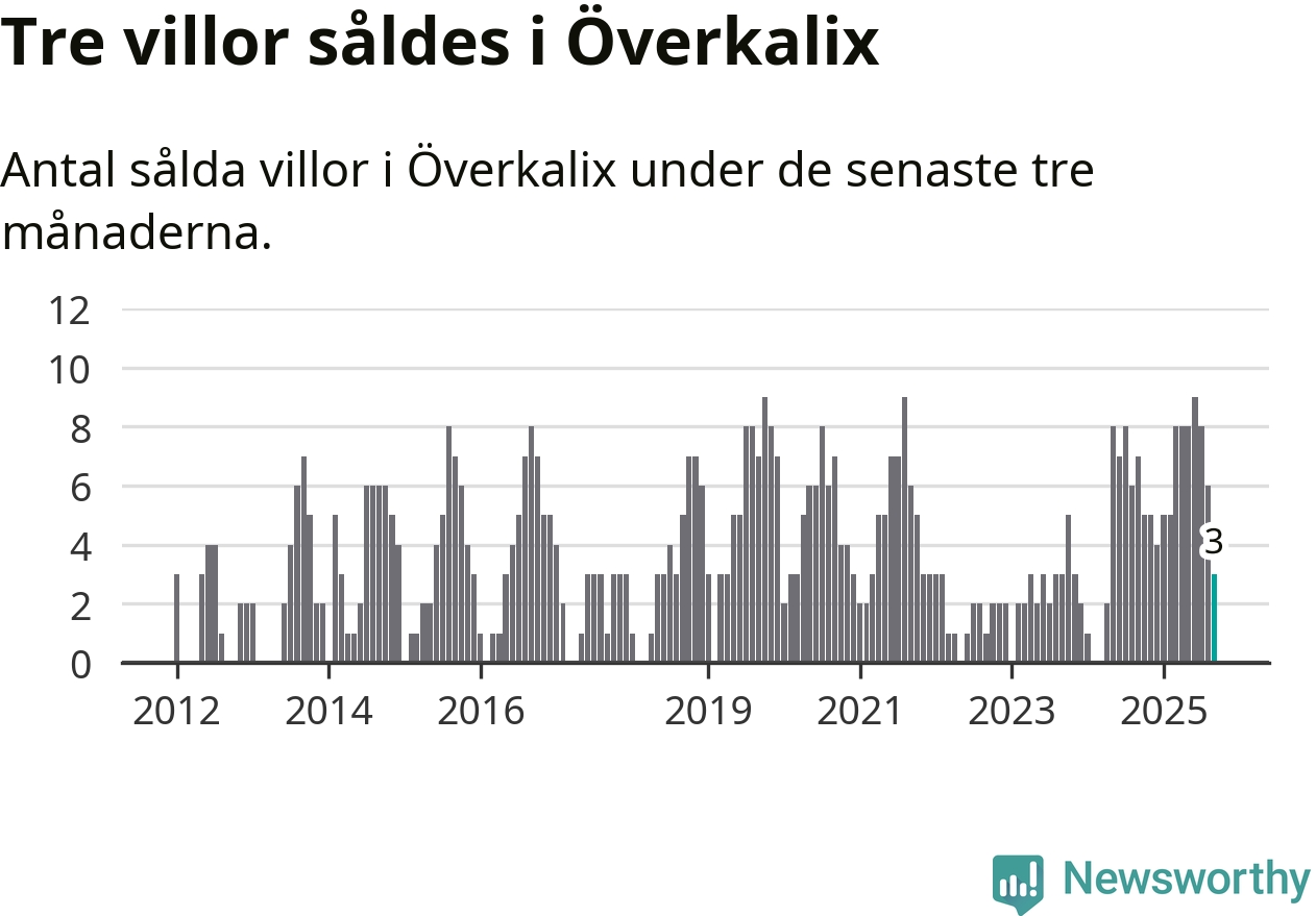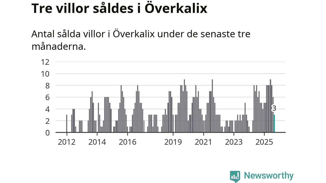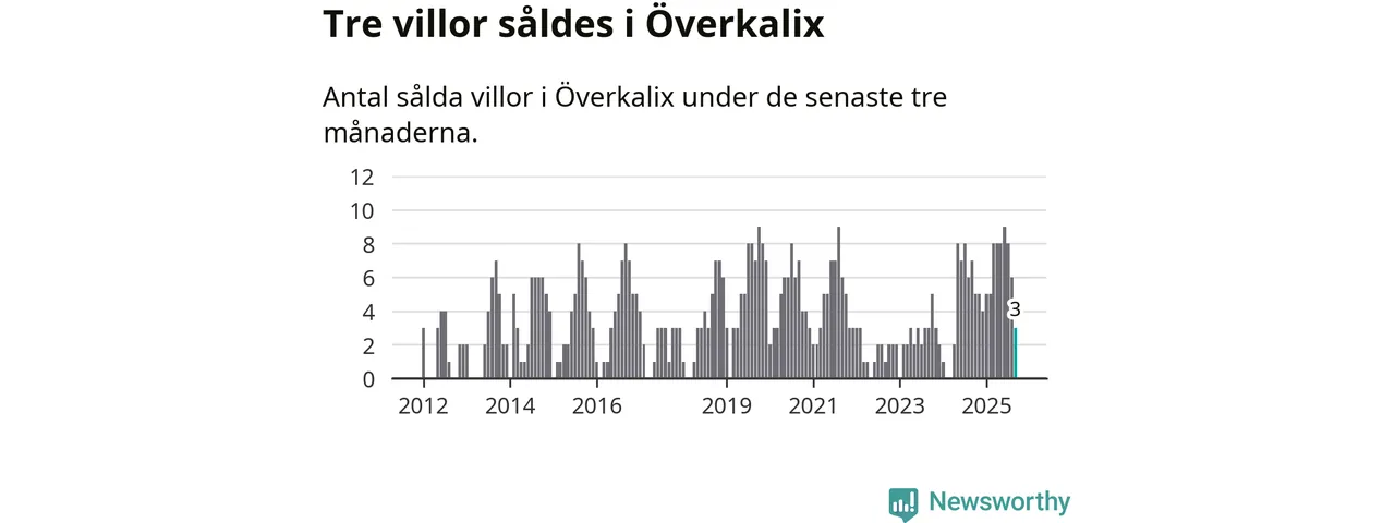 Mellan juli och september gjordes sammanlagt tre affärer med villor i Överkalix kommun. Det kan jämföras med sju vid motsvarande tid i fjol.