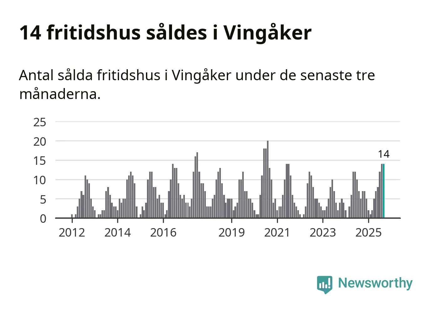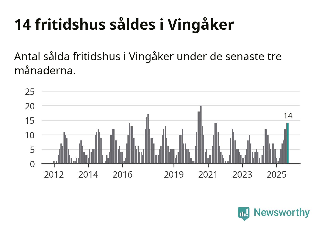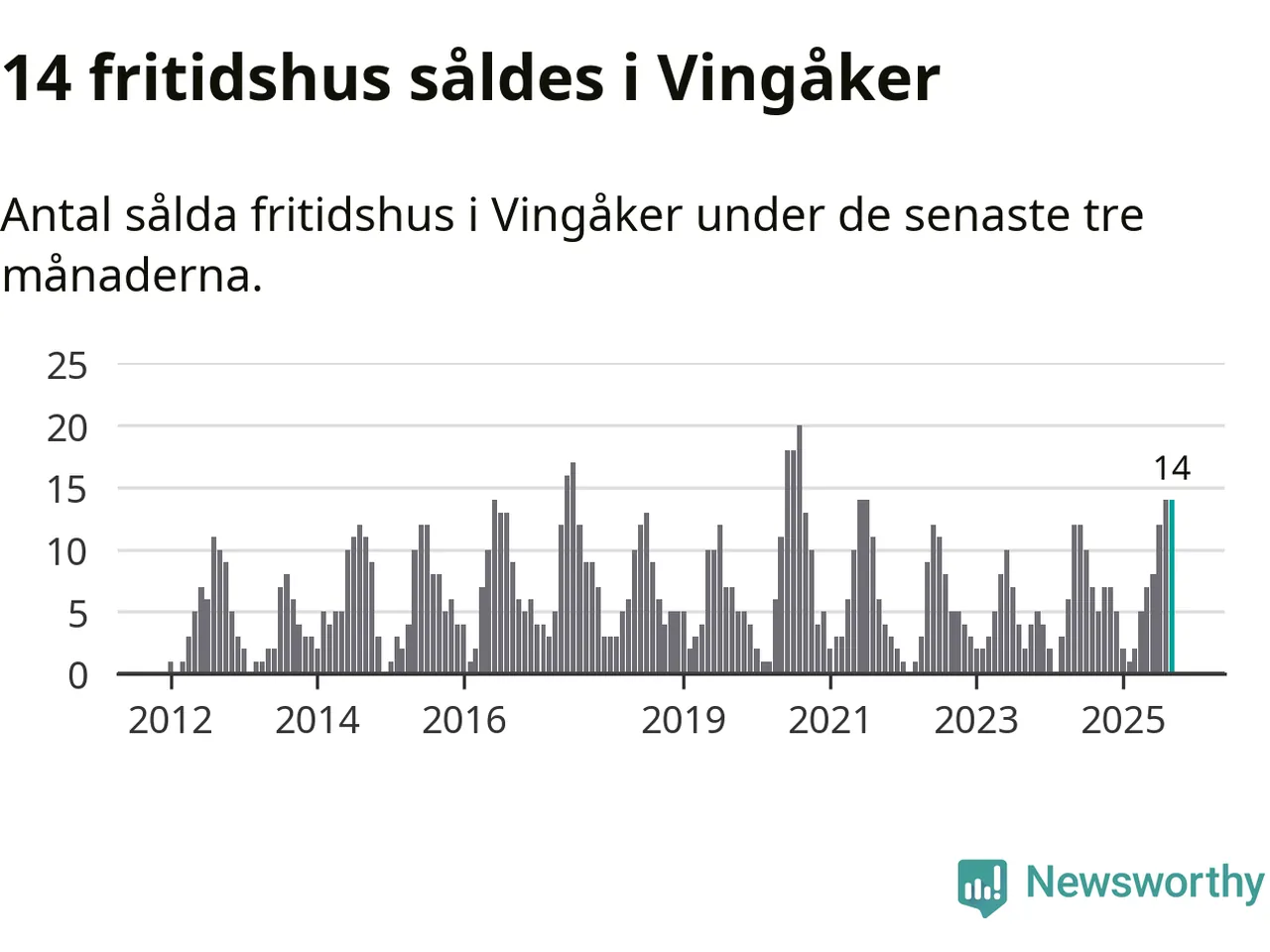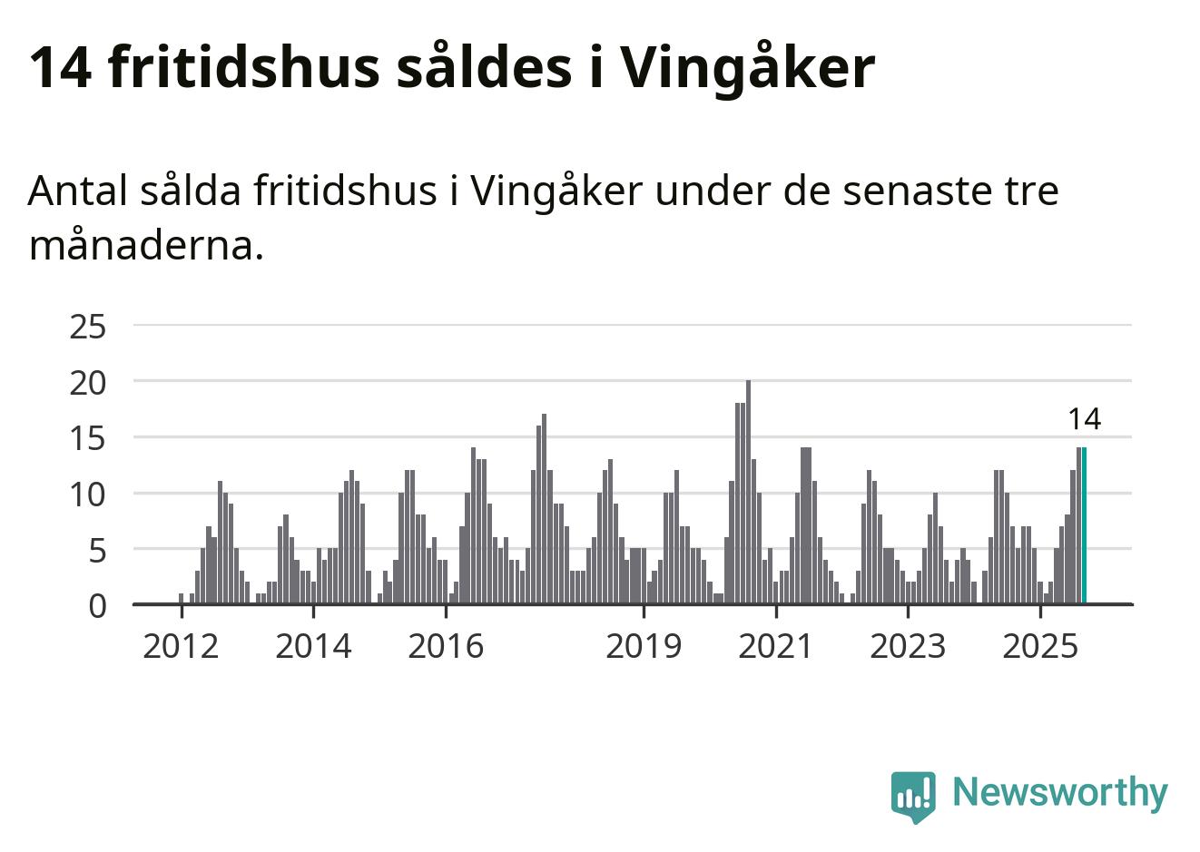 Mellan juli och september gjordes sammanlagt 14 affärer med fritidshus i Vingåkers kommun. Det kan jämföras med fem vid motsvarande tid i fjol.