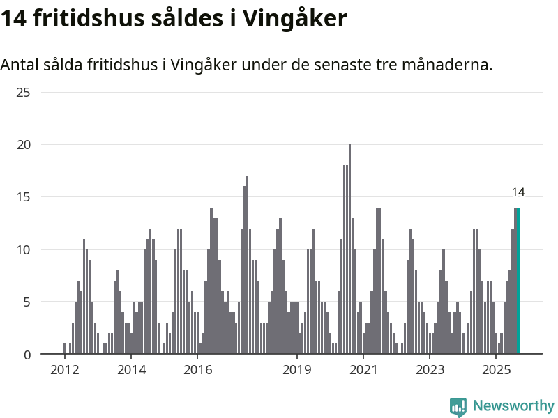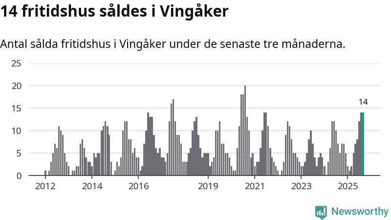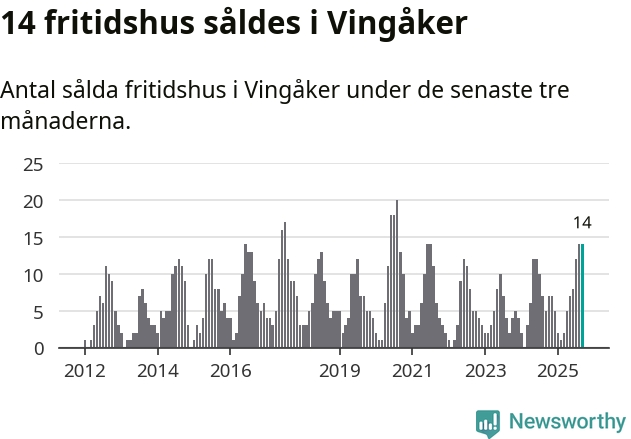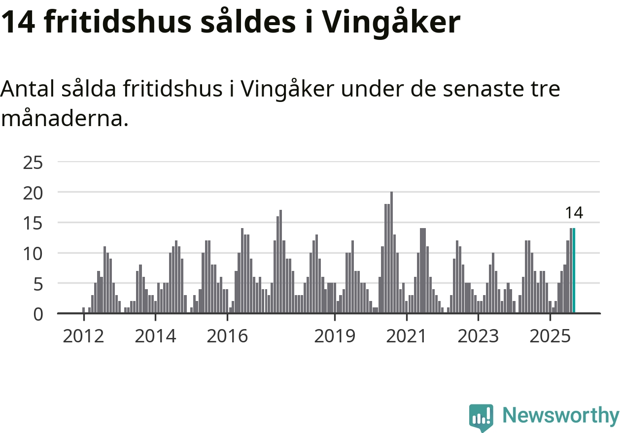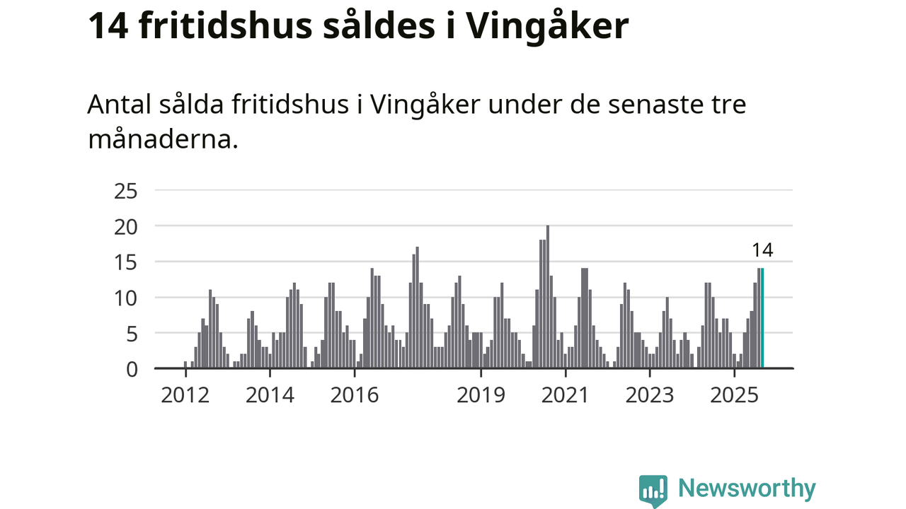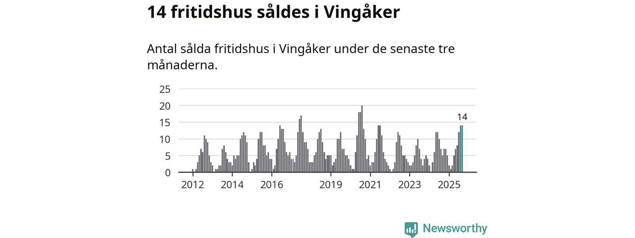 Mellan juli och september gjordes sammanlagt 14 affärer med fritidshus i Vingåkers kommun. Det kan jämföras med fem vid motsvarande tid i fjol.