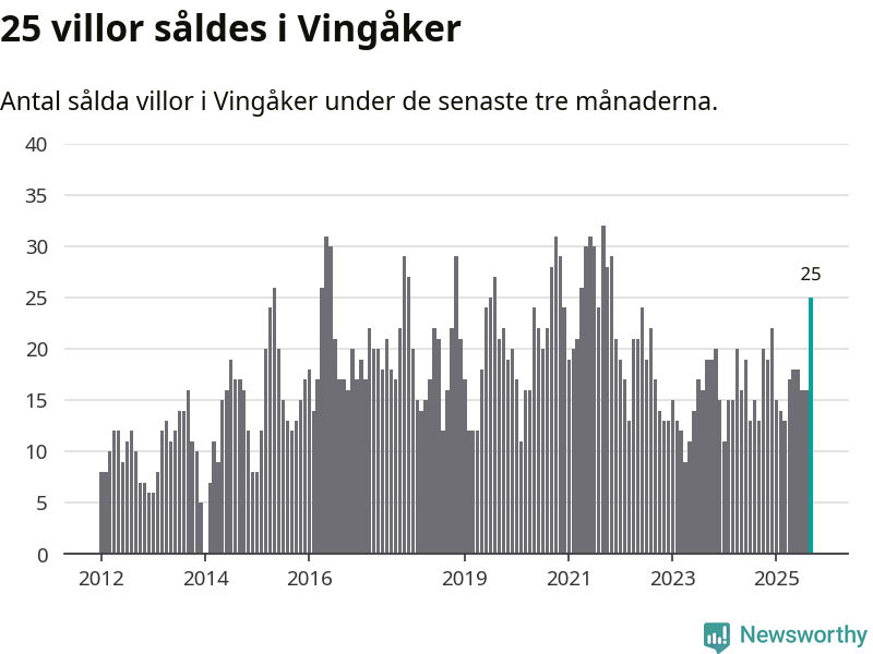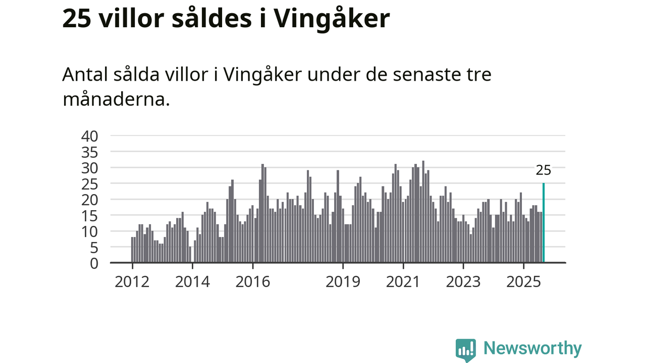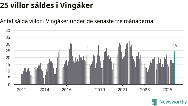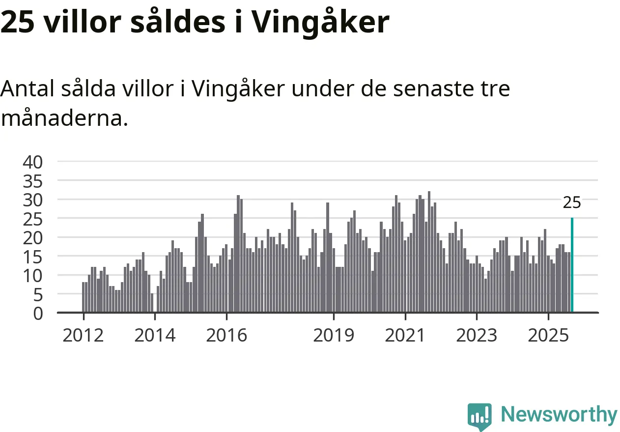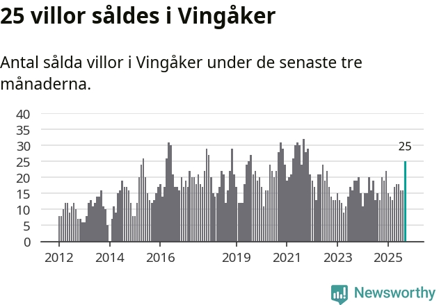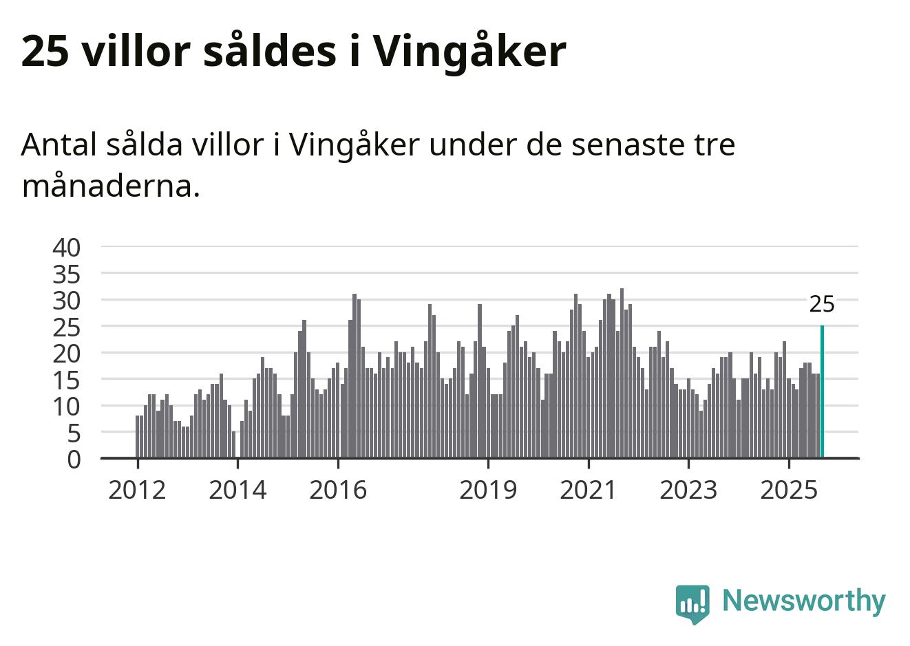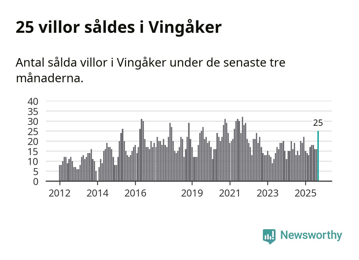 Mellan juli och september såldes 25 villor i Vingåkers kommun. Det är fler än någon tremånadersperiod sedan 2021.