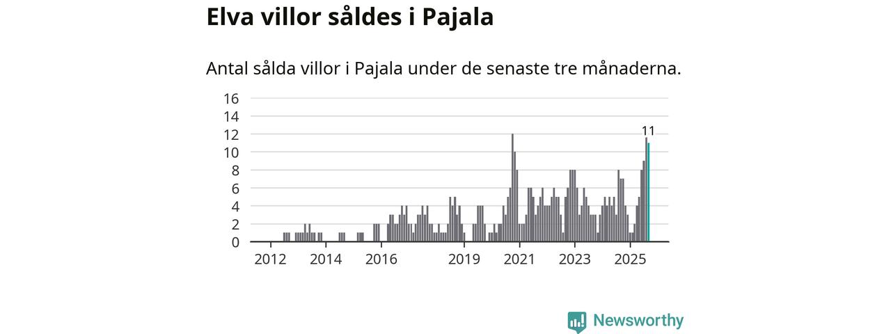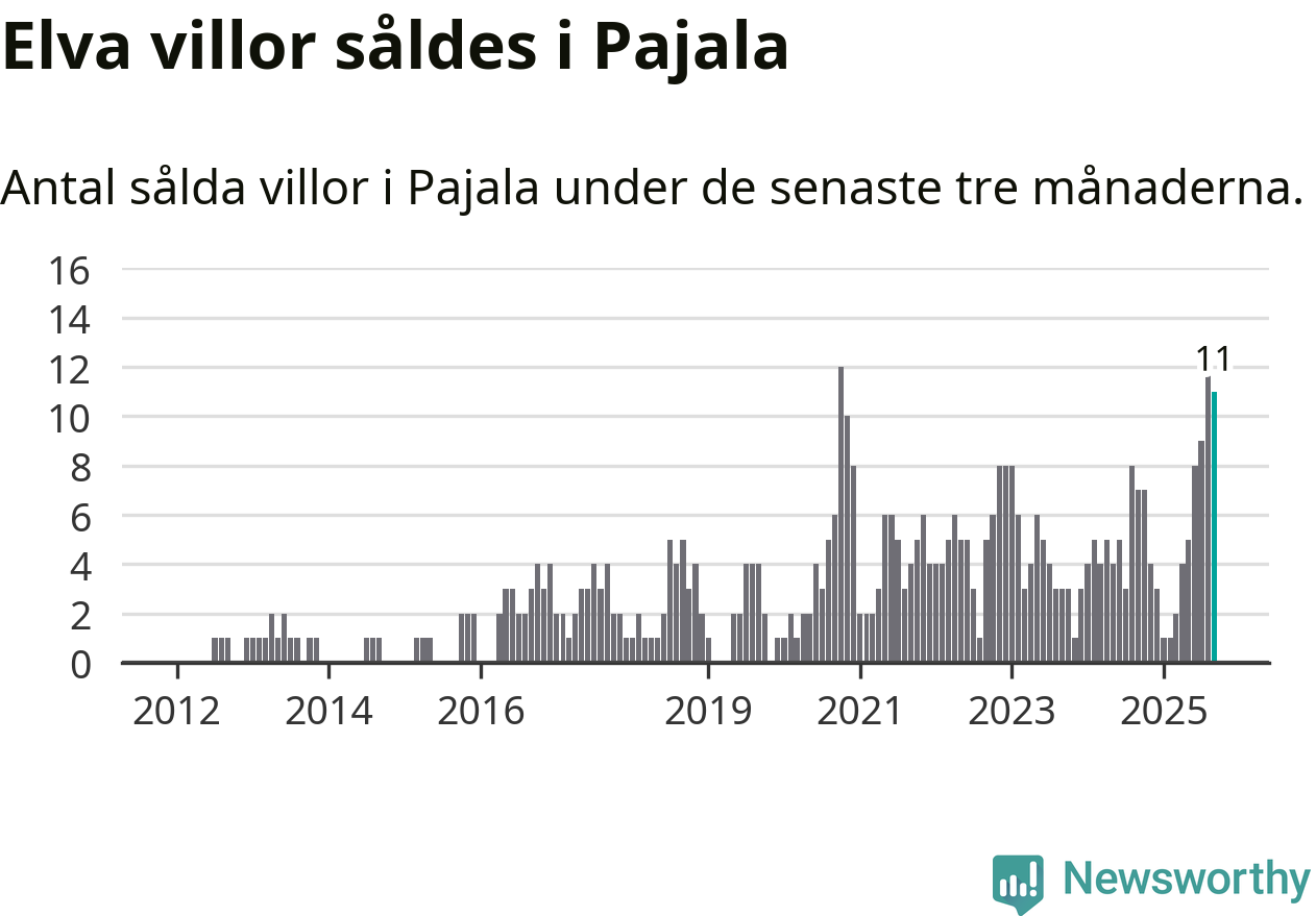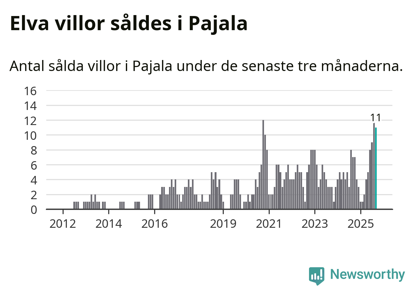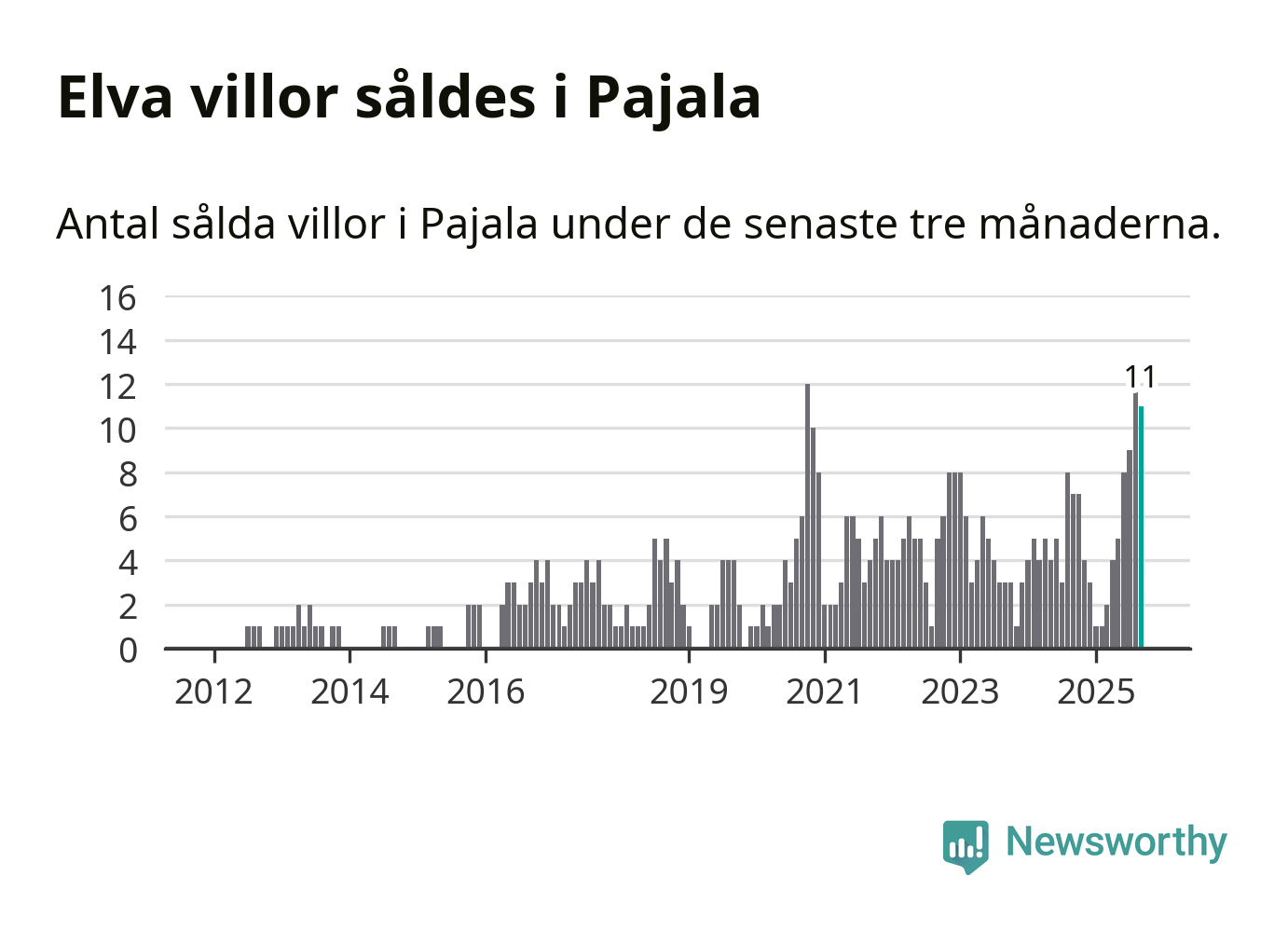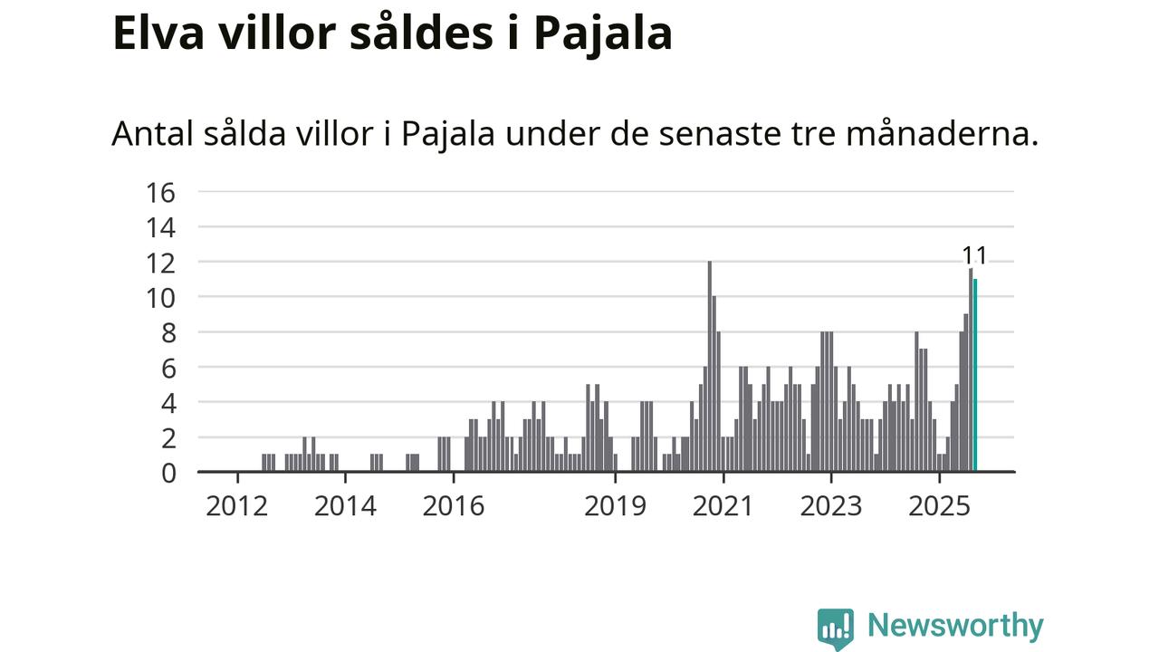 Mellan juli och september gjordes sammanlagt elva affärer med villor i Pajala kommun. Det kan jämföras med sju vid motsvarande tid i fjol.