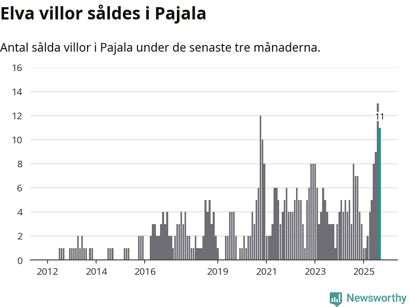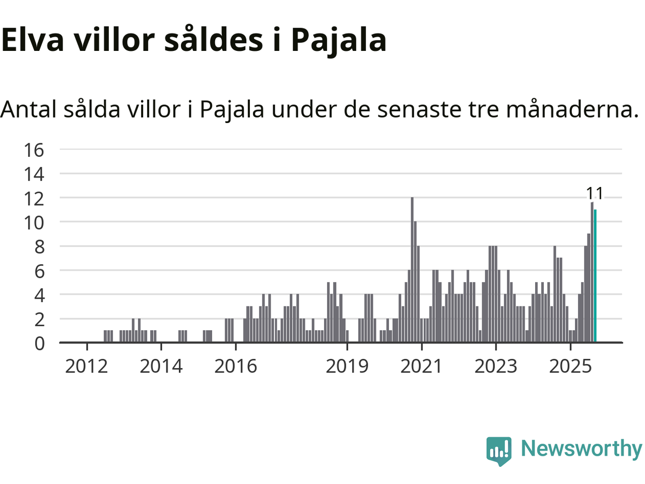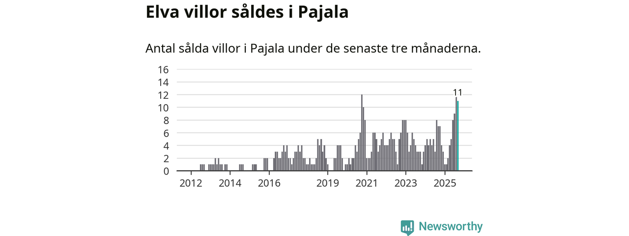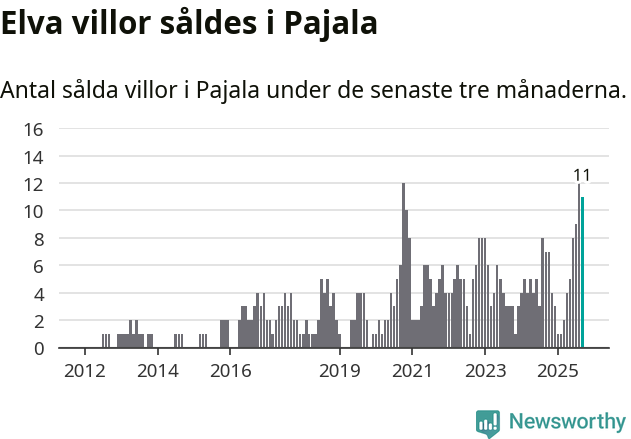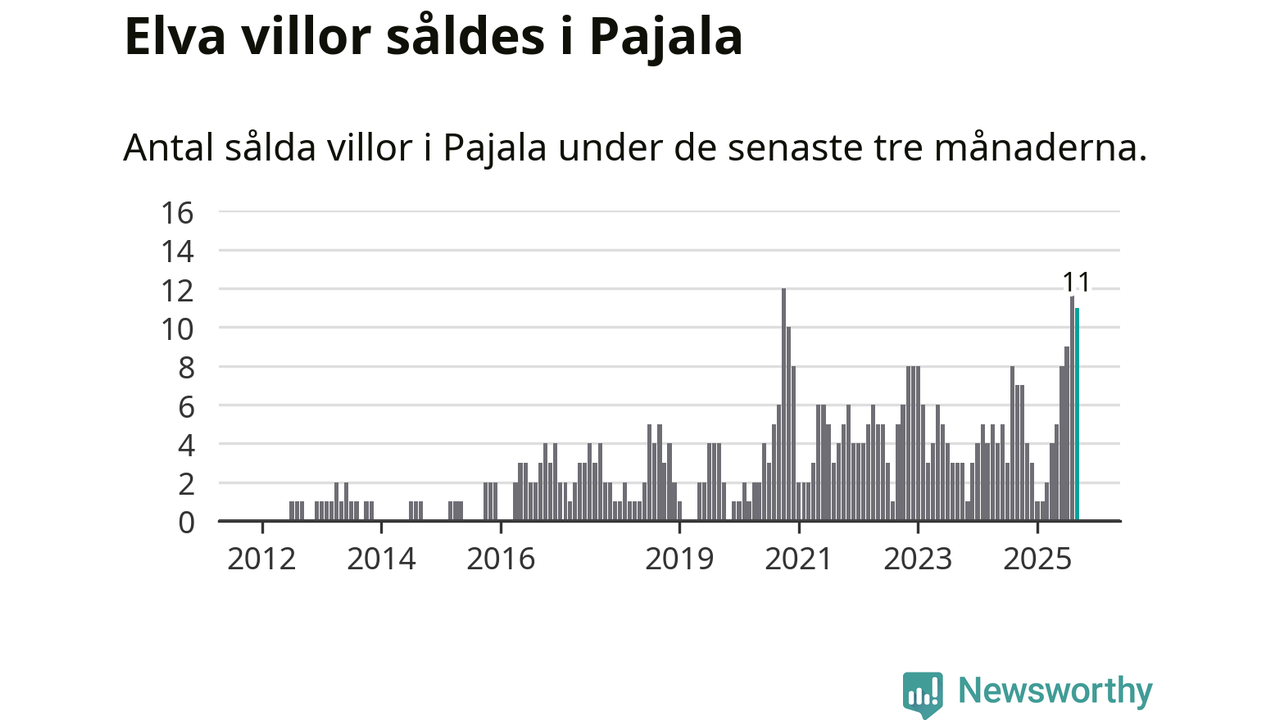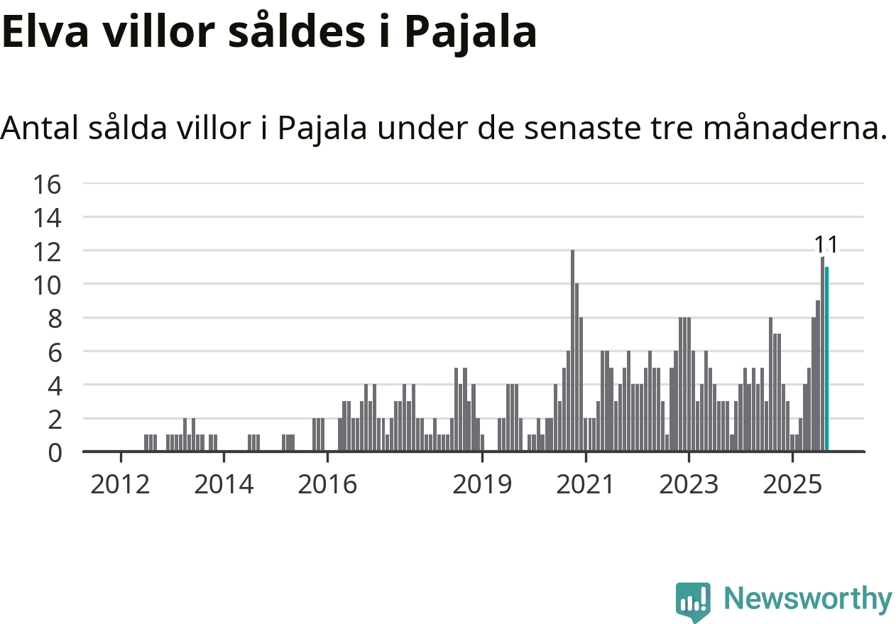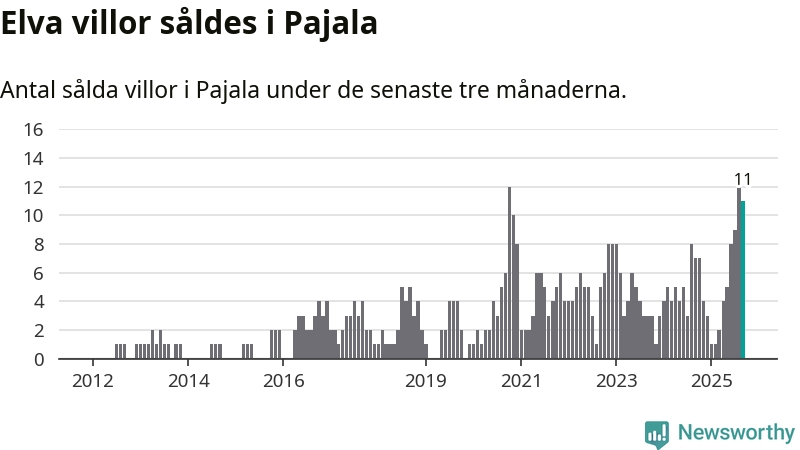 Mellan juli och september gjordes sammanlagt elva affärer med villor i Pajala kommun. Det kan jämföras med sju vid motsvarande tid i fjol.