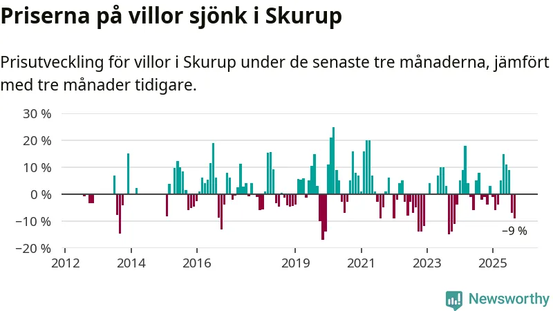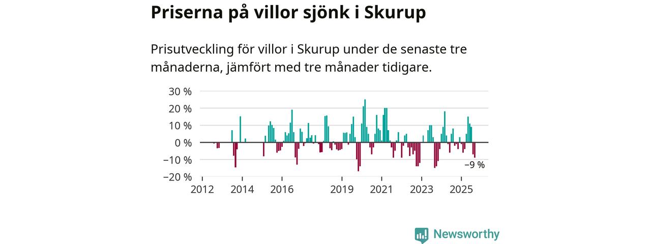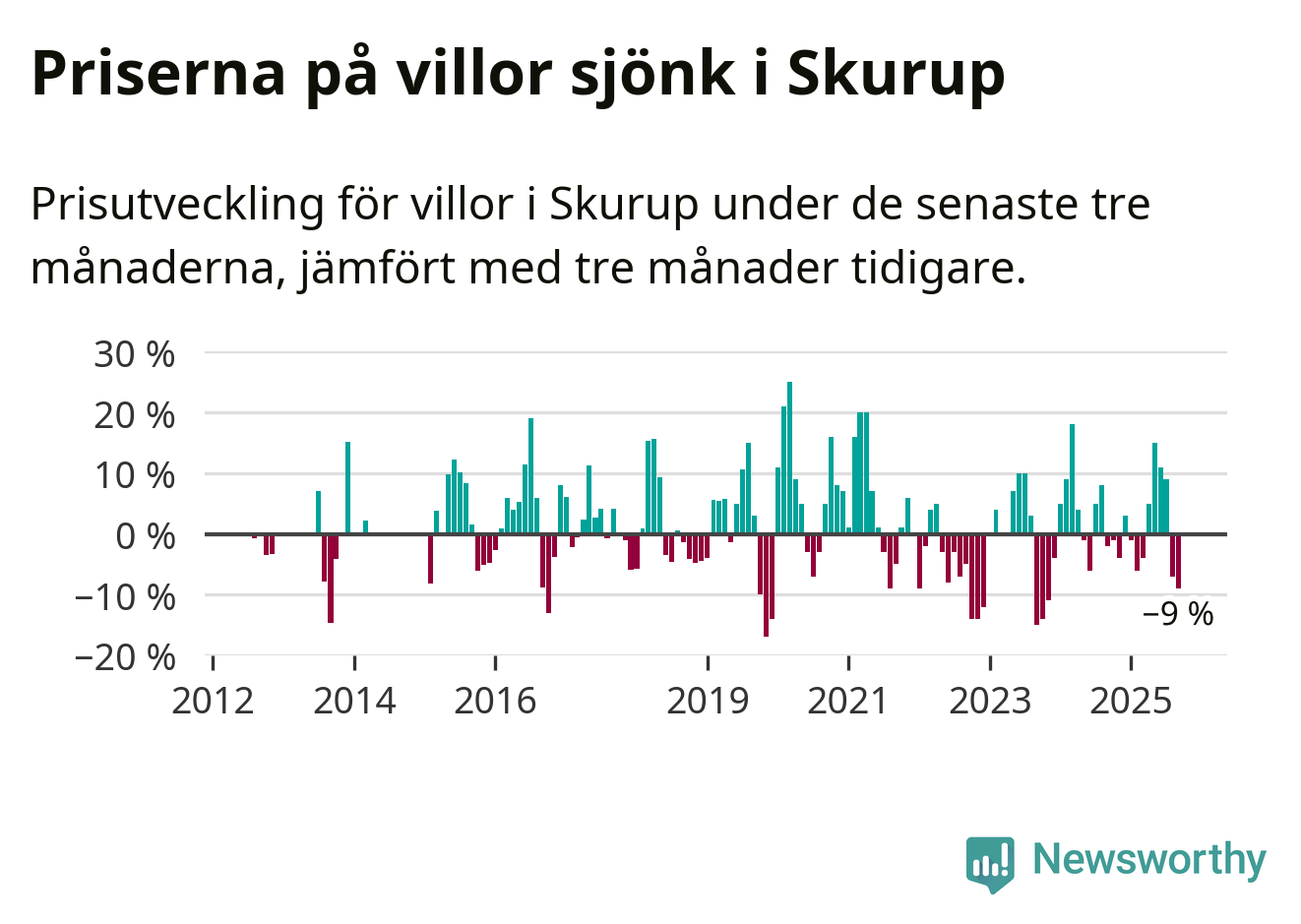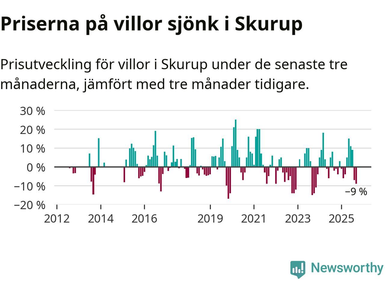 Under juli till september såldes det nio färre villor i Skurup än snittet för det senaste året.