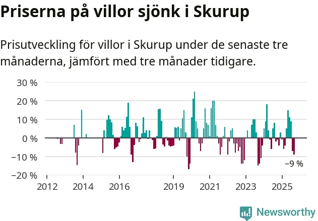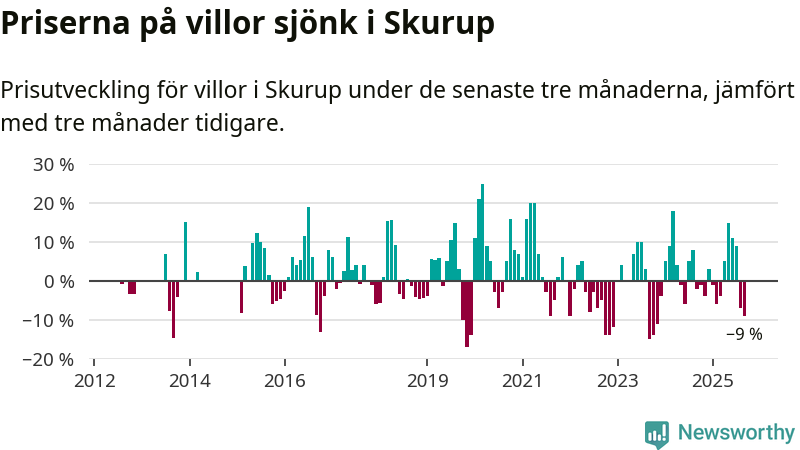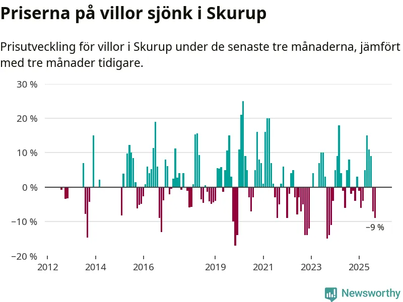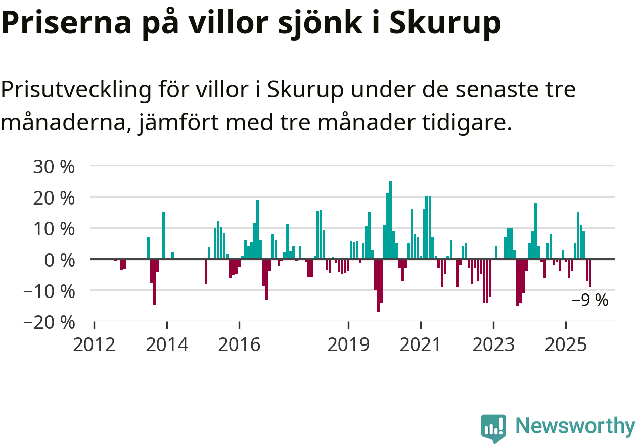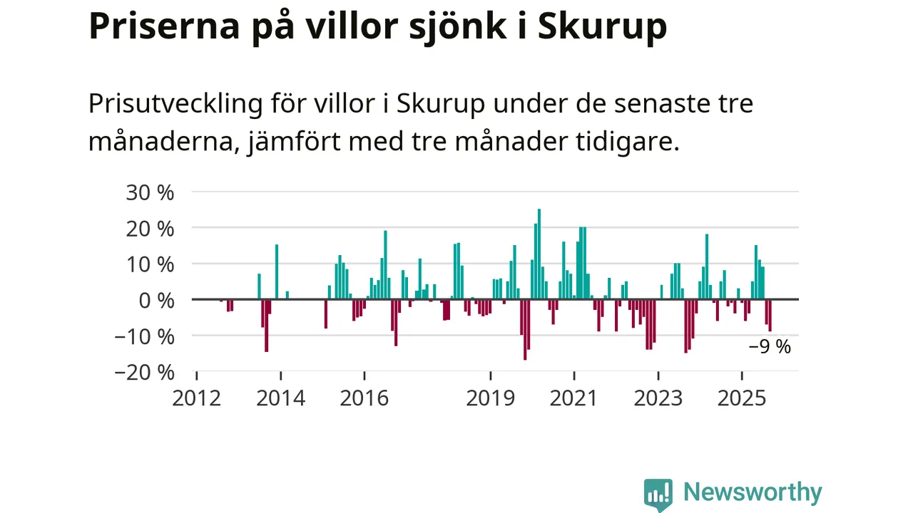 Under juli till september såldes det nio färre villor i Skurup än snittet för det senaste året.