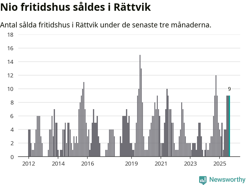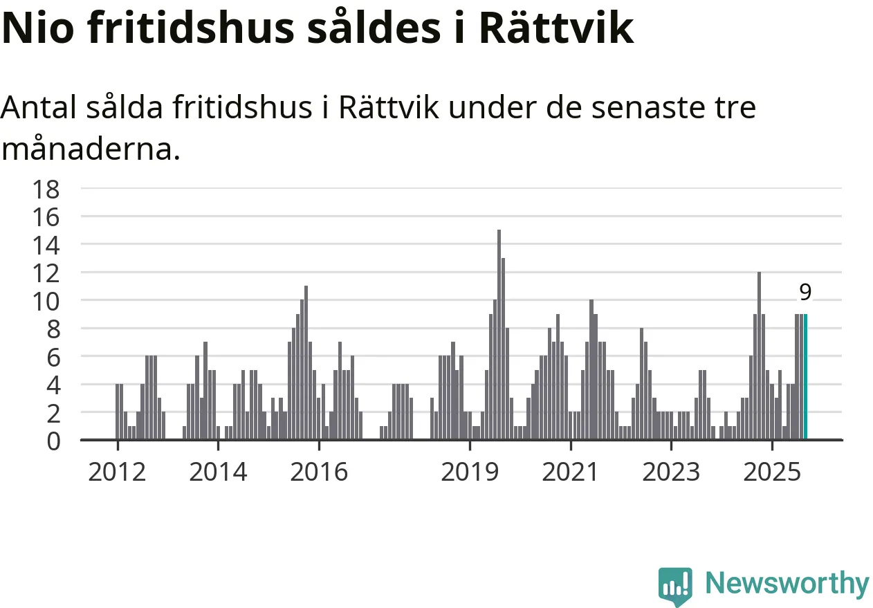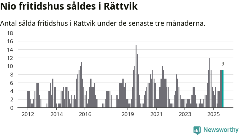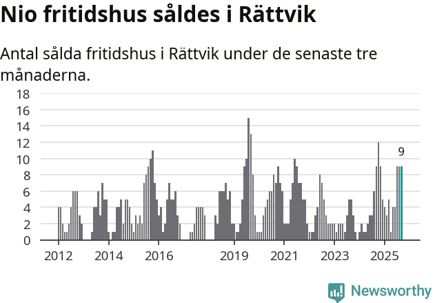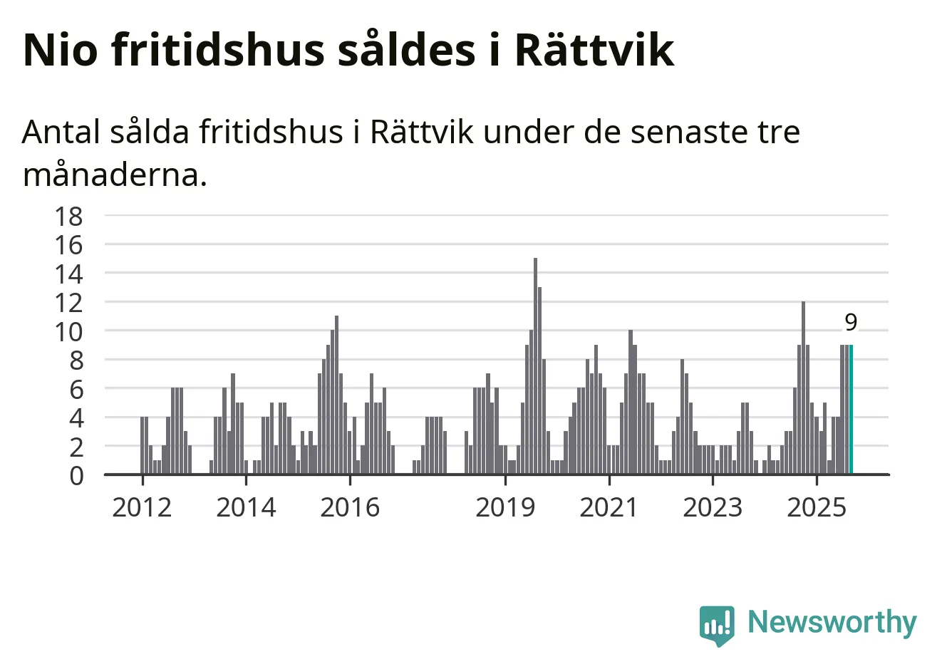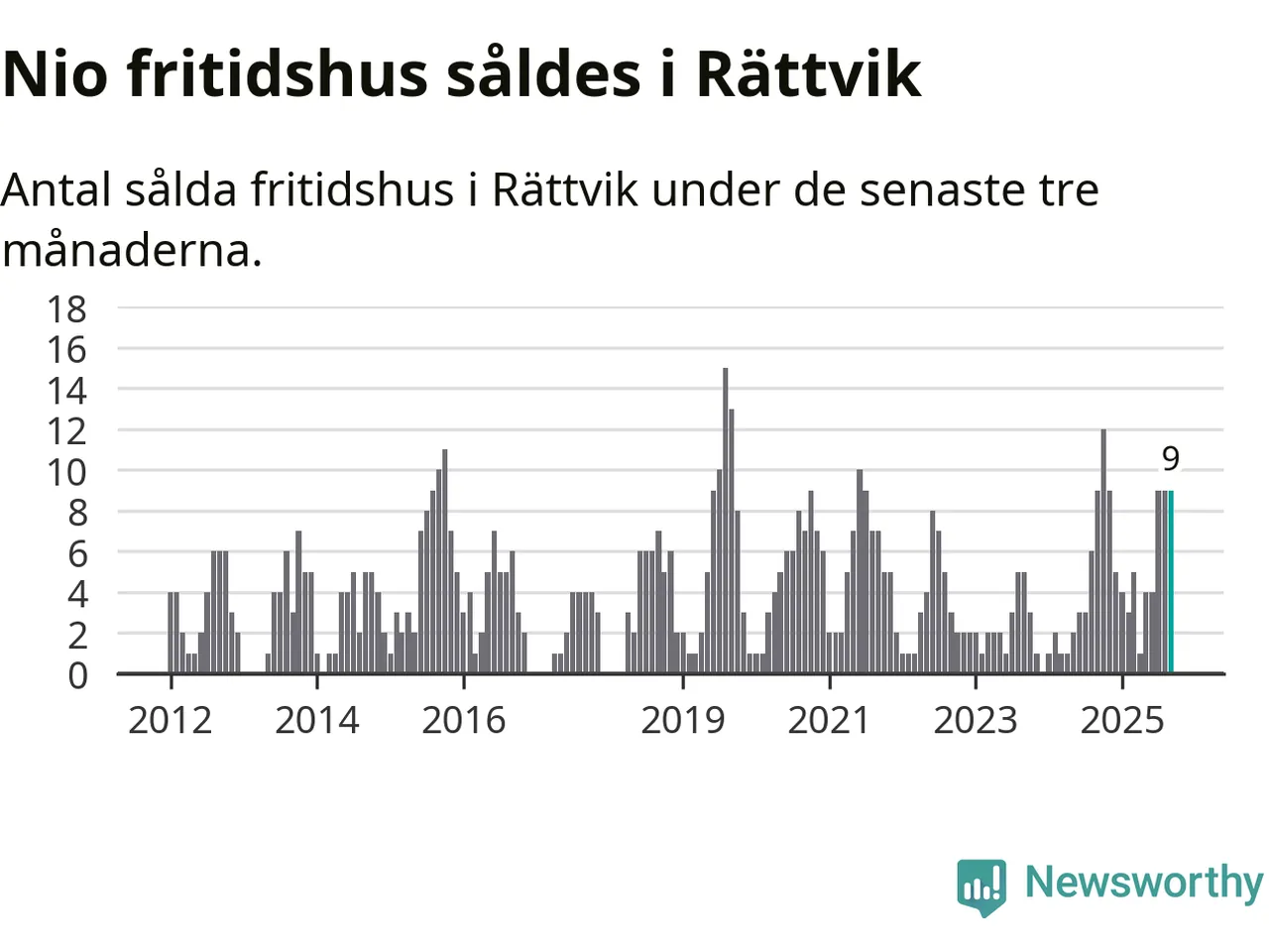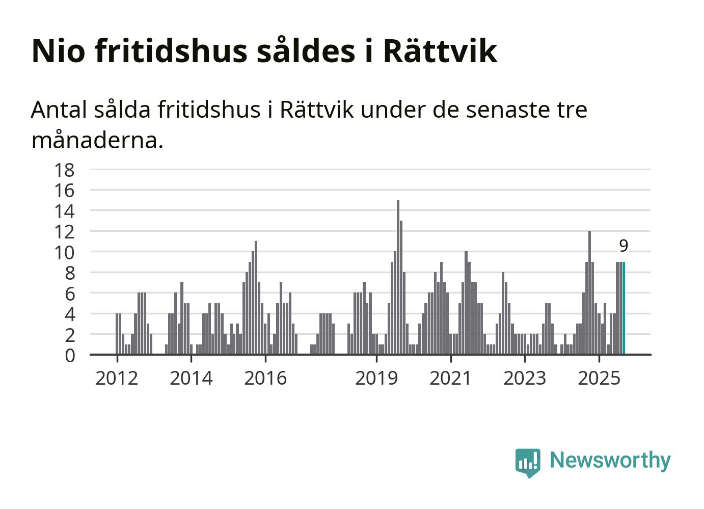 Mellan juli och september gjordes sammanlagt nio affärer med fritidshus i Rättviks kommun. Det är lika många affärer som vid motsvarande tid i fjol.