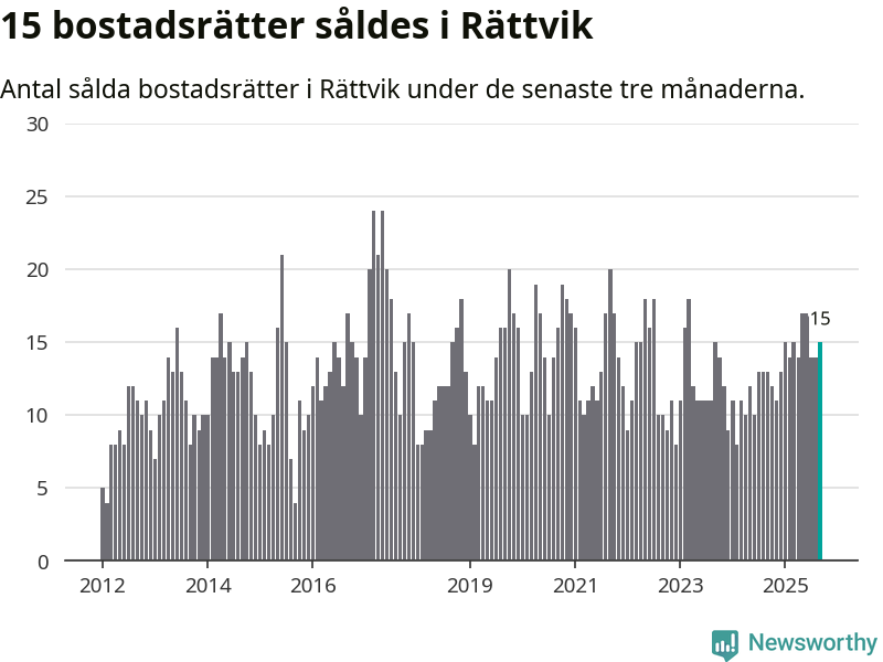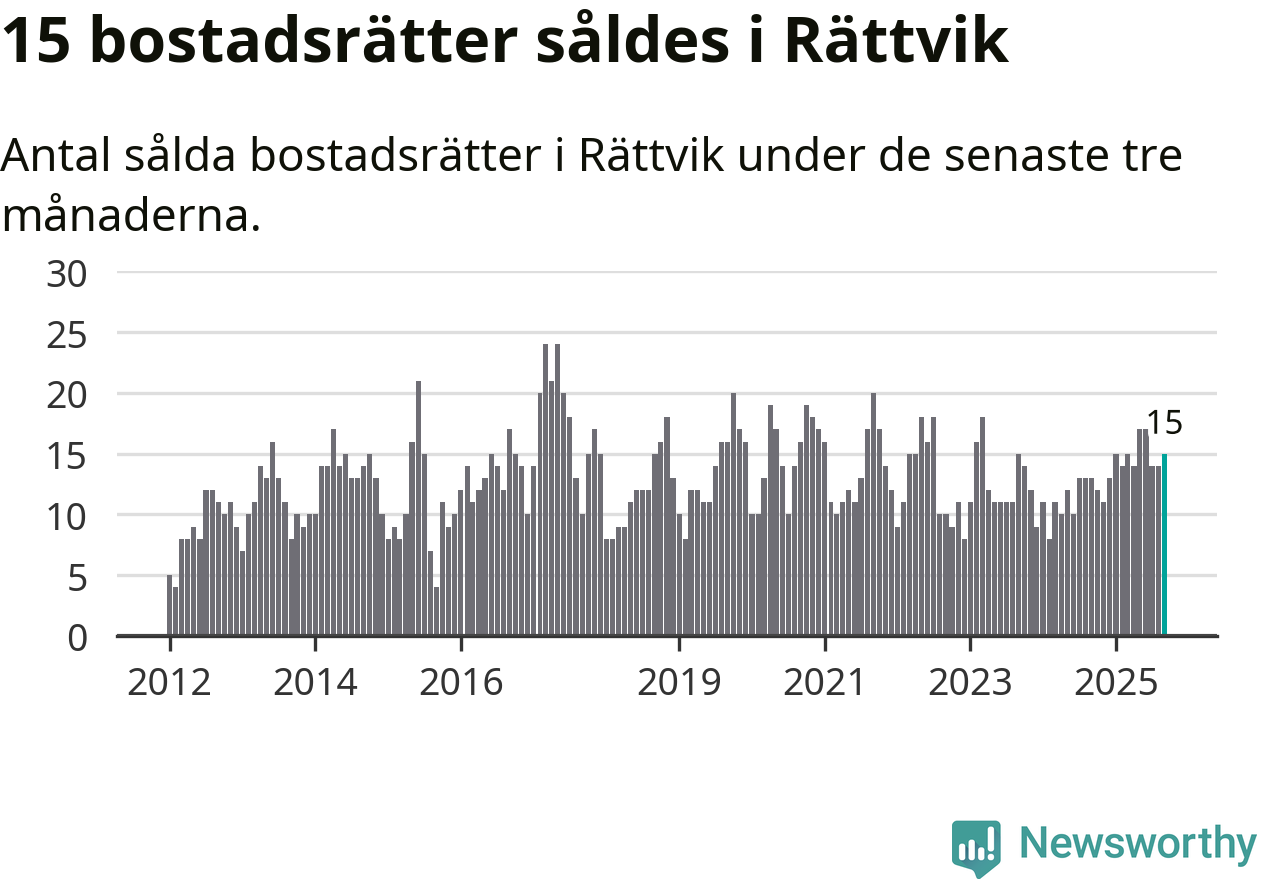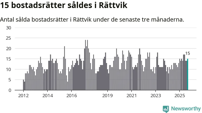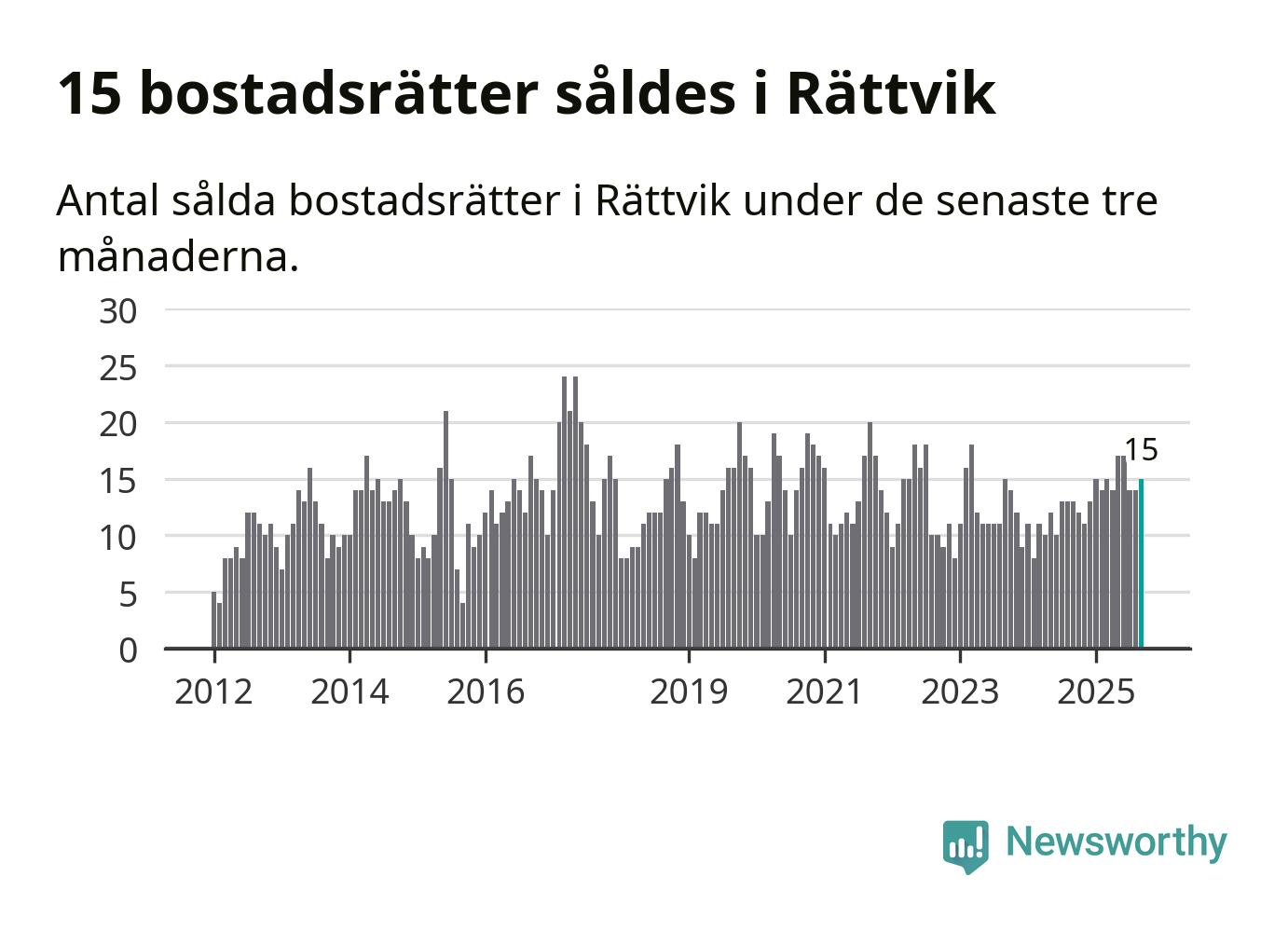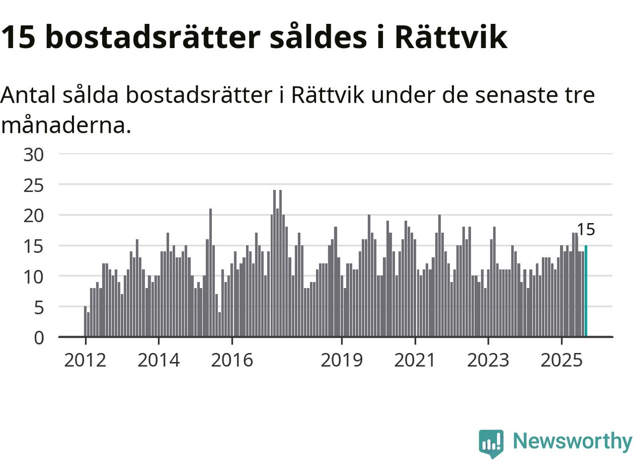 Mellan juli och september gjordes sammanlagt 15 affärer med bostadsrätter i Rättviks kommun. Det kan jämföras med 13 vid motsvarande tid i fjol.