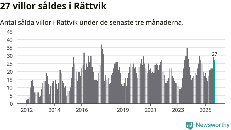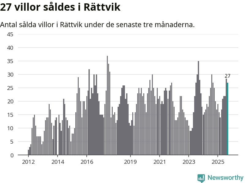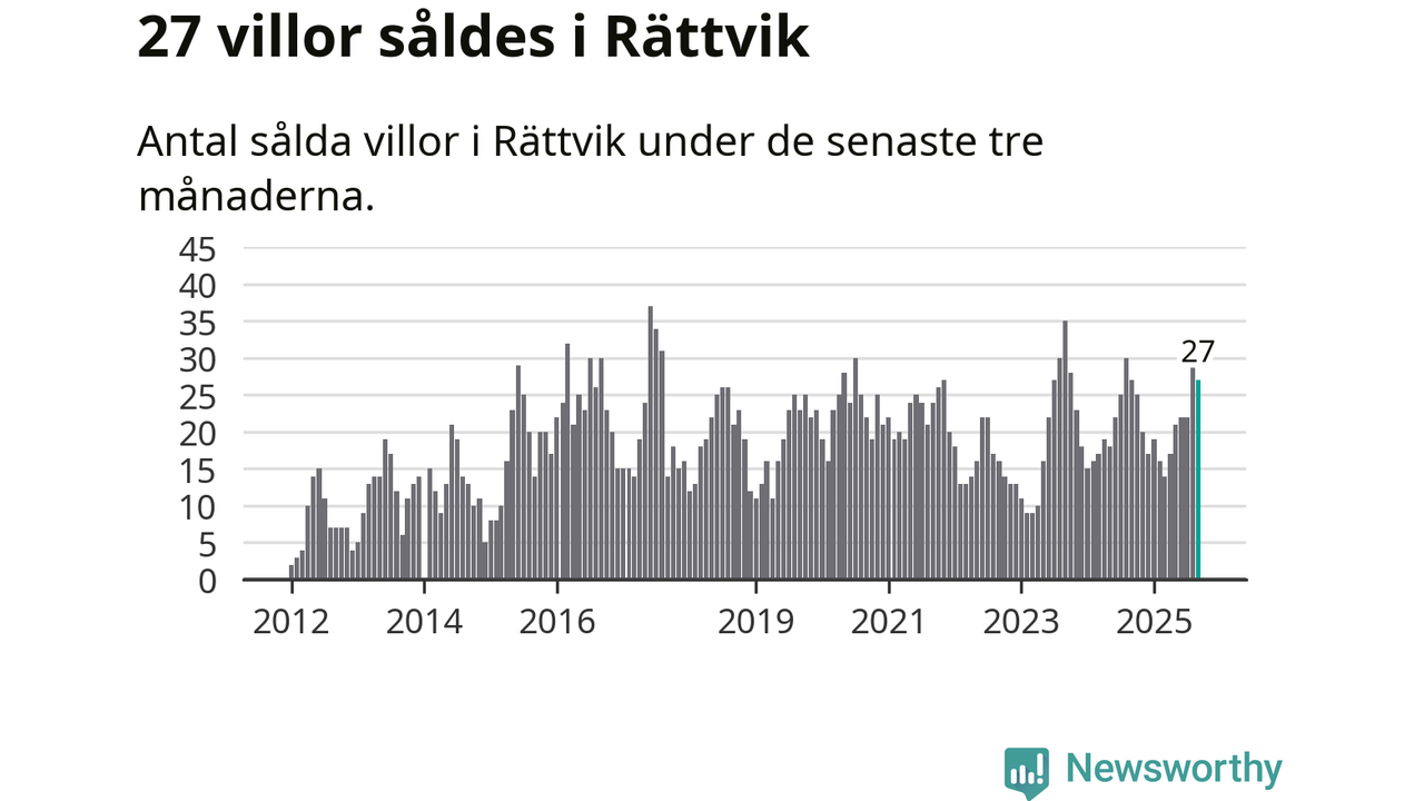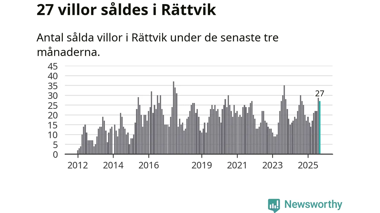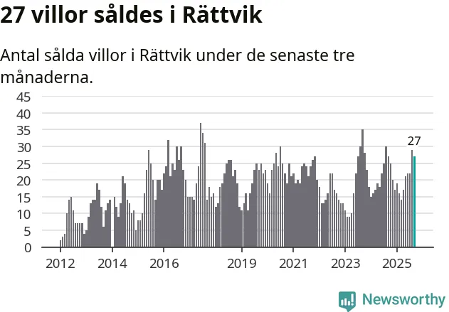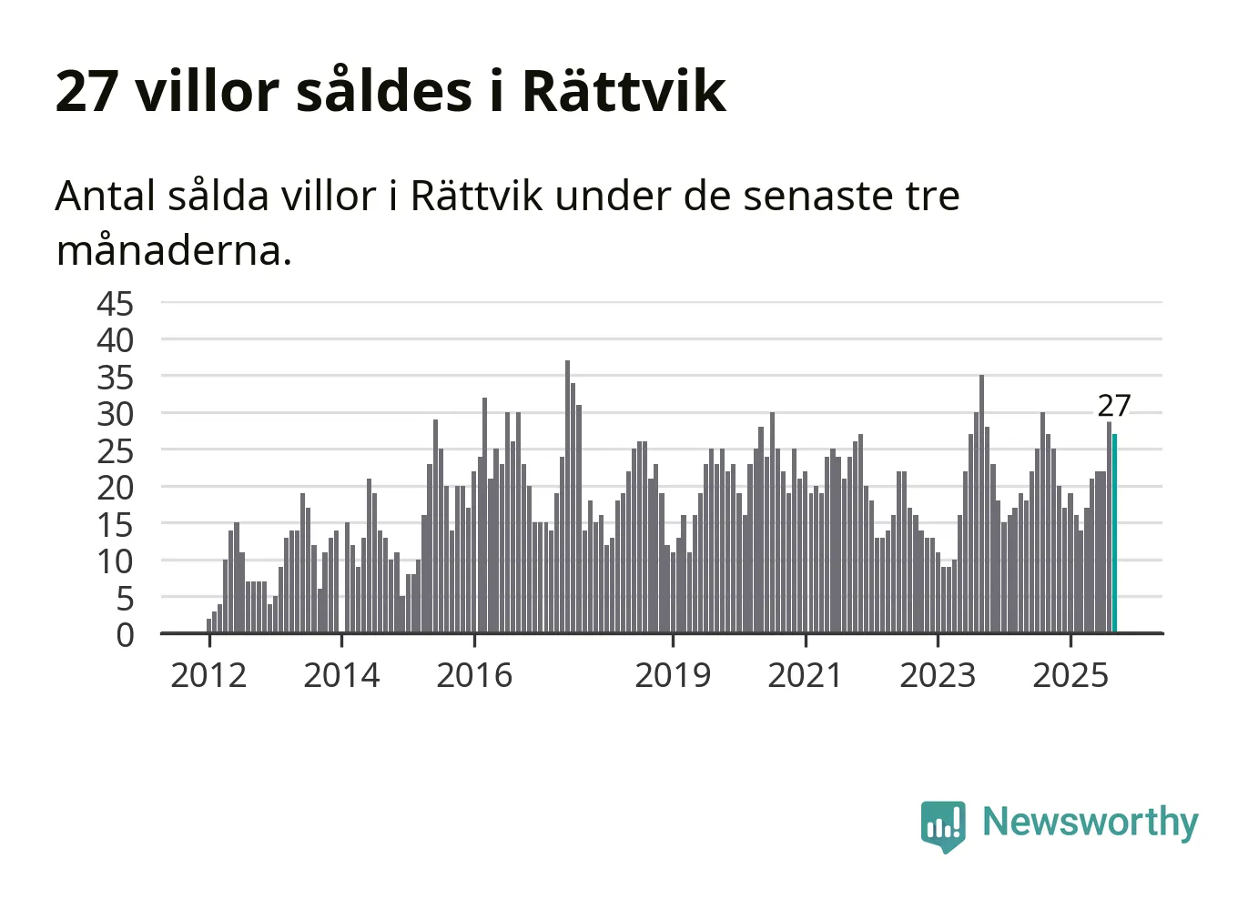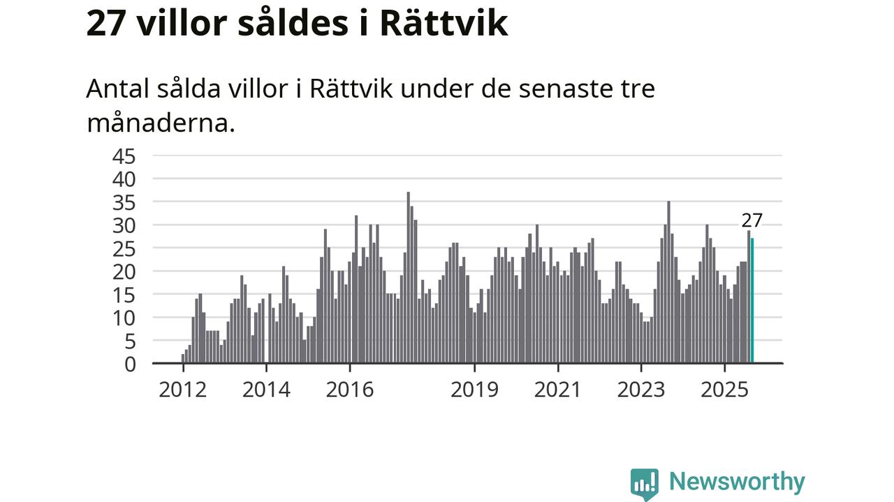 Mellan juli och september gjordes sammanlagt 27 affärer med villor i Rättviks kommun. Det är lika många affärer som vid motsvarande tid i fjol.