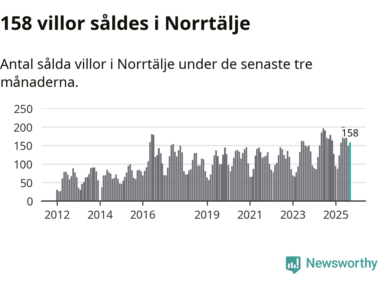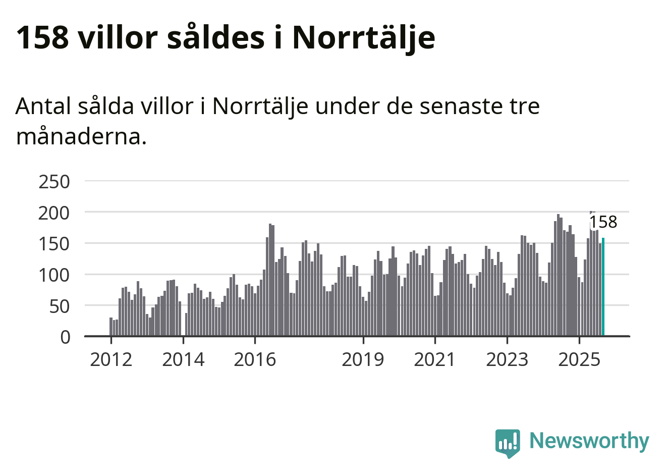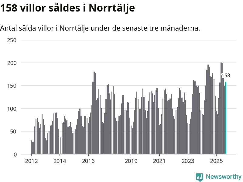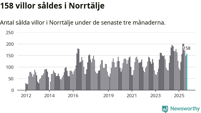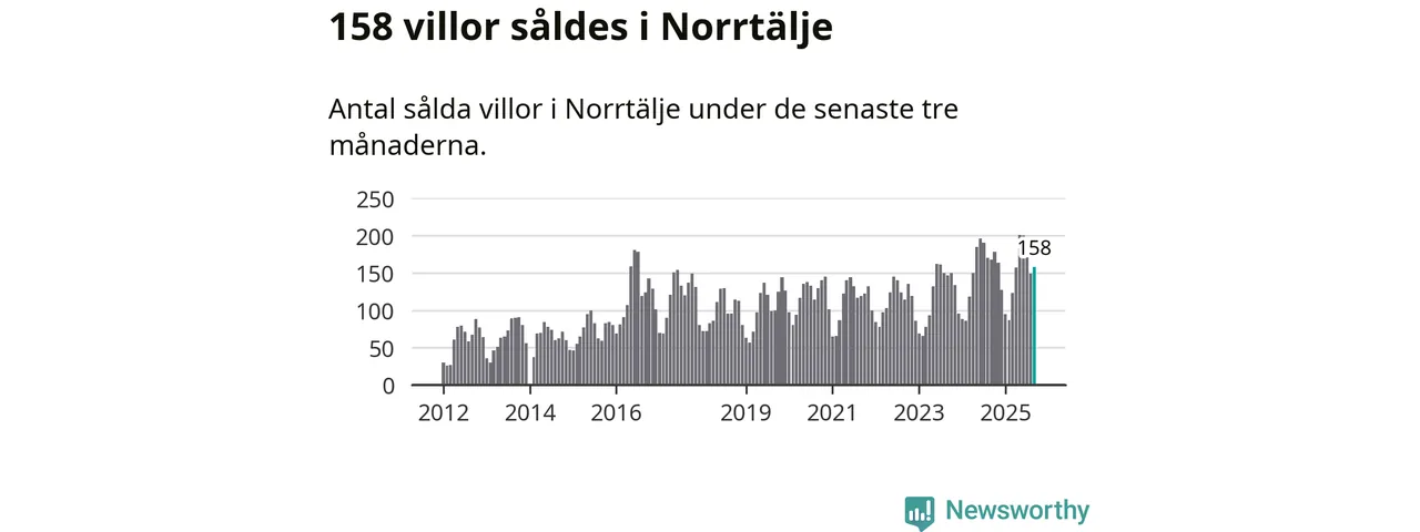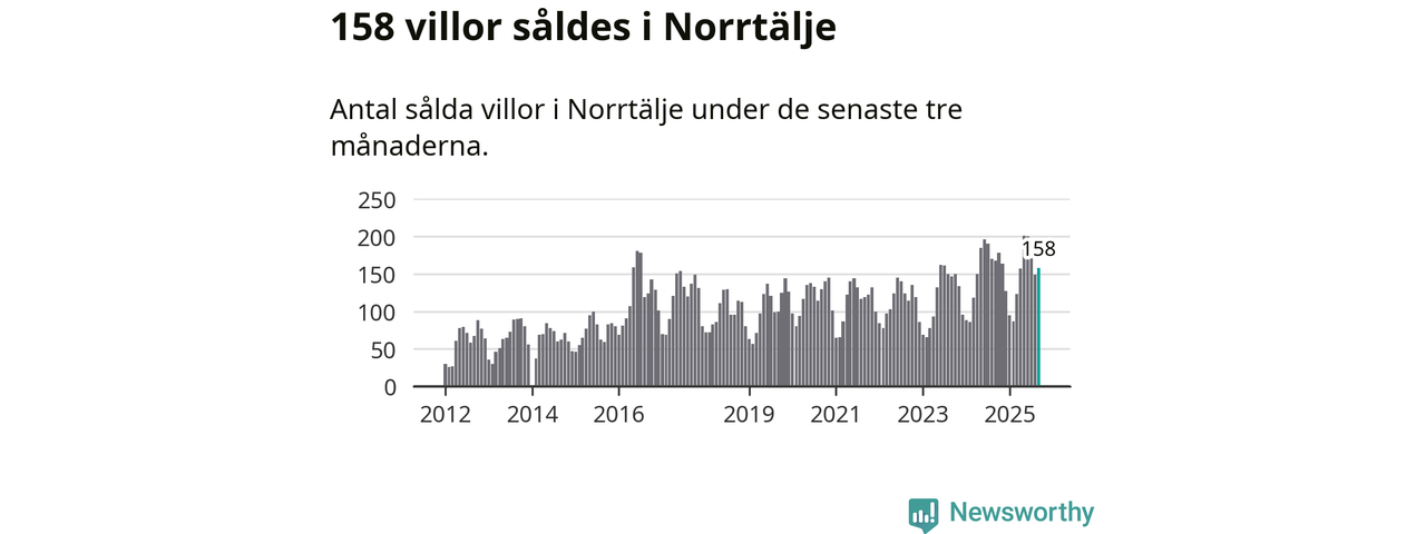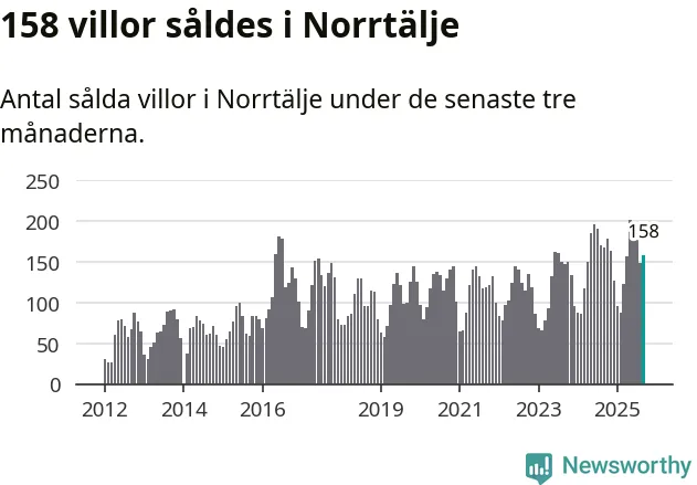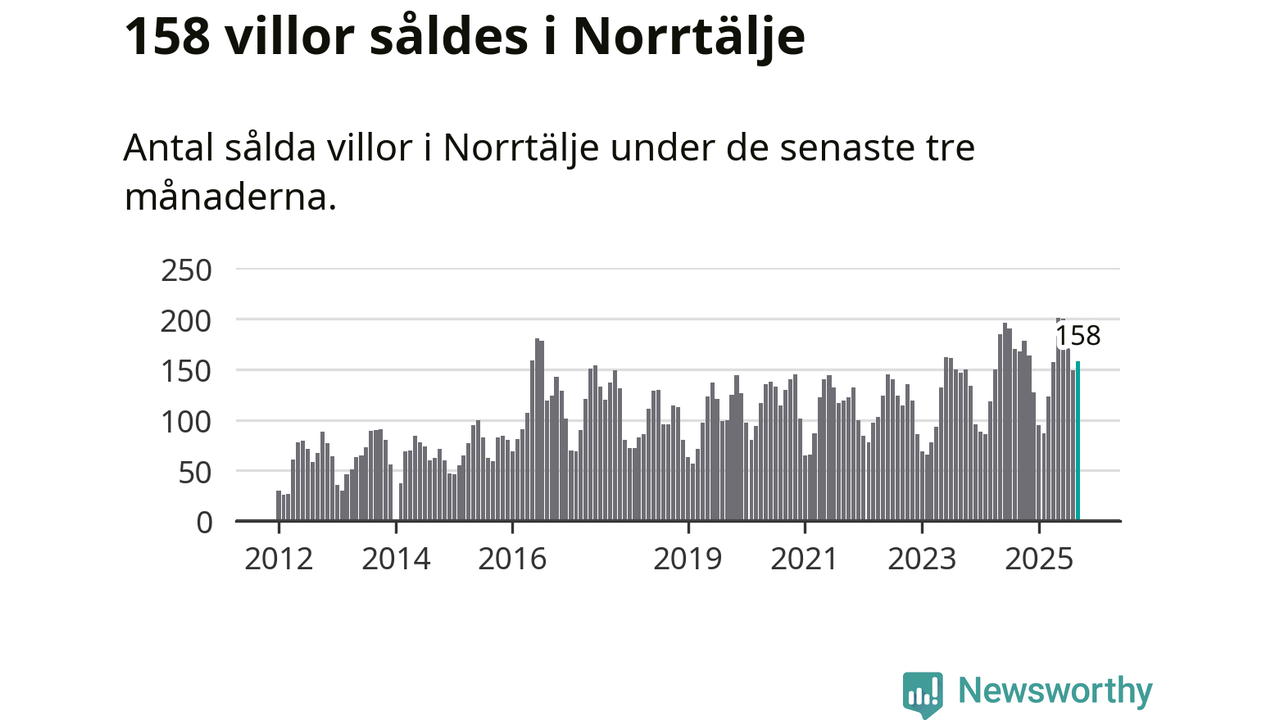 Sammanlagt såldes 158 villor i Norrtälje kommun mellan juli och september till ett genomsnittligt pris på 3,6 miljoner kronor. I fjol gjordes 168 affärer vid den här tiden på året.