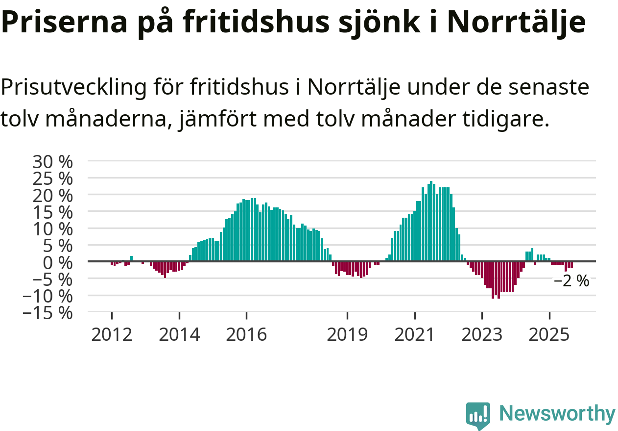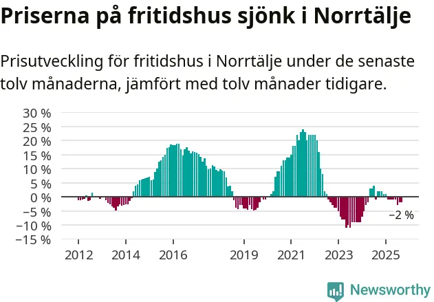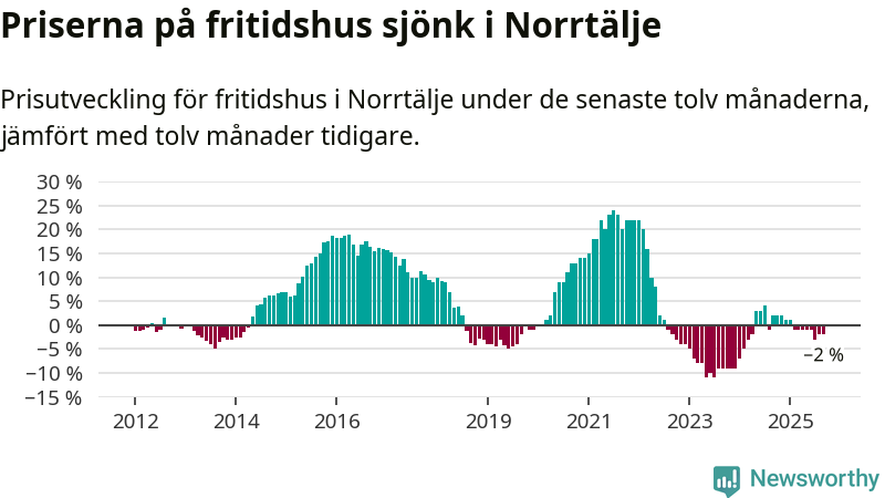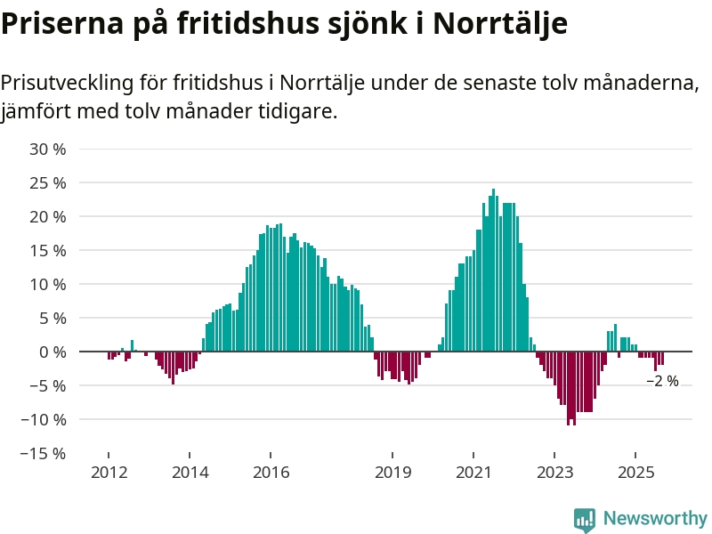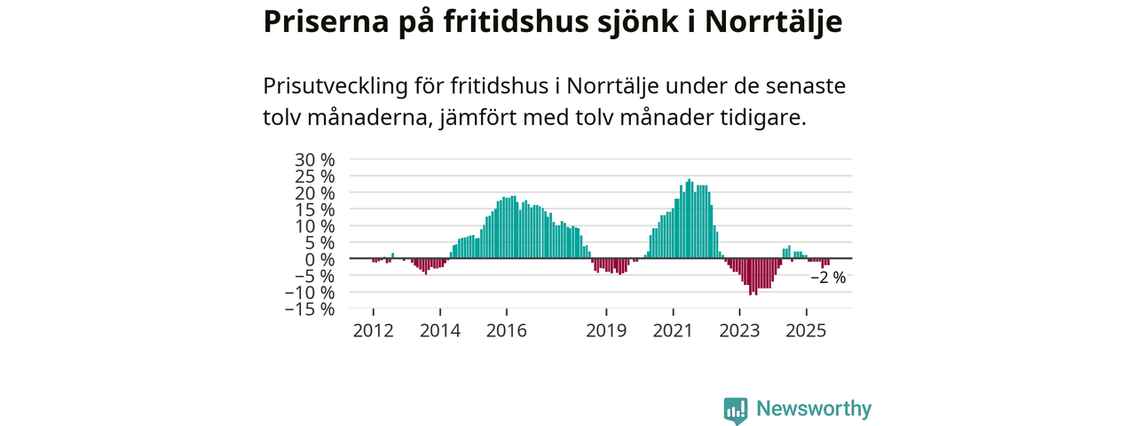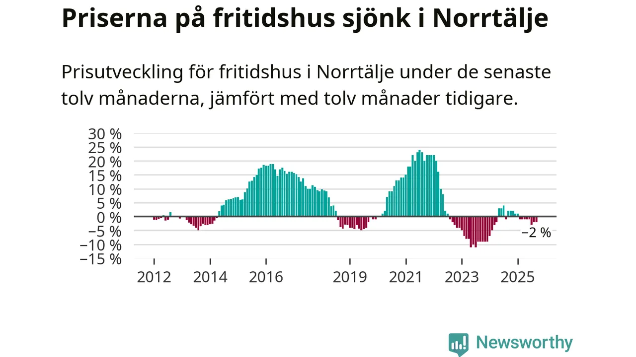 Priserna på fritidshus har gått ner i Norrtälje kommun. Medelpriset på försäljningarna under de senaste tolv månaderna visar på en nedgång med 2 procent.