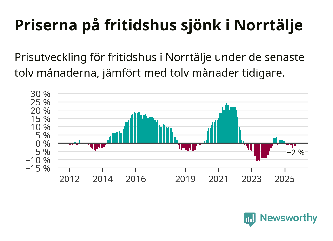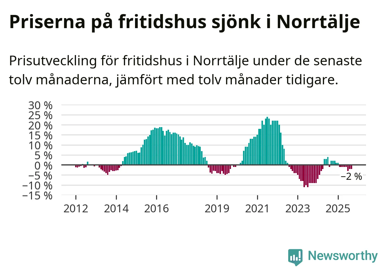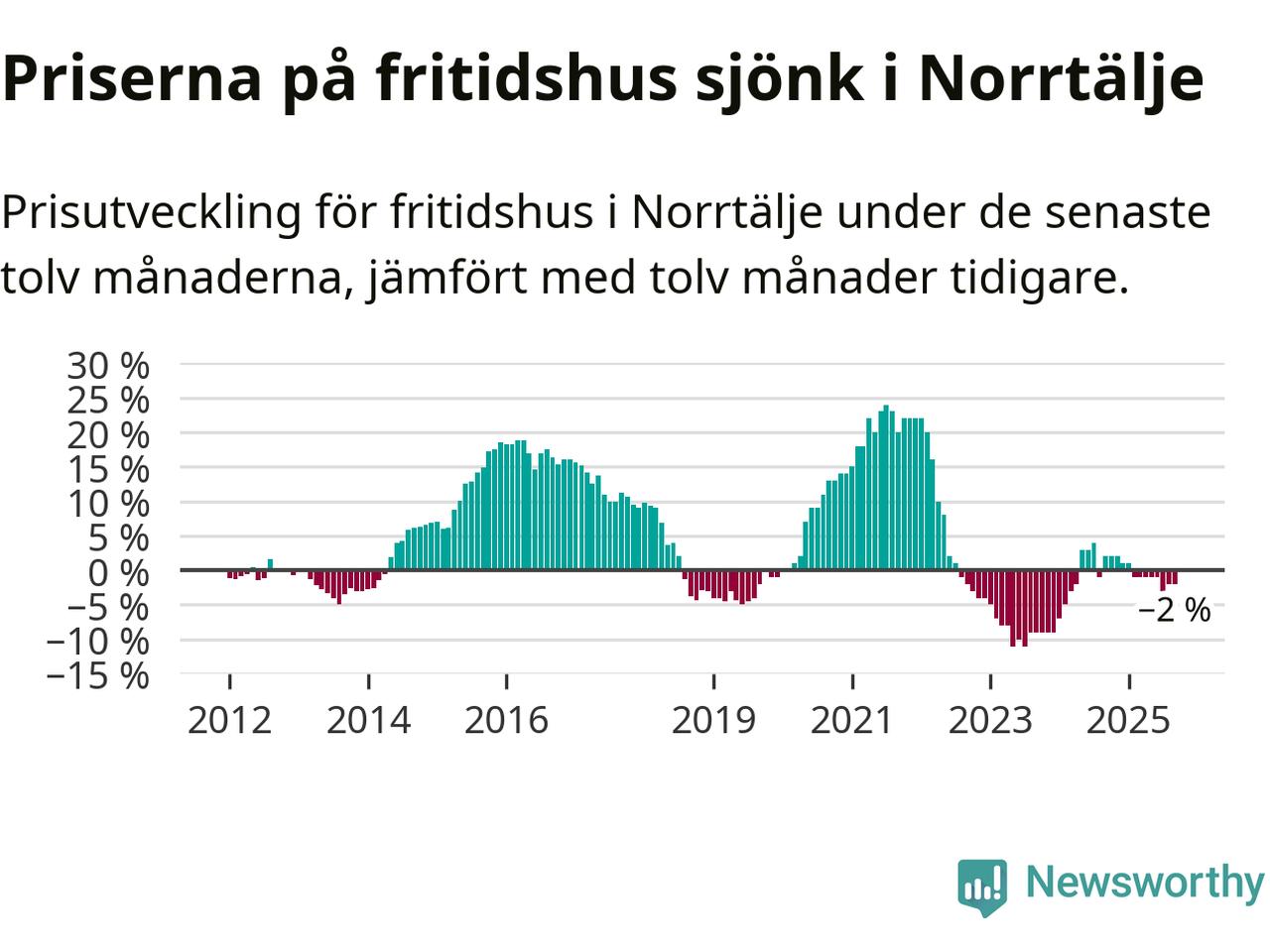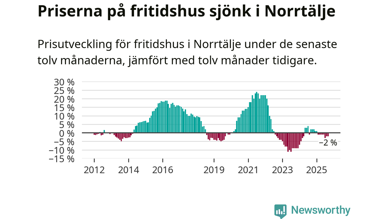 Priserna på fritidshus har gått ner i Norrtälje kommun. Medelpriset på försäljningarna under de senaste tolv månaderna visar på en nedgång med 2 procent.