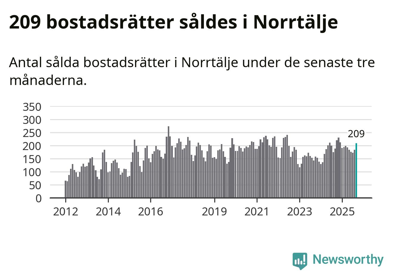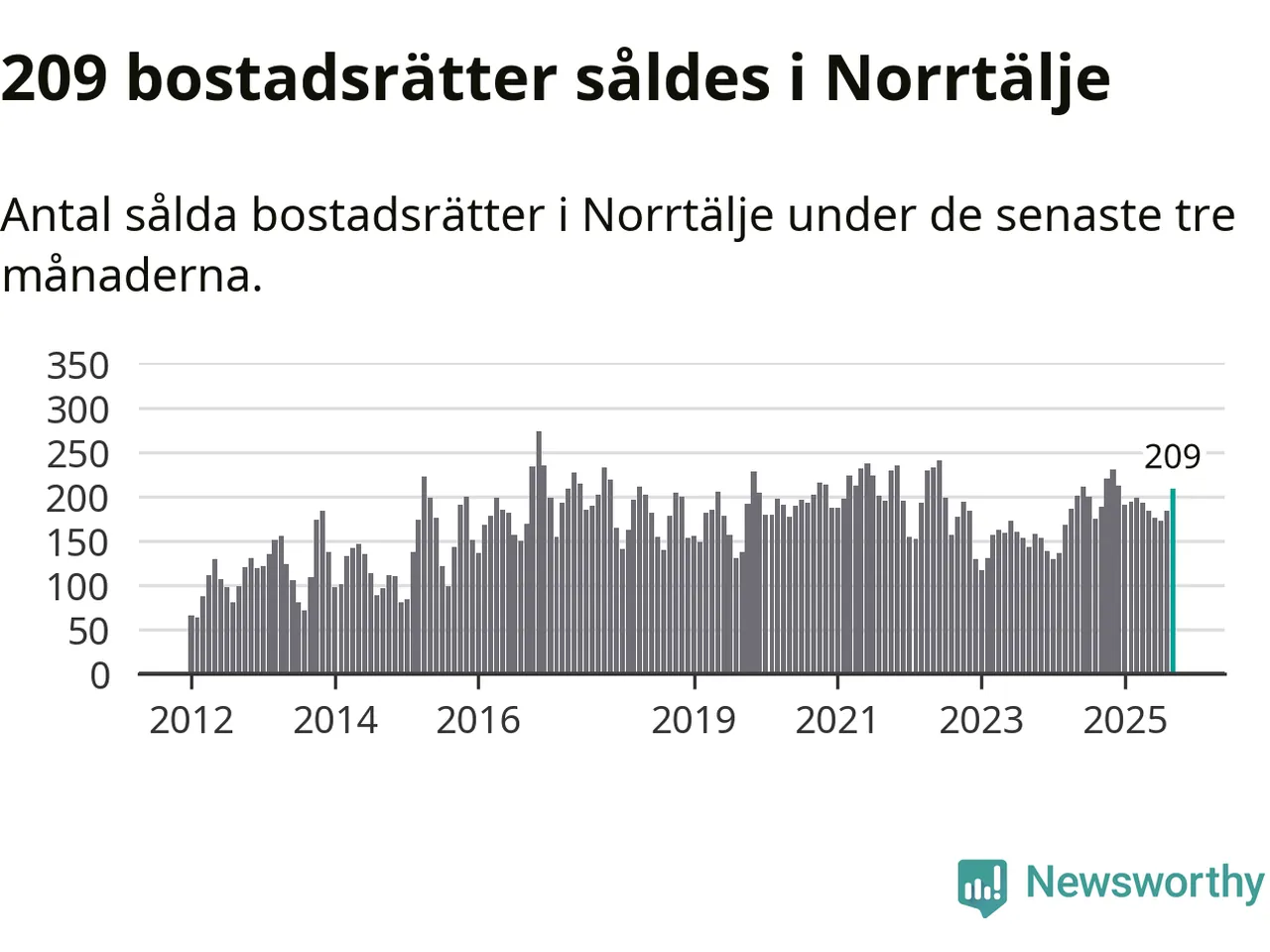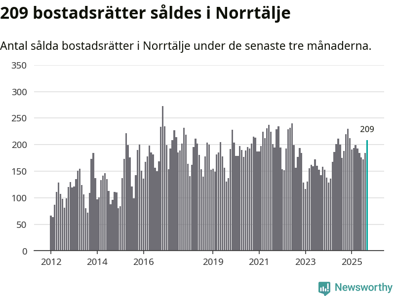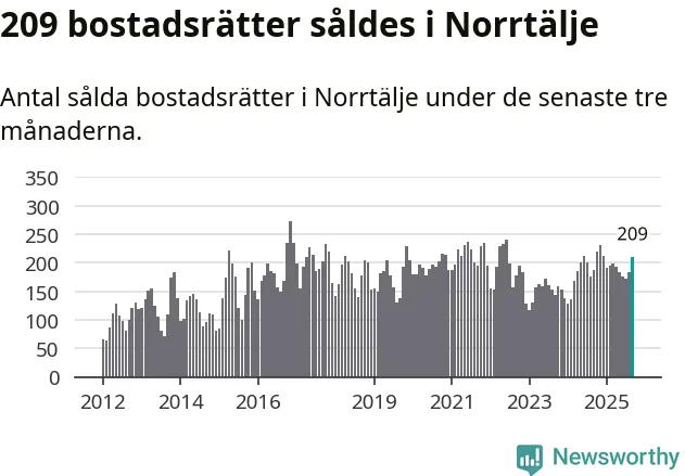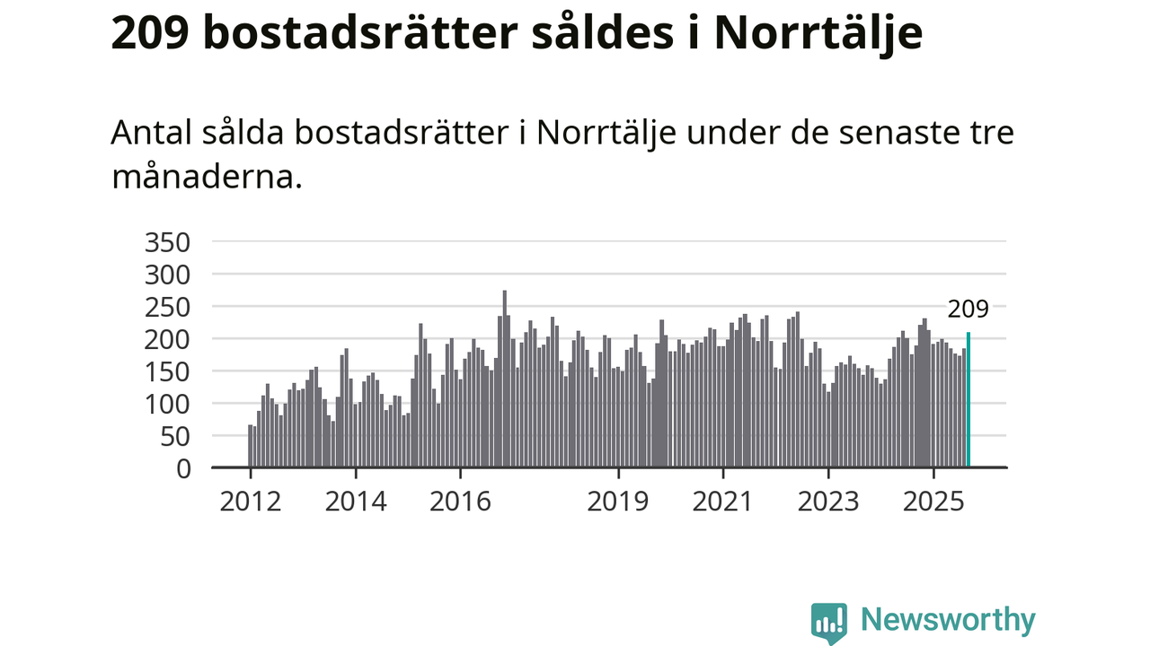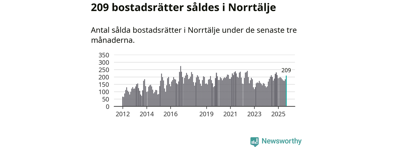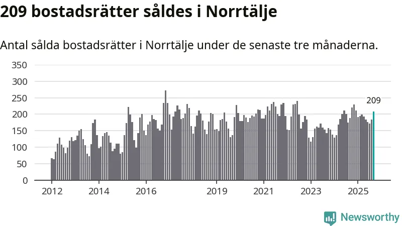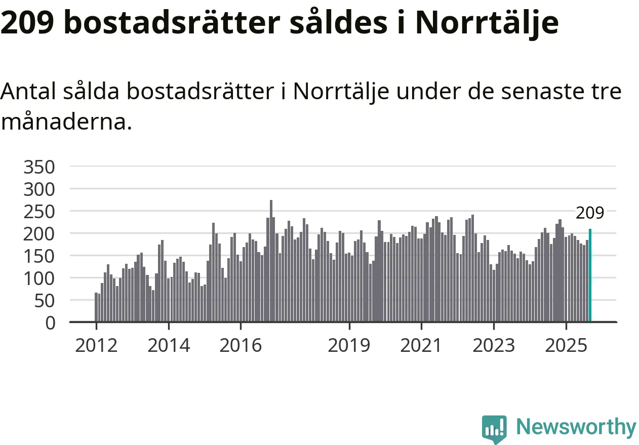 Sammanlagt såldes 209 bostadsrätter i Norrtälje kommun mellan juli och september till ett genomsnittligt pris på 2,0 miljoner kronor. I fjol gjordes 188 affärer vid den här tiden på året.