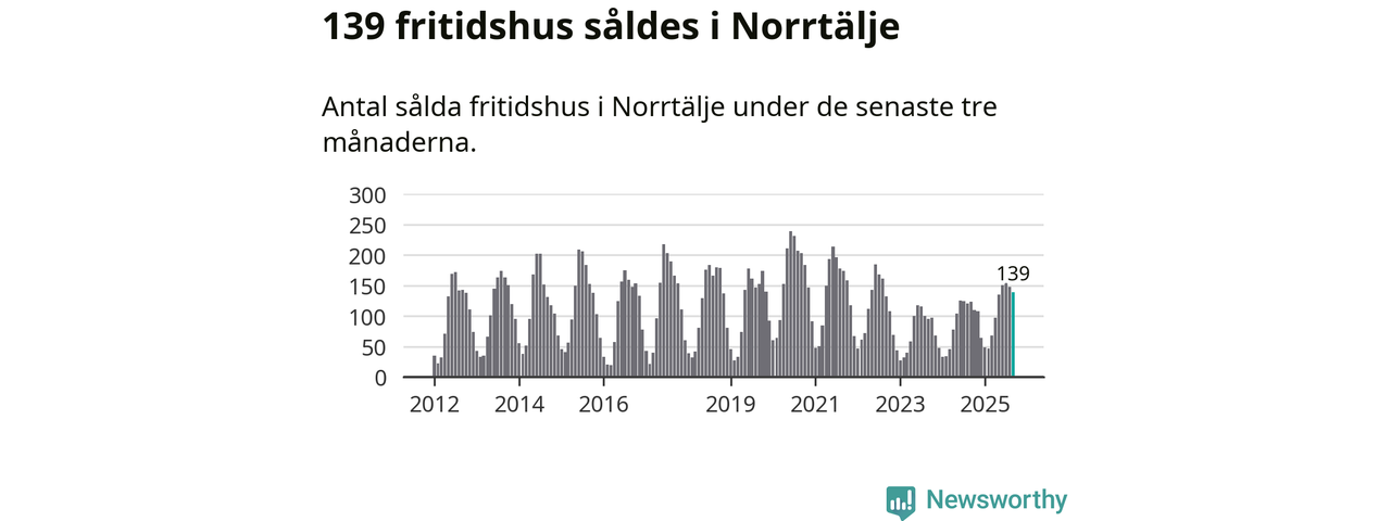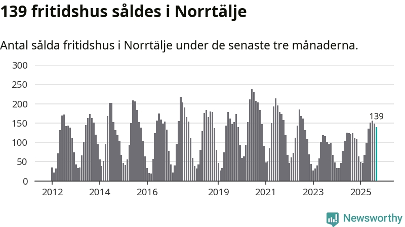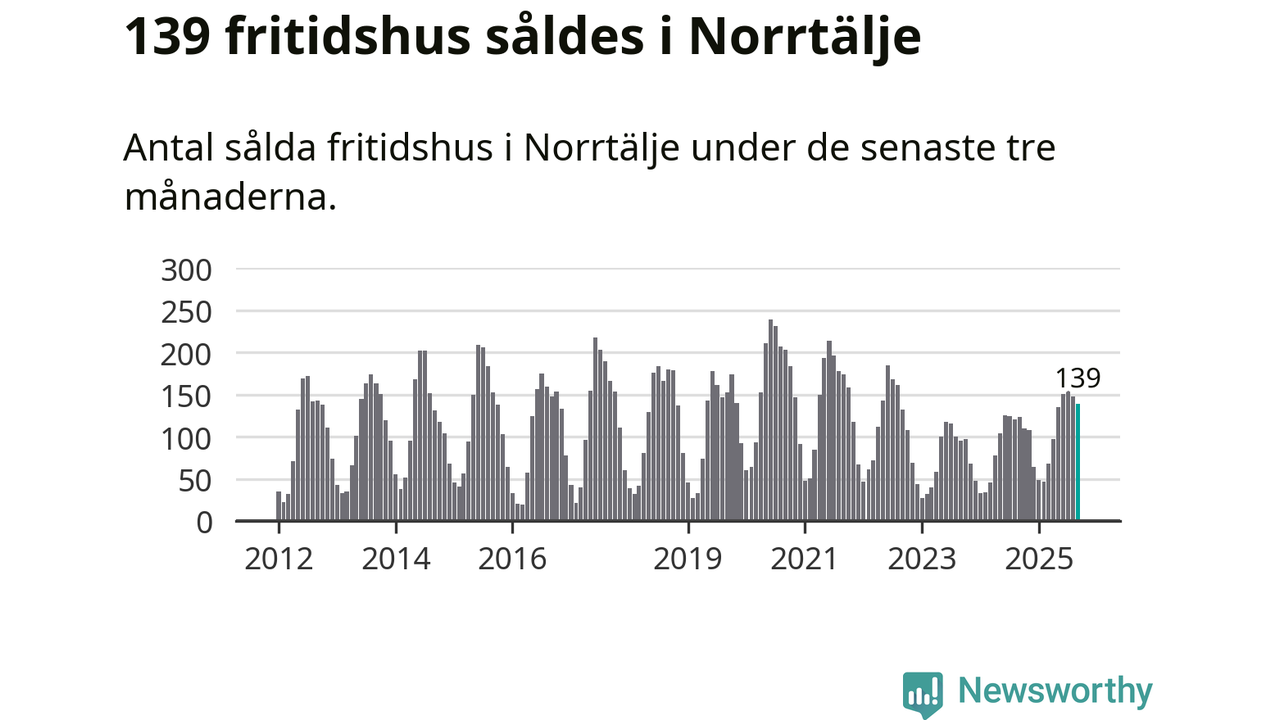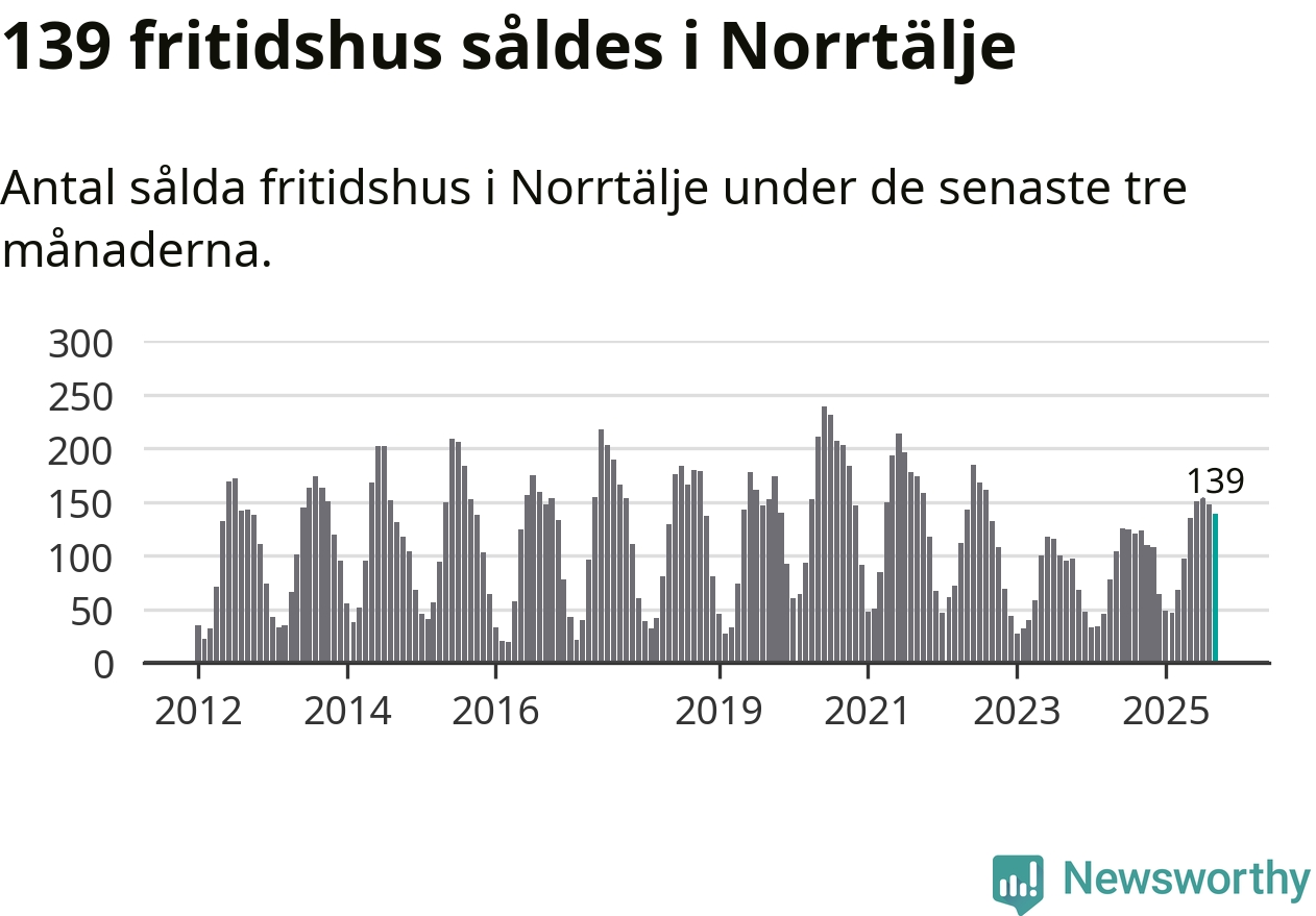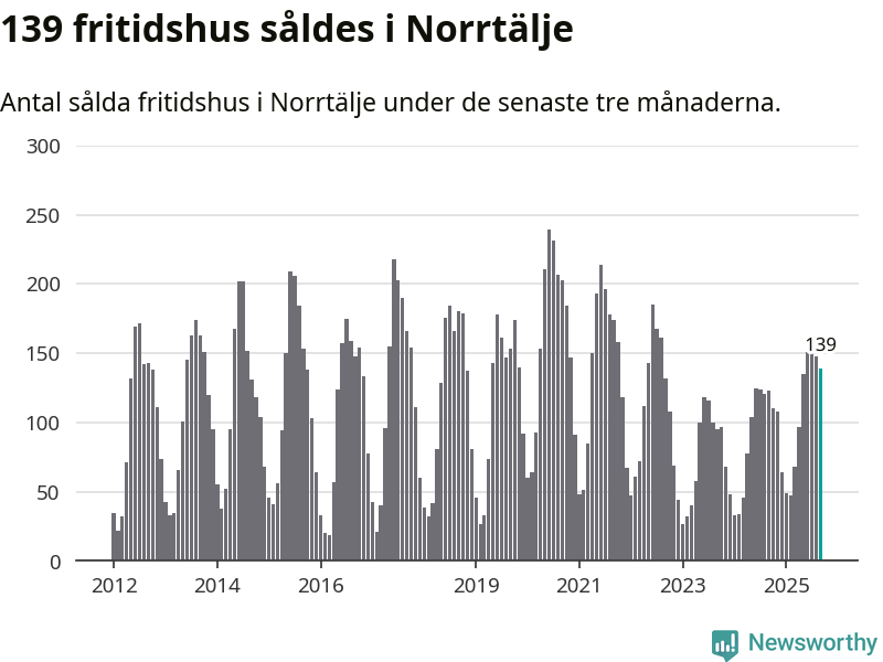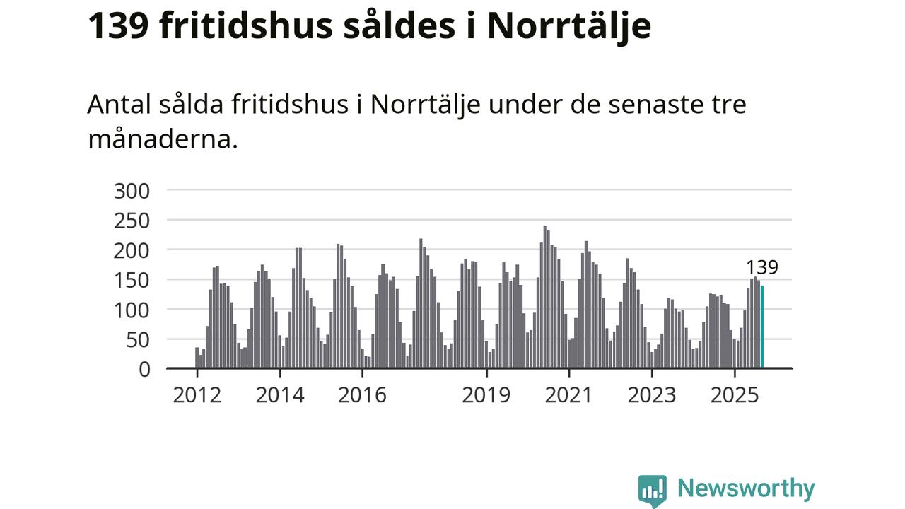 Sammanlagt såldes 139 fritidshus i Norrtälje kommun mellan juli och september till ett genomsnittligt pris på 2,4 miljoner kronor. I fjol gjordes 123 affärer vid den här tiden på året.