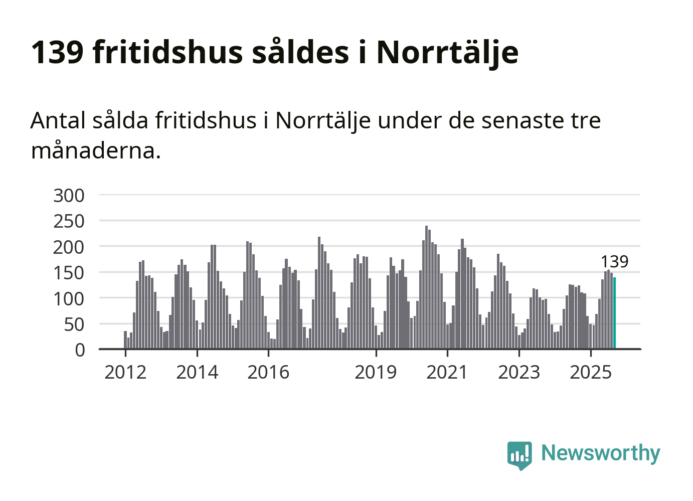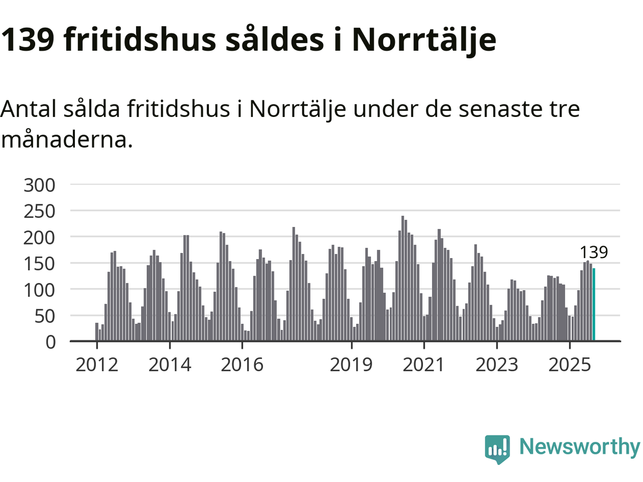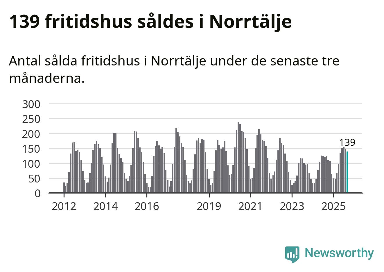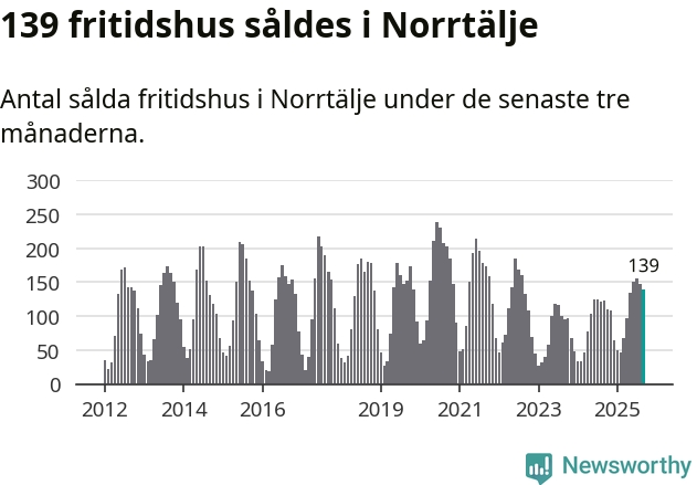 Sammanlagt såldes 139 fritidshus i Norrtälje kommun mellan juli och september till ett genomsnittligt pris på 2,4 miljoner kronor. I fjol gjordes 123 affärer vid den här tiden på året.