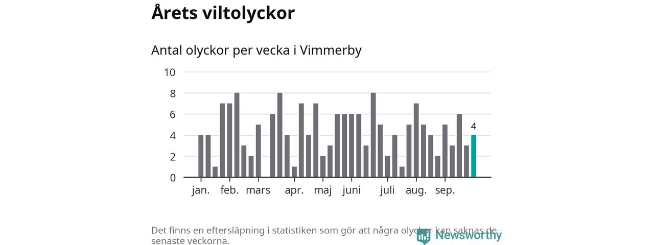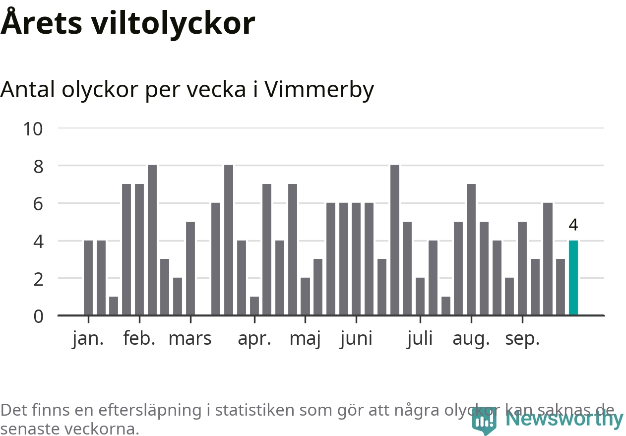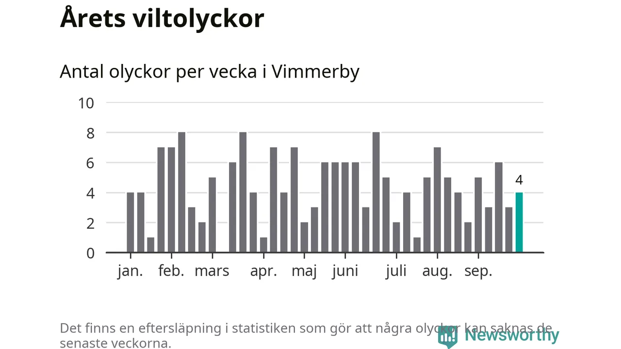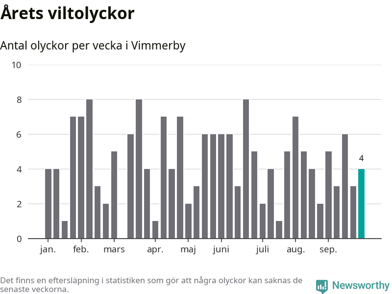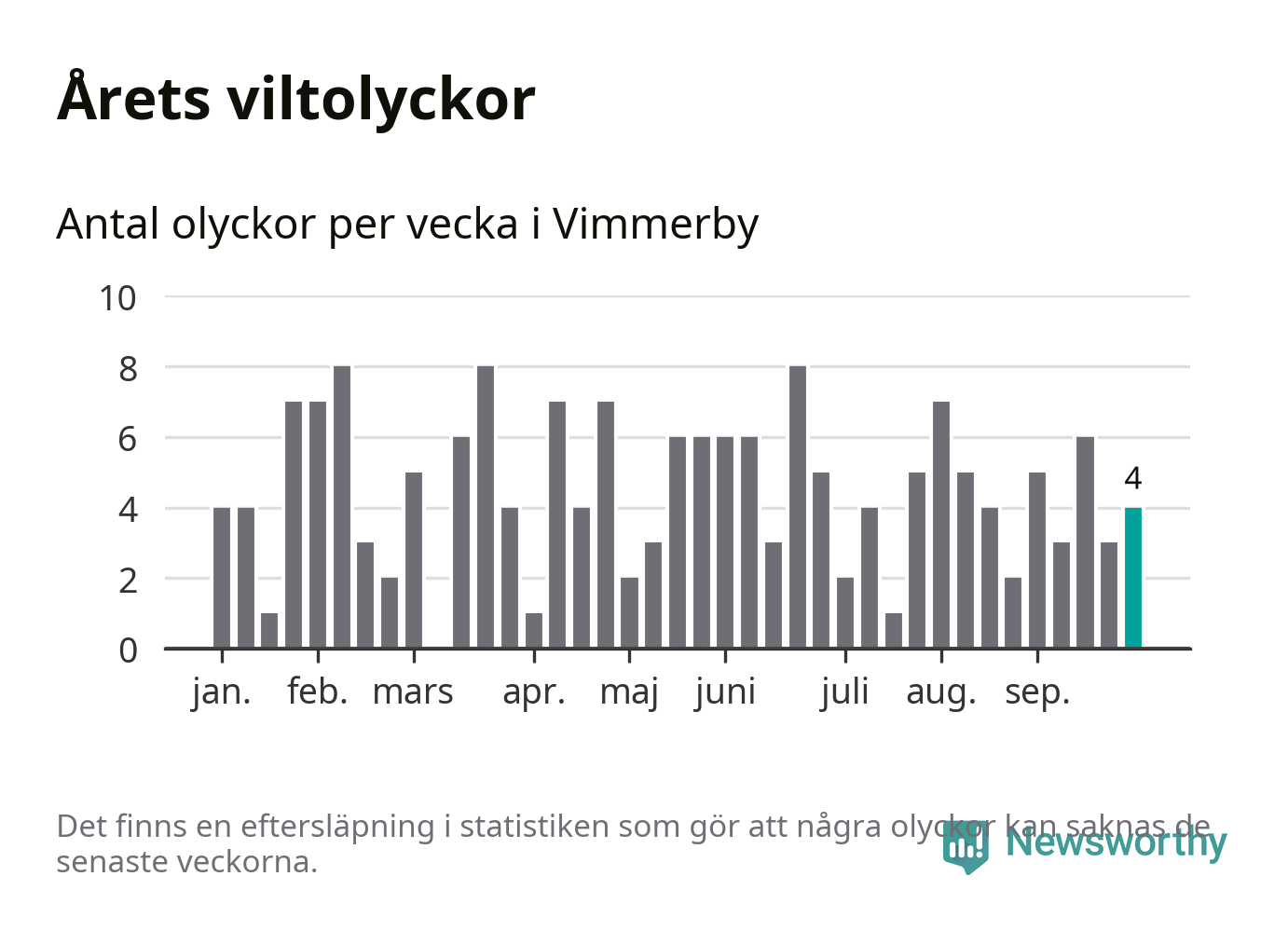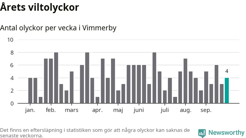 Hittills har fyra viltolyckor rapporterats in i Vimmerby kommun från vecka 40. Se listan här.