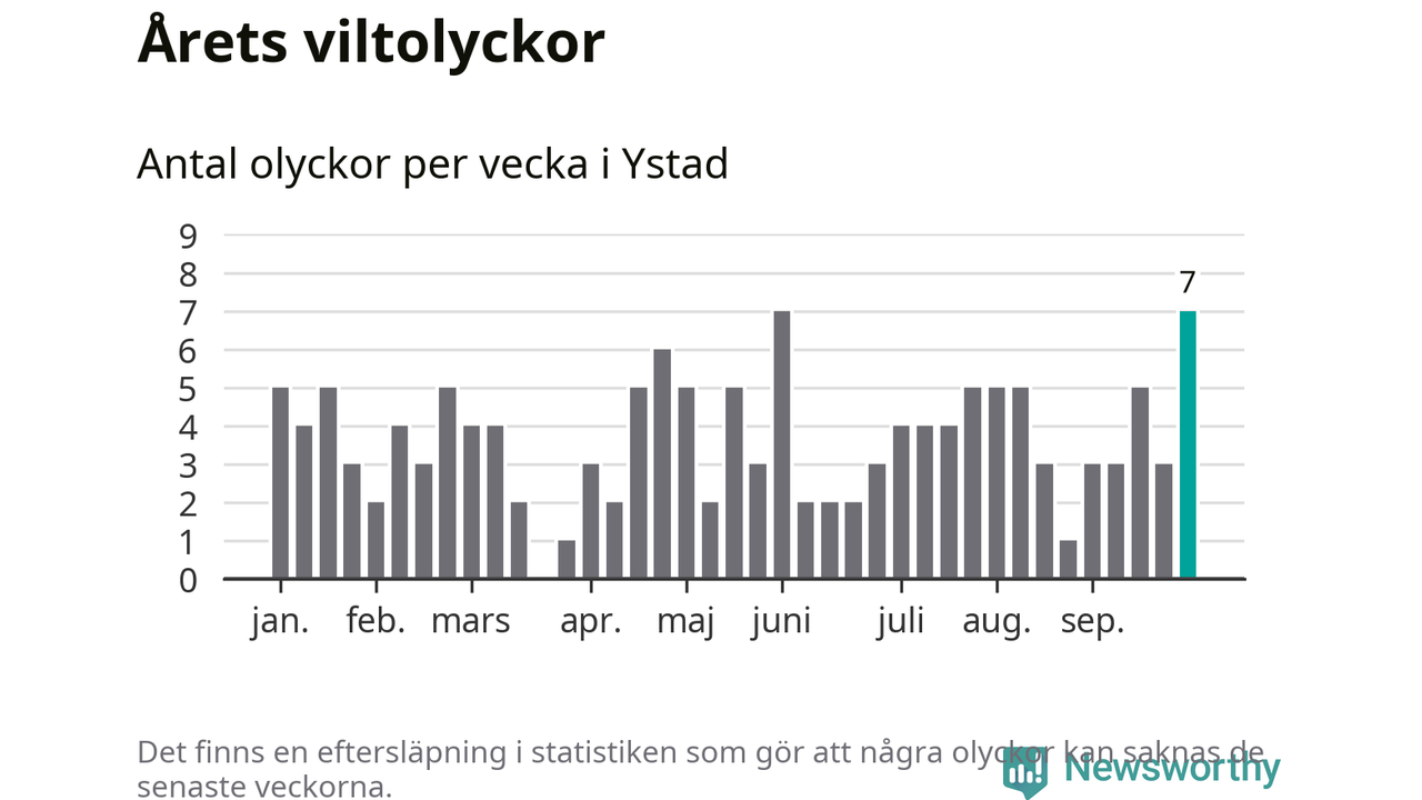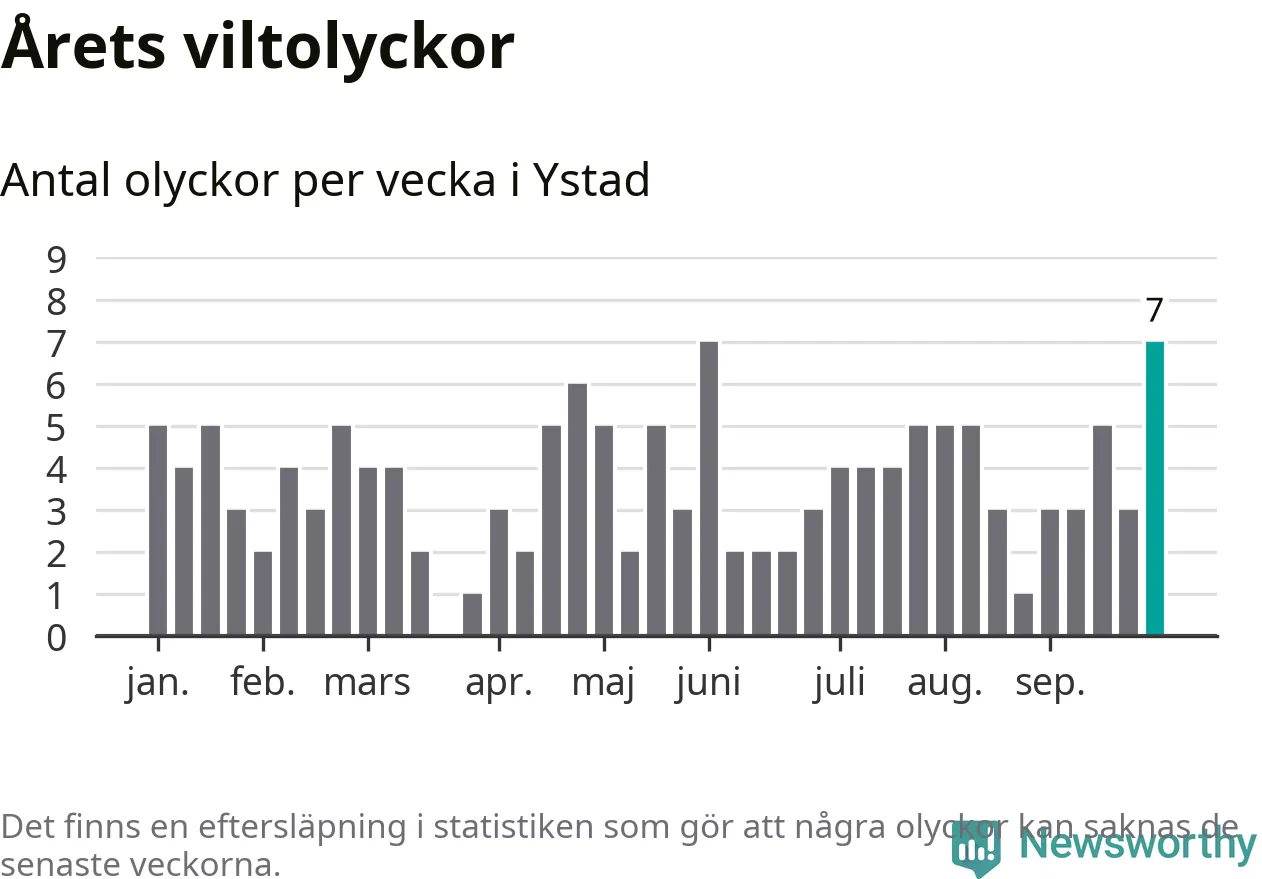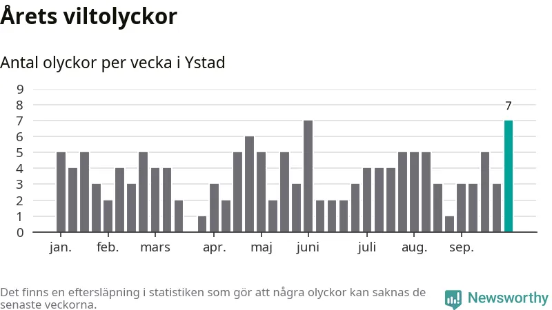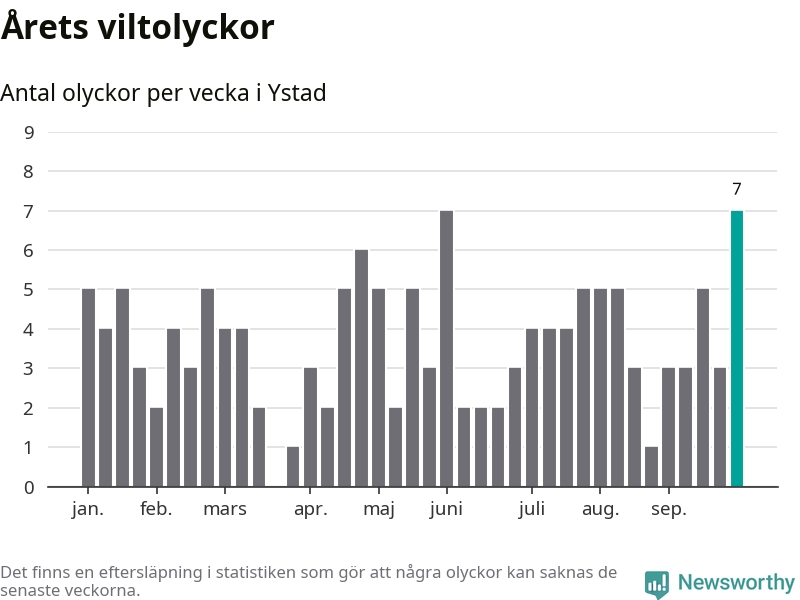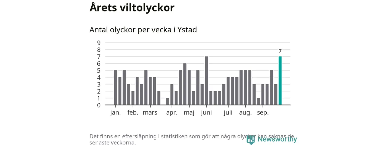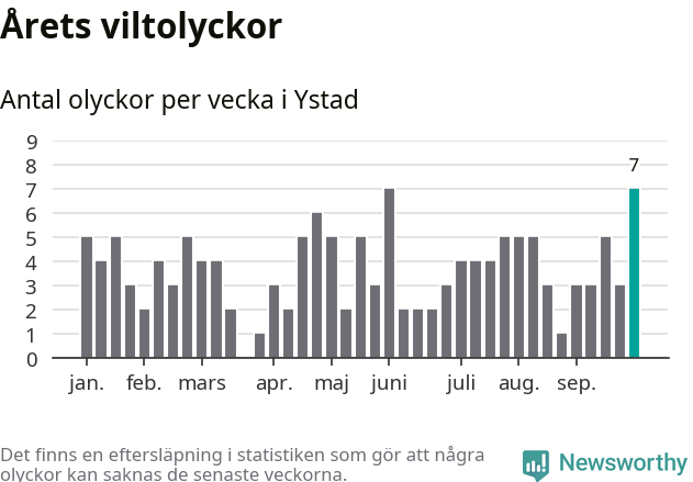 Hittills har sju viltolyckor rapporterats in i Ystads kommun från vecka 40. Se listan här.