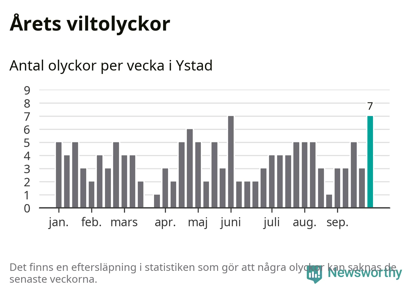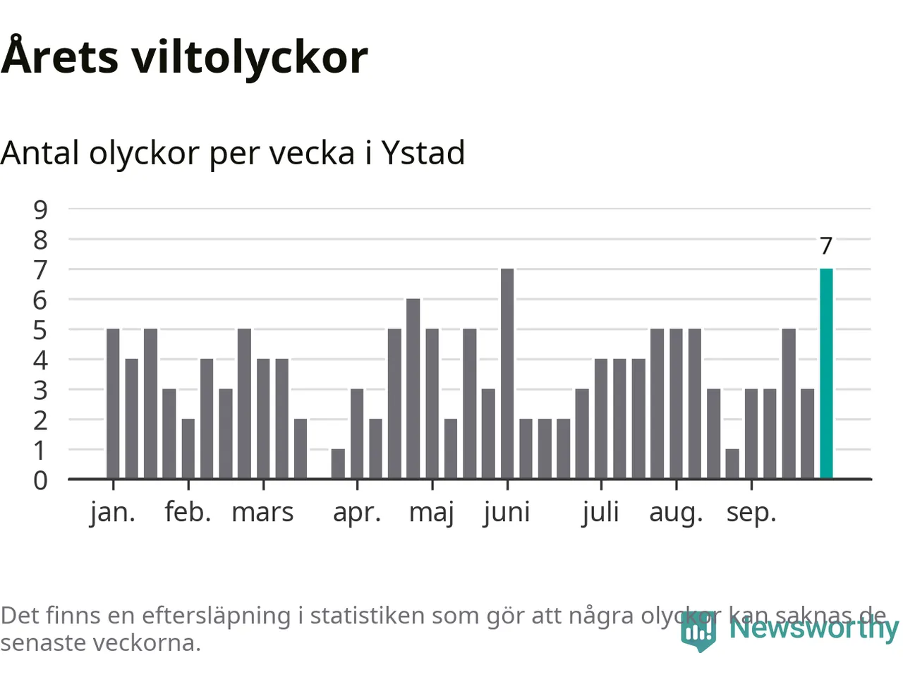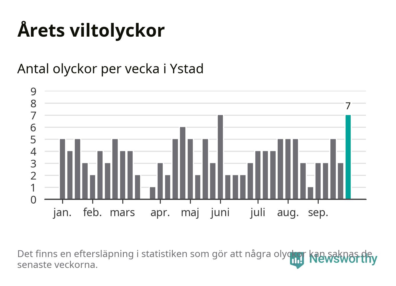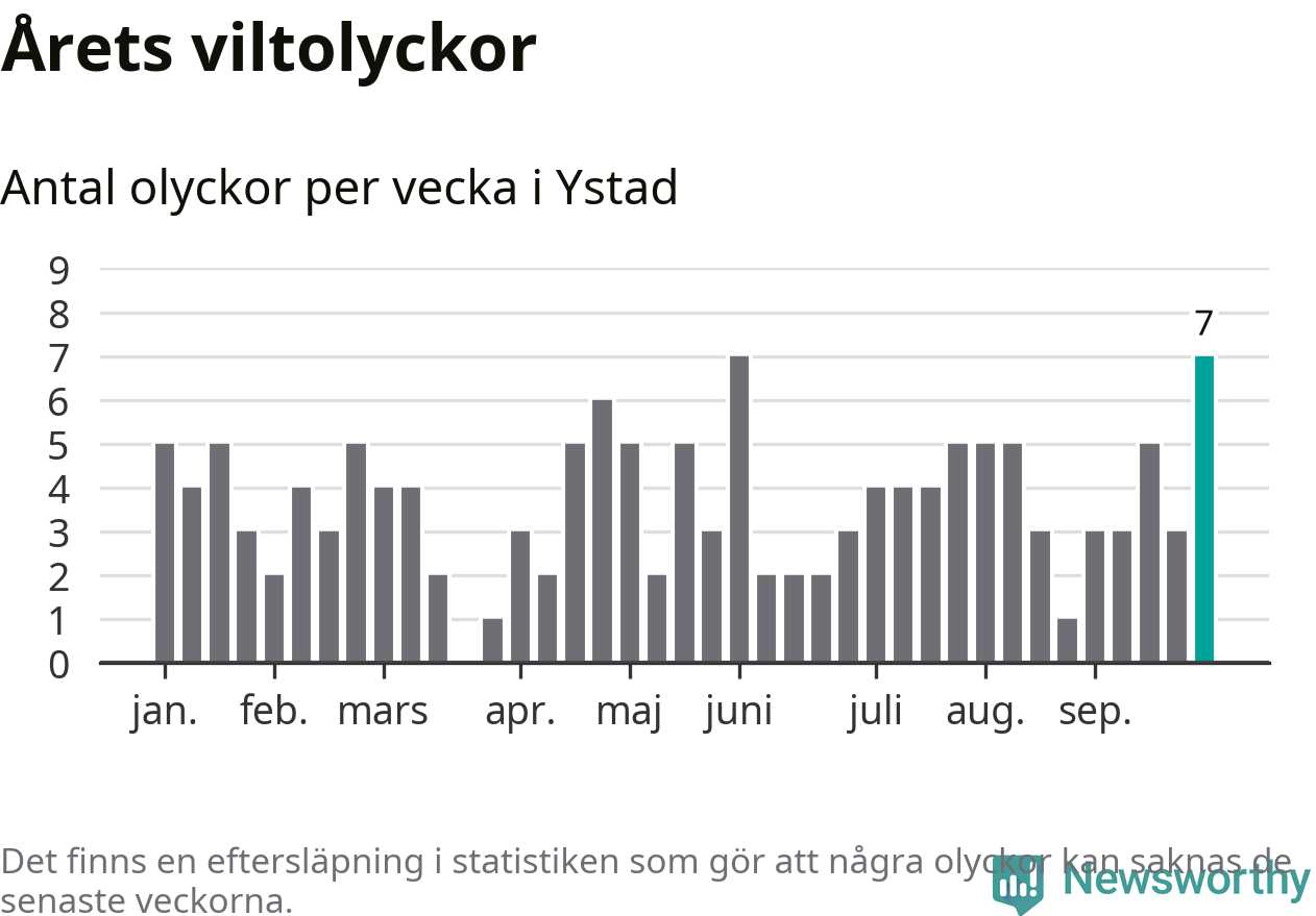 Hittills har sju viltolyckor rapporterats in i Ystads kommun från vecka 40. Se listan här.