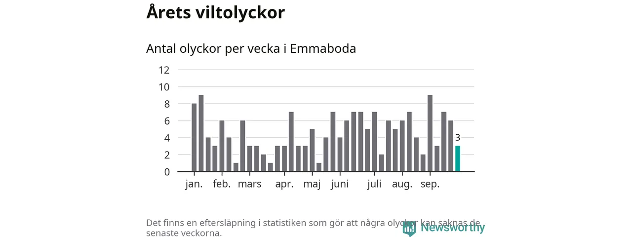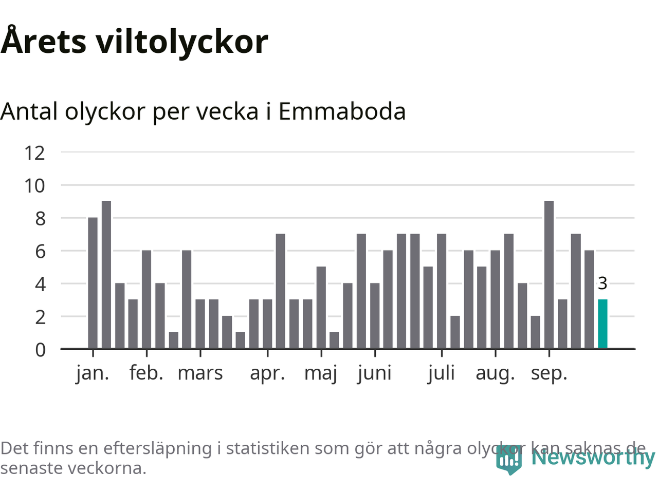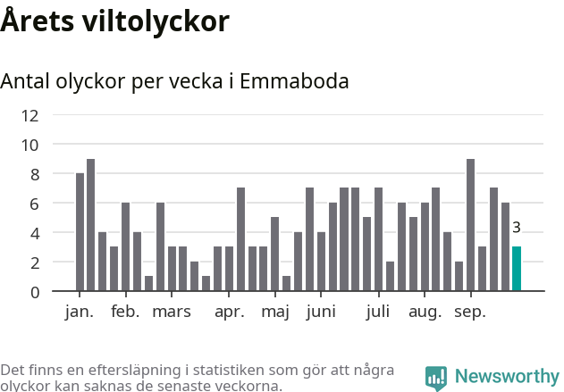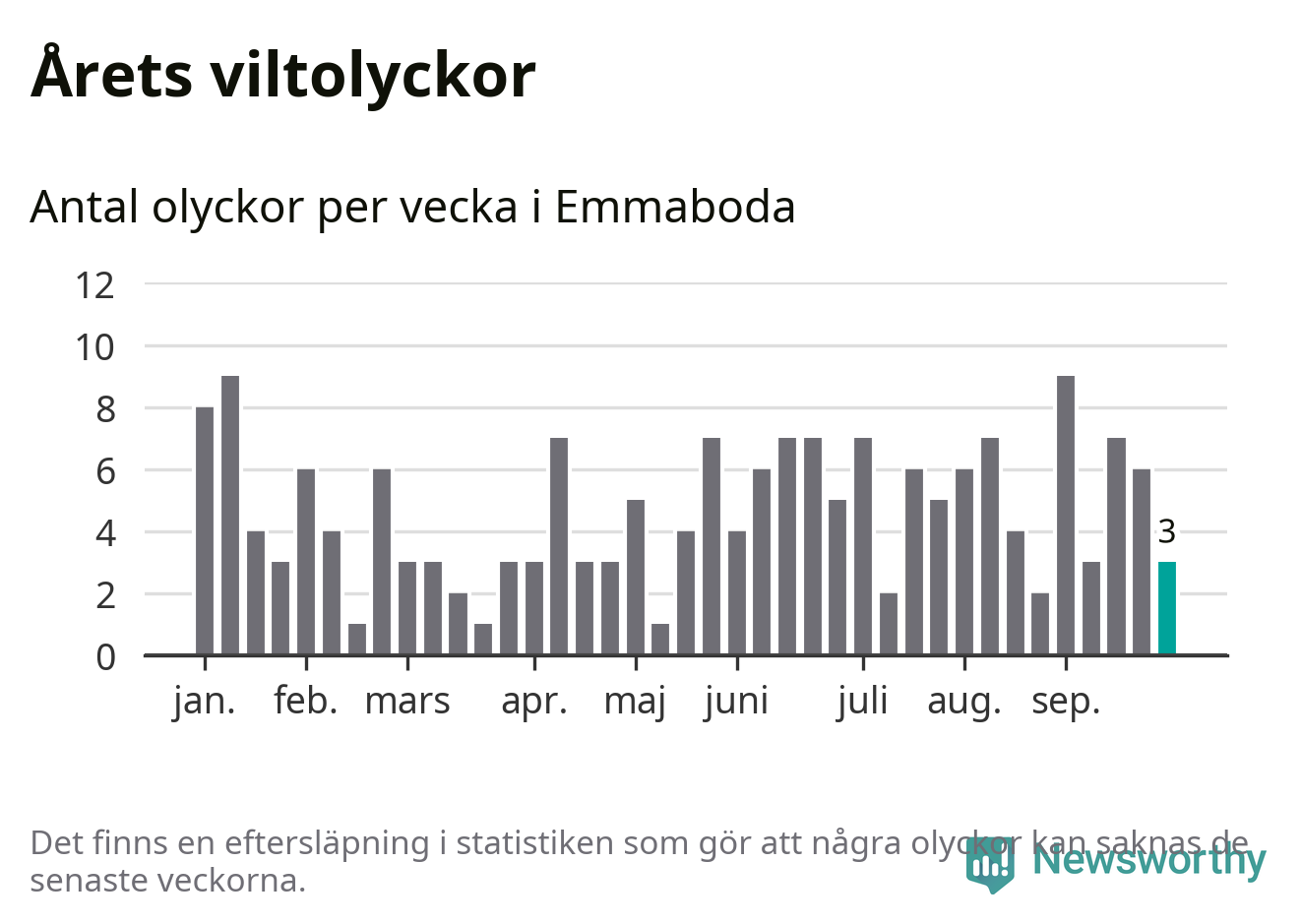 Hittills har tre viltolyckor rapporterats in i Emmaboda kommun från vecka 40. Se listan här.