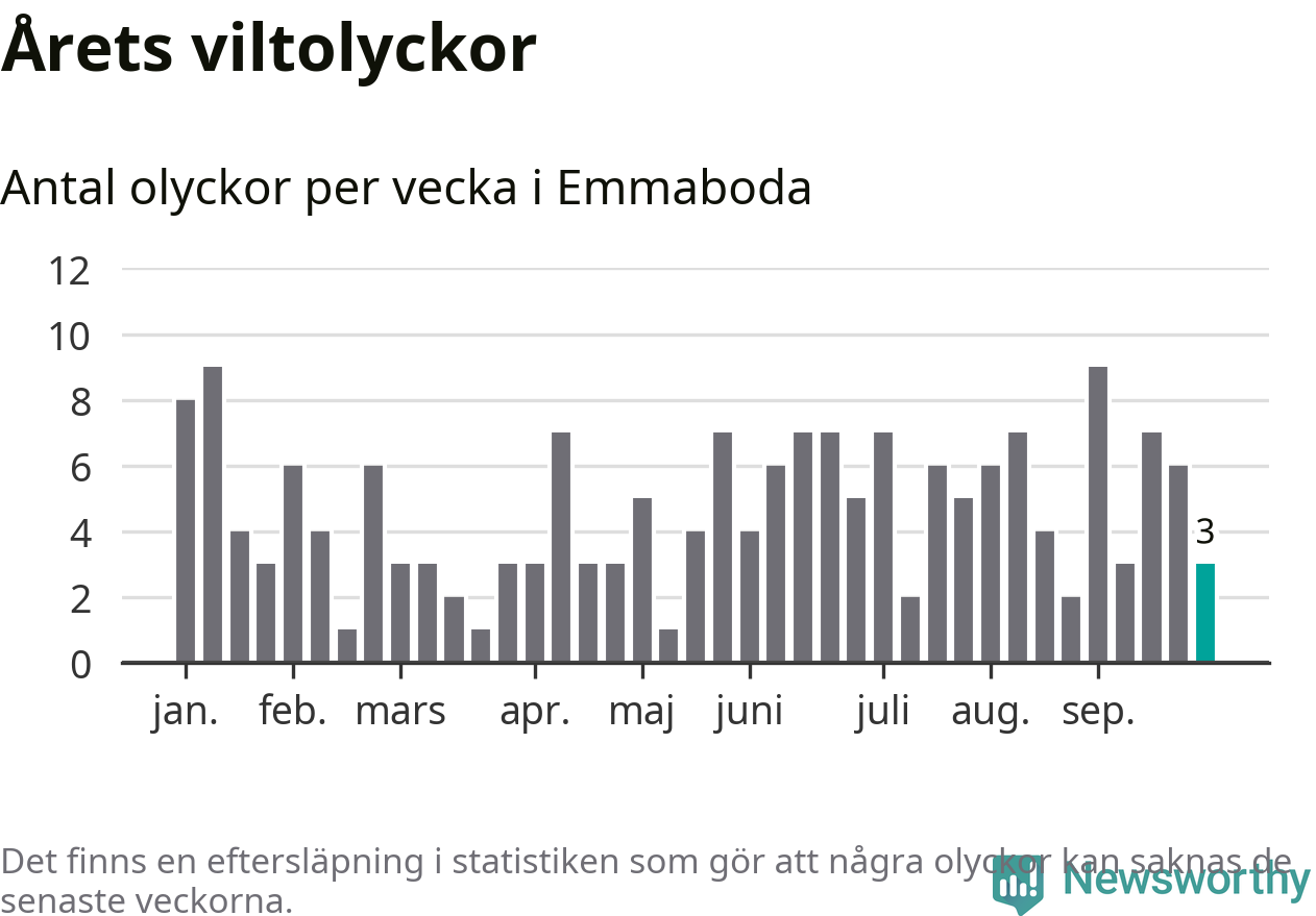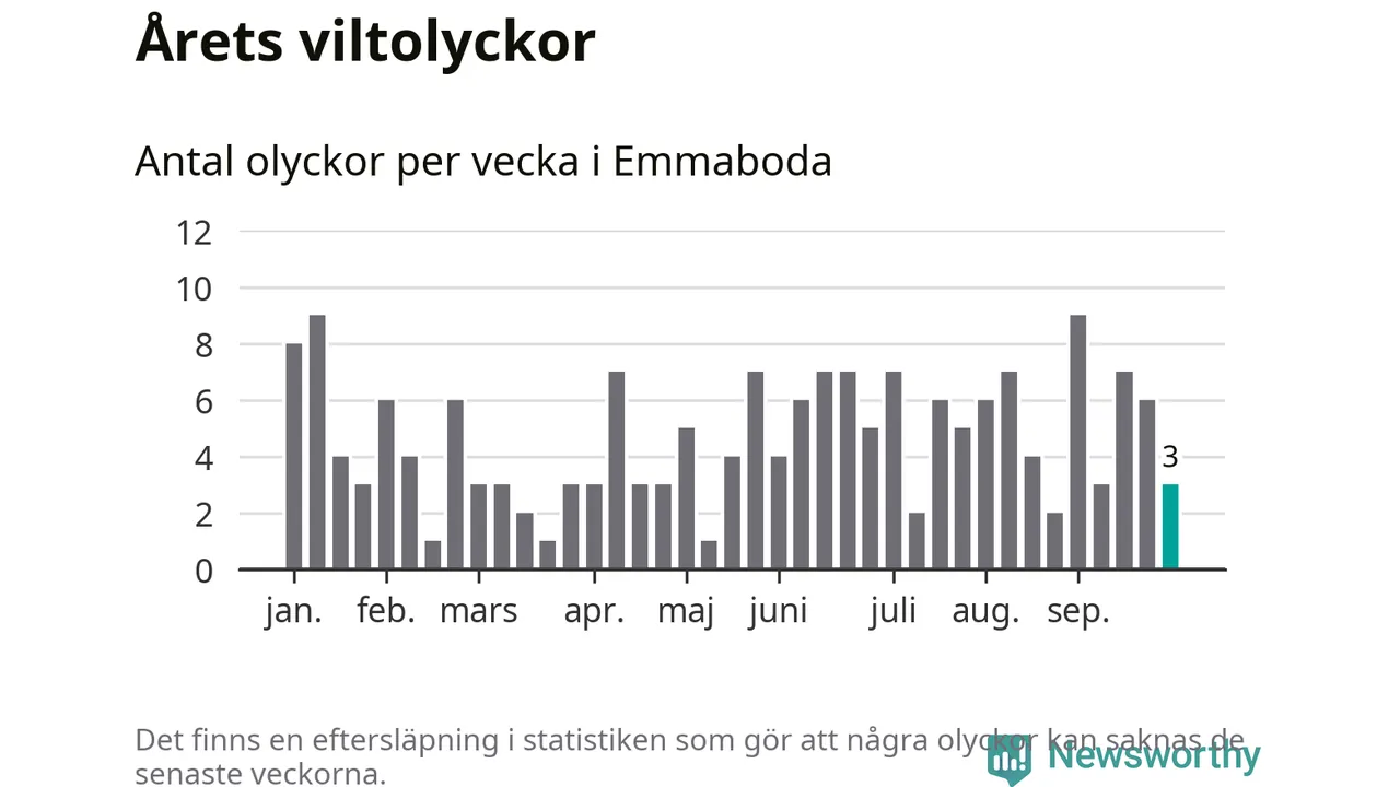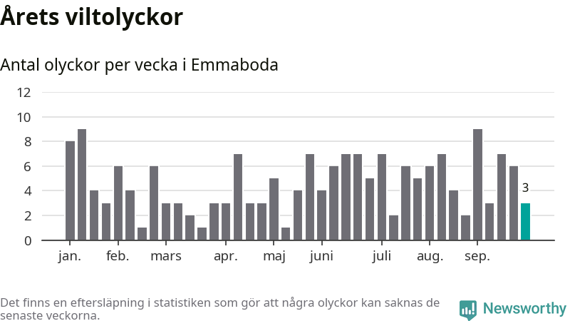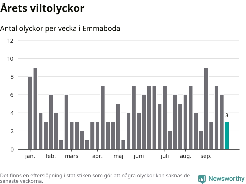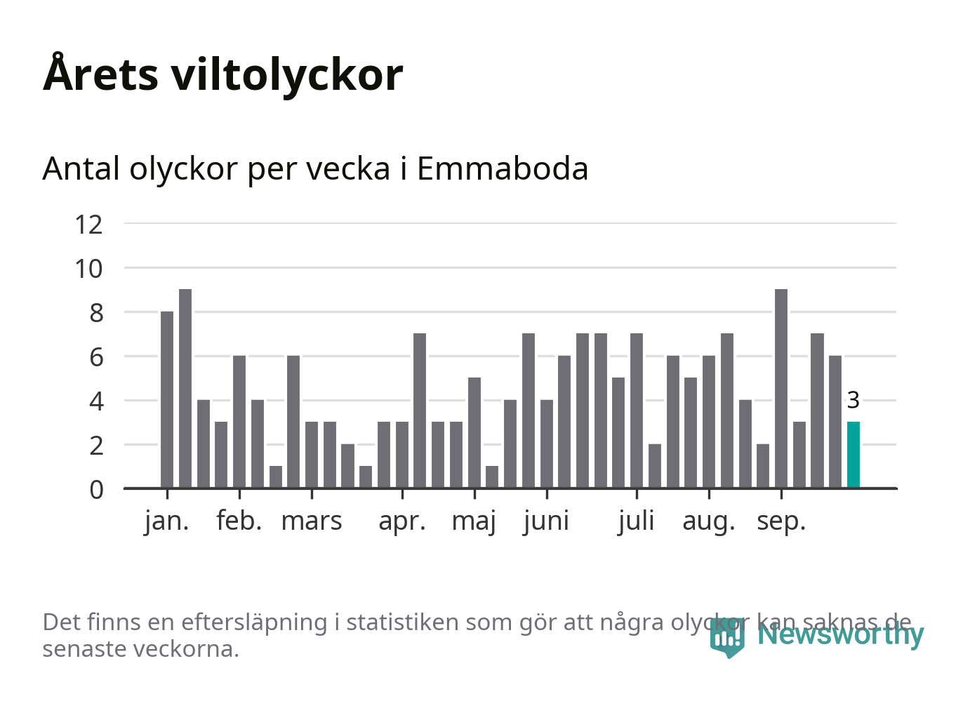 Hittills har tre viltolyckor rapporterats in i Emmaboda kommun från vecka 40. Se listan här.