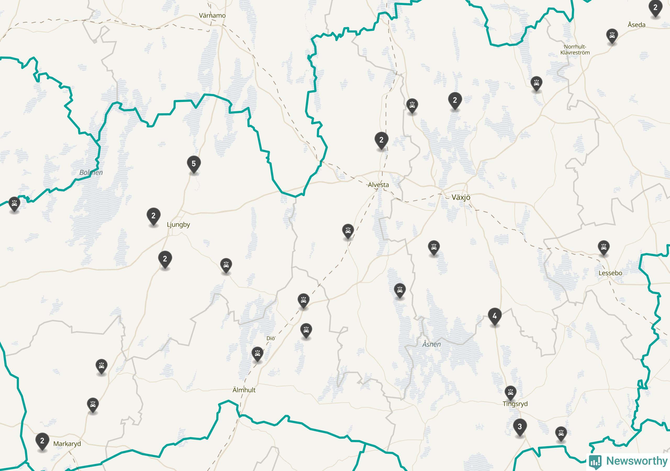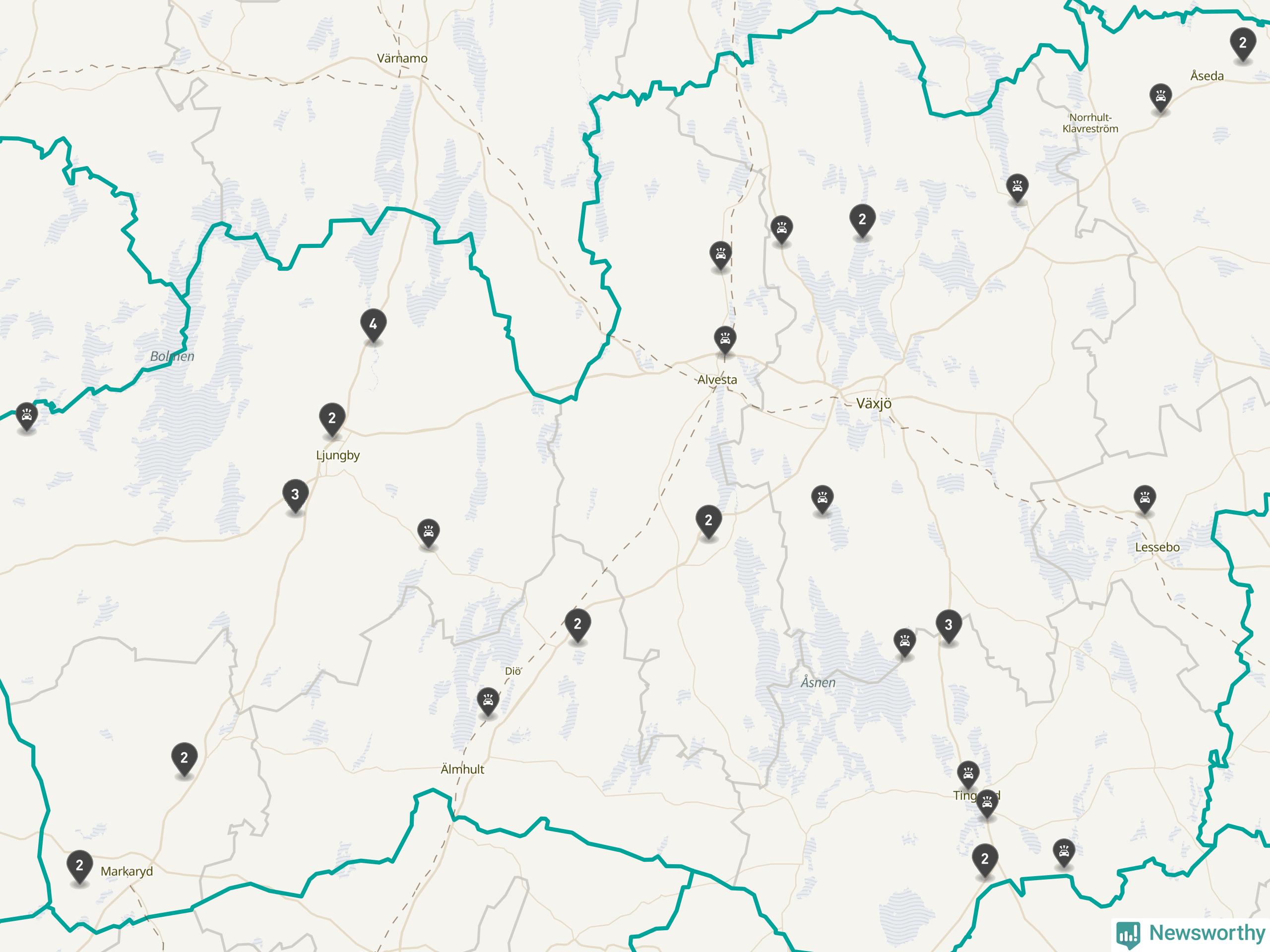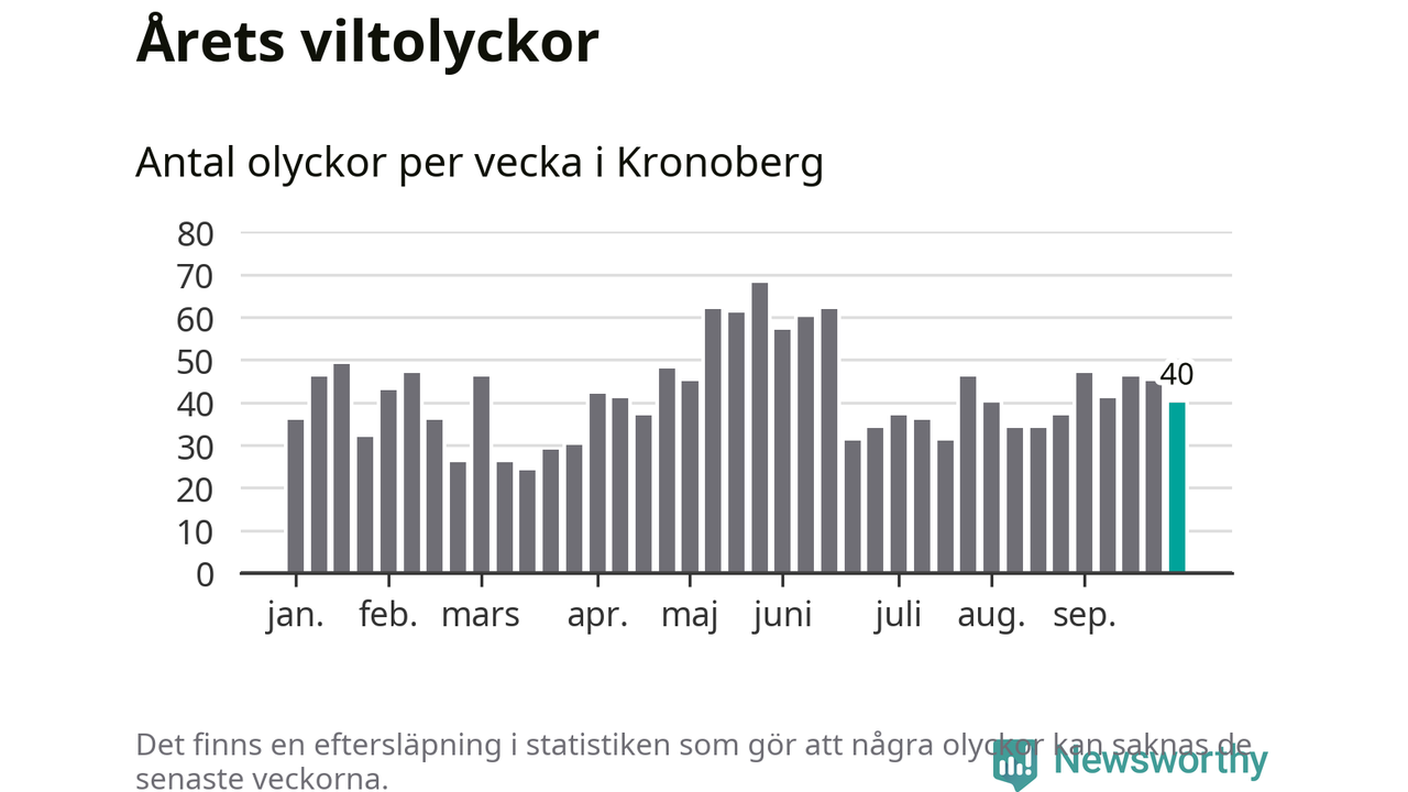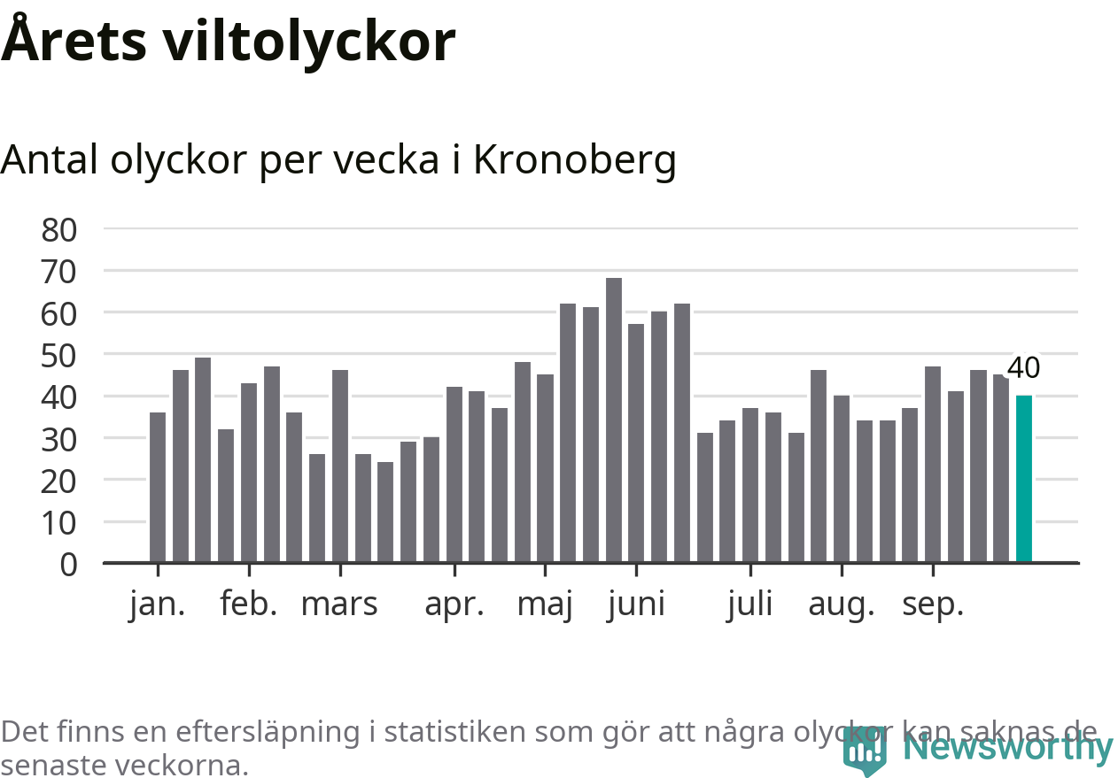 Hittills har 40 viltolyckor rapporterats in i Kronobergs län från vecka 40. Se listan här.