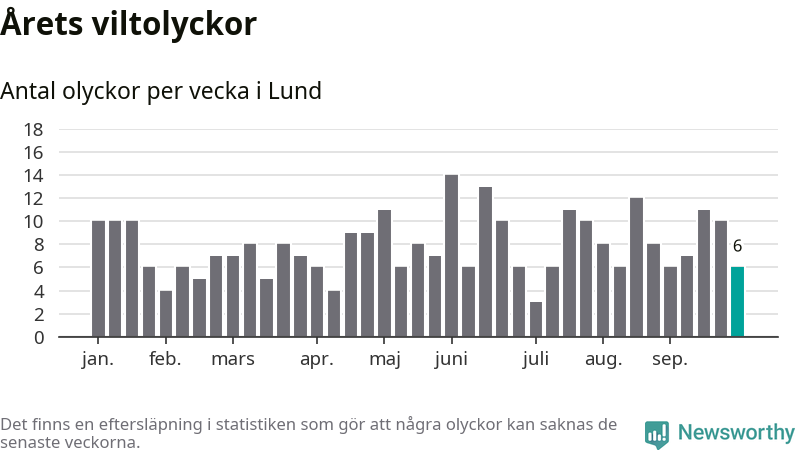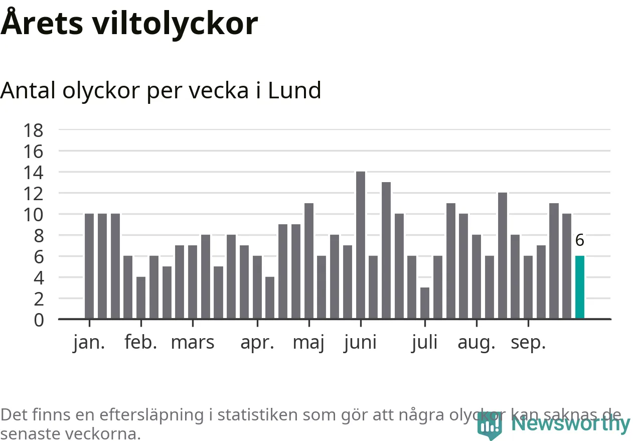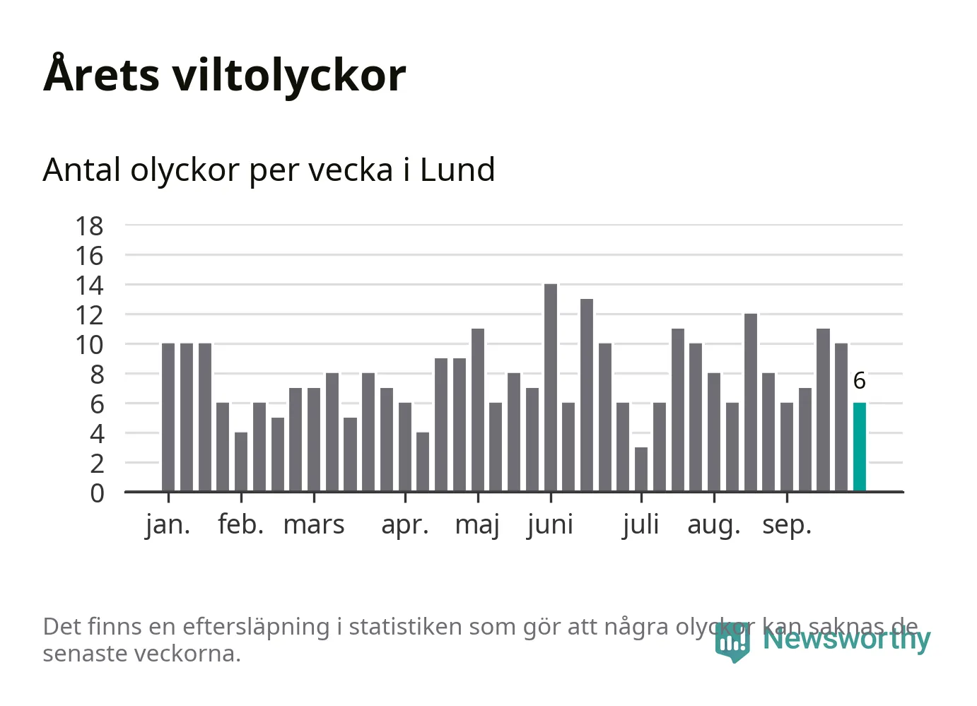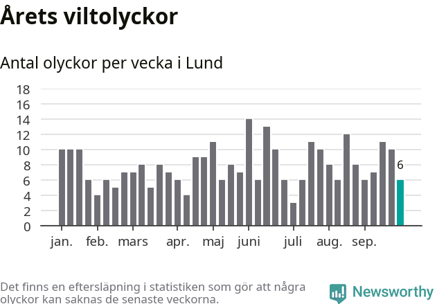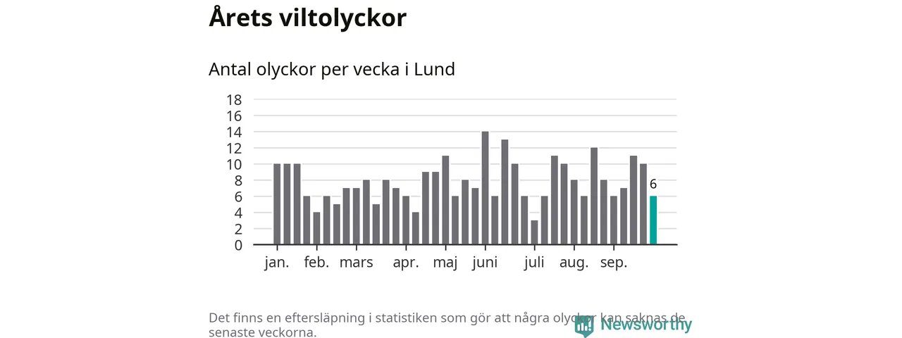Hittills har sex viltolyckor rapporterats in i Lunds kommun från vecka 40. Se listan här.