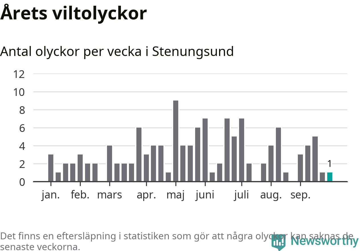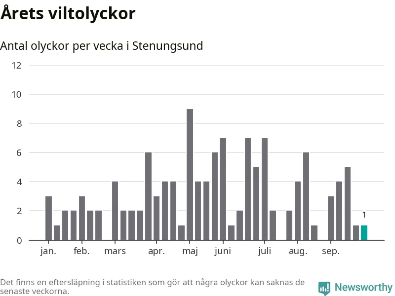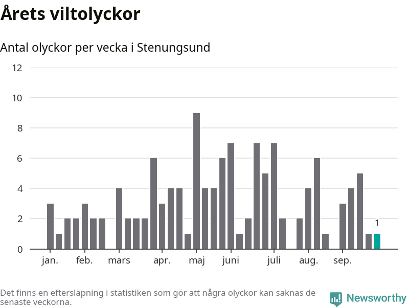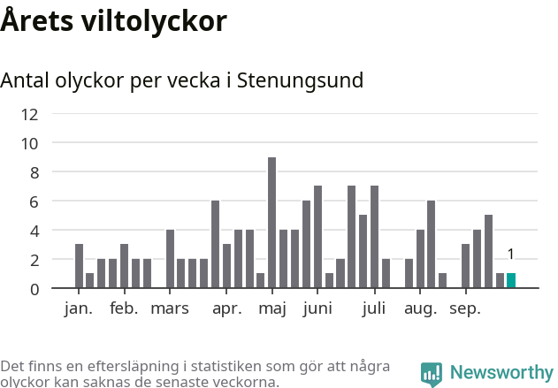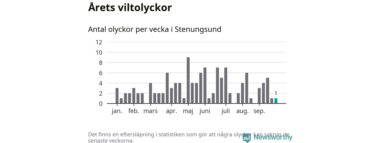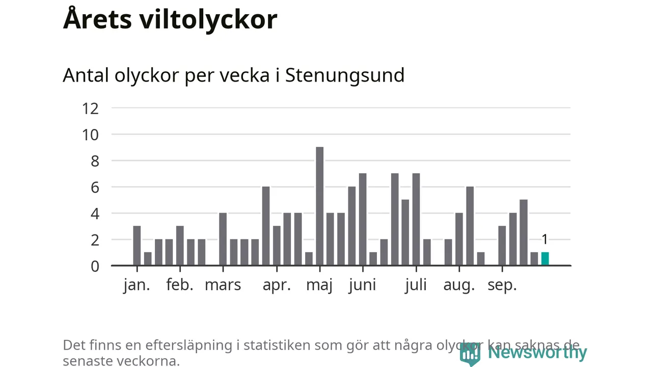 Från förra veckan (vecka 40) har hittills en viltolycka rapporterats in i Stenungsunds kommun.