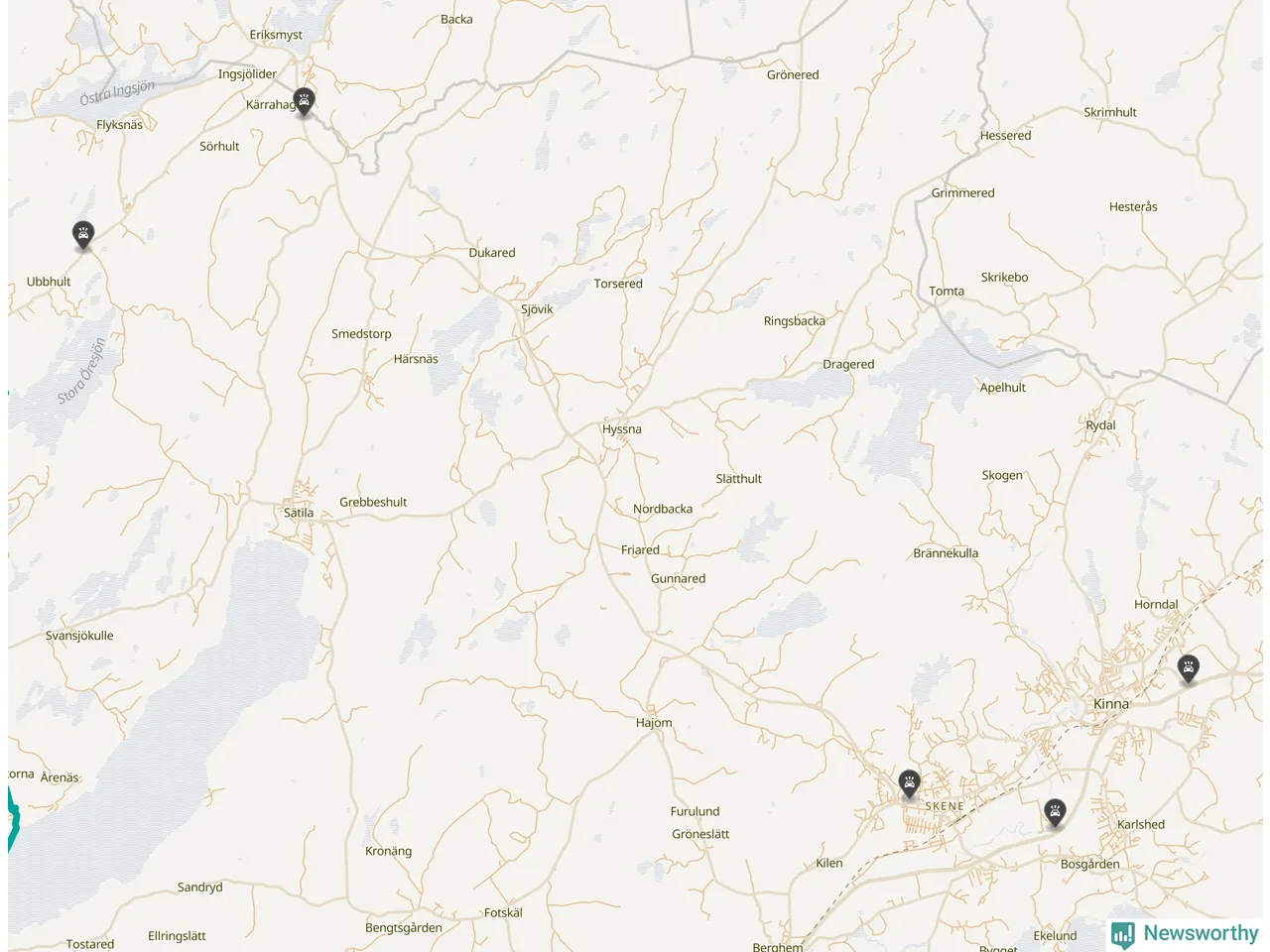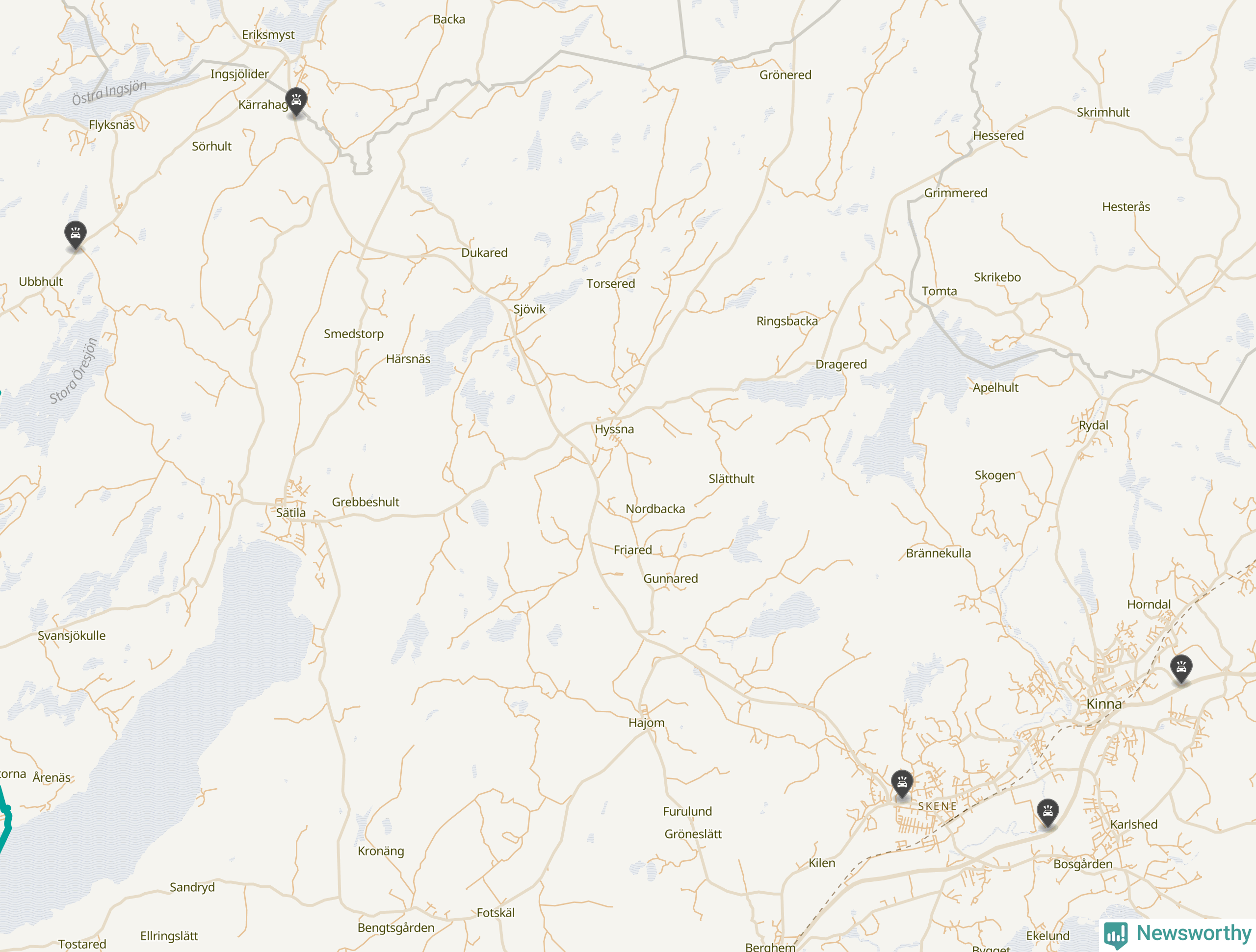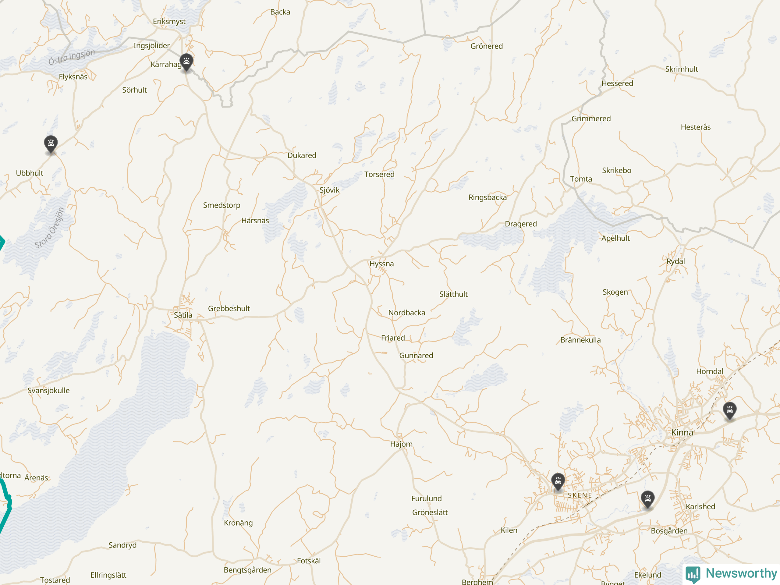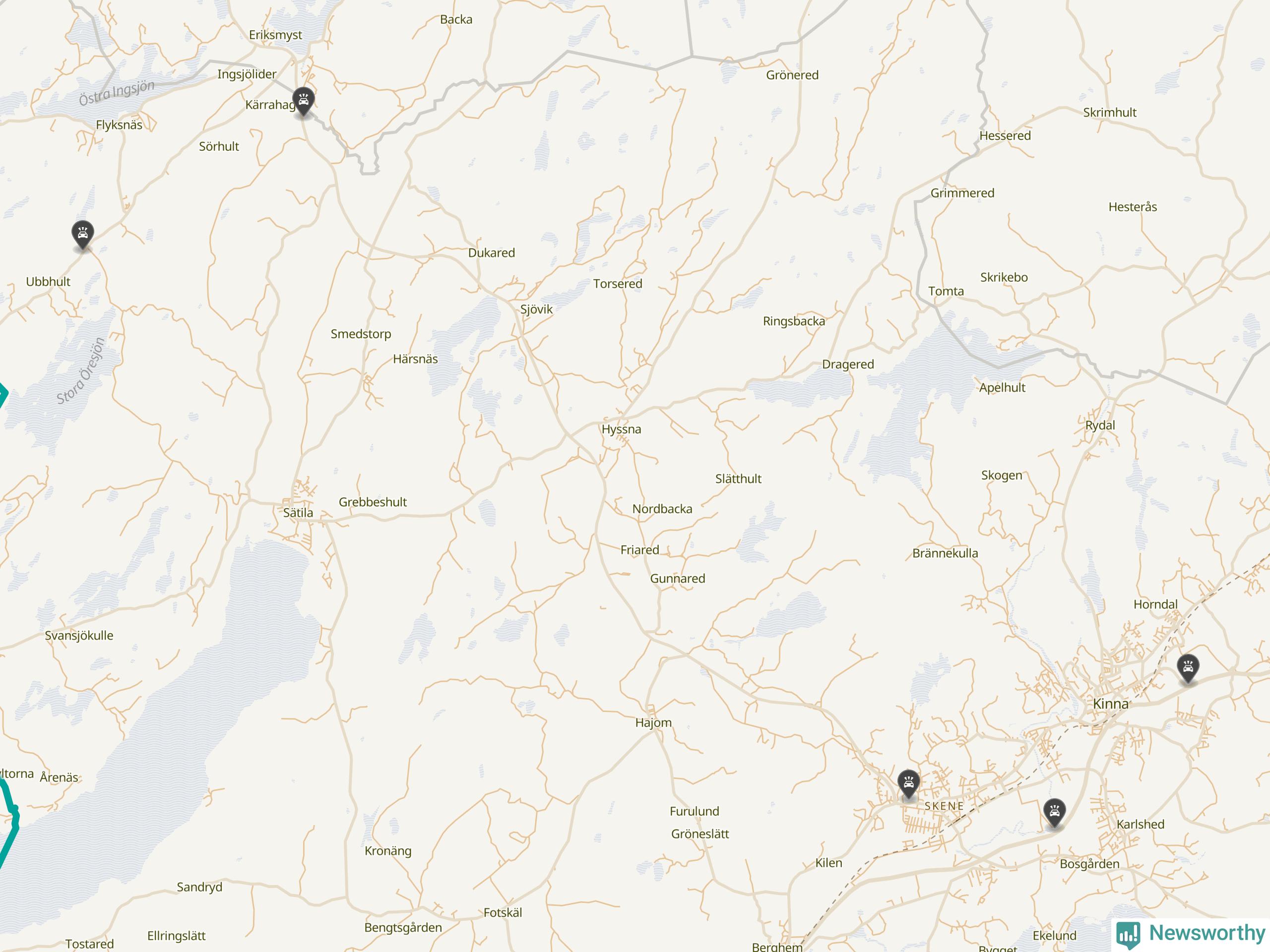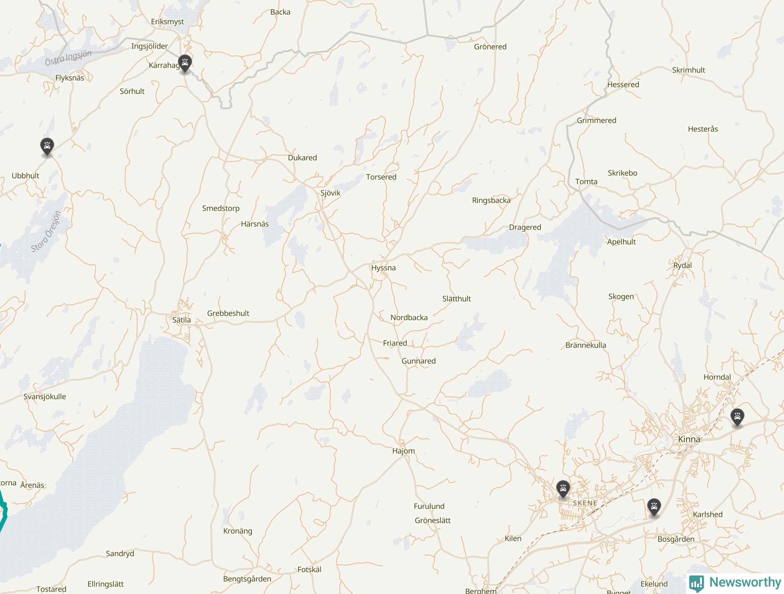 Karta över viltolyckor i Marks kommun
