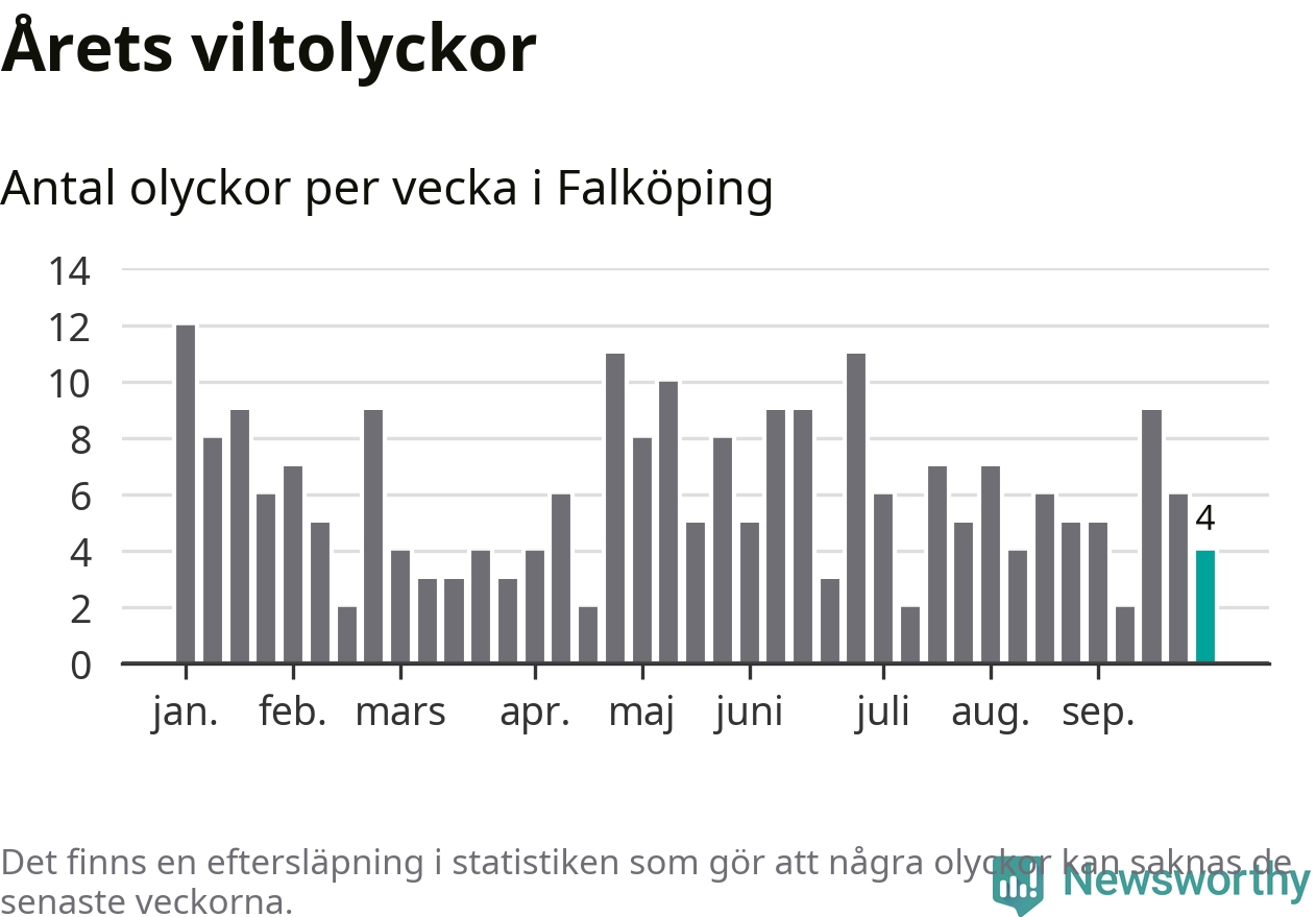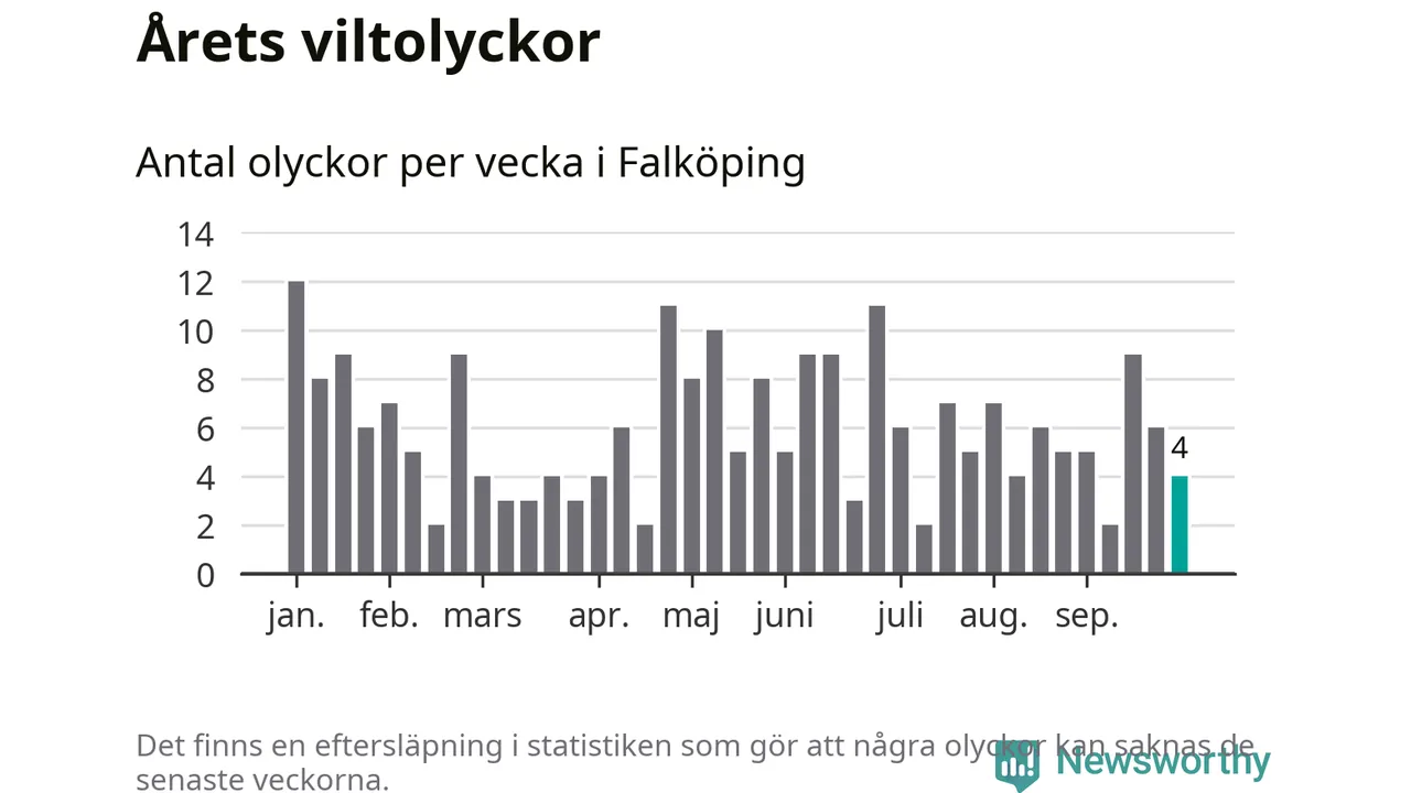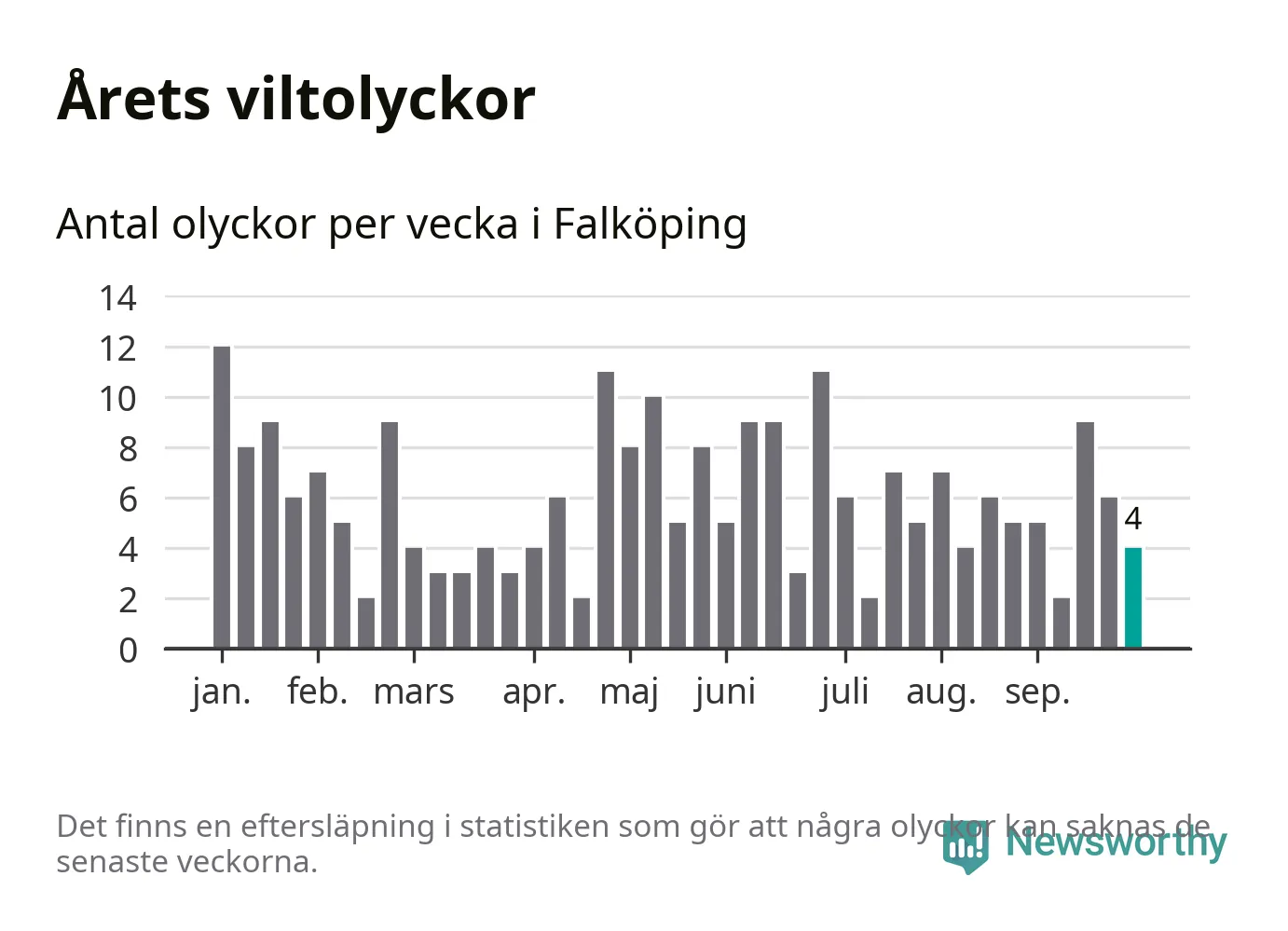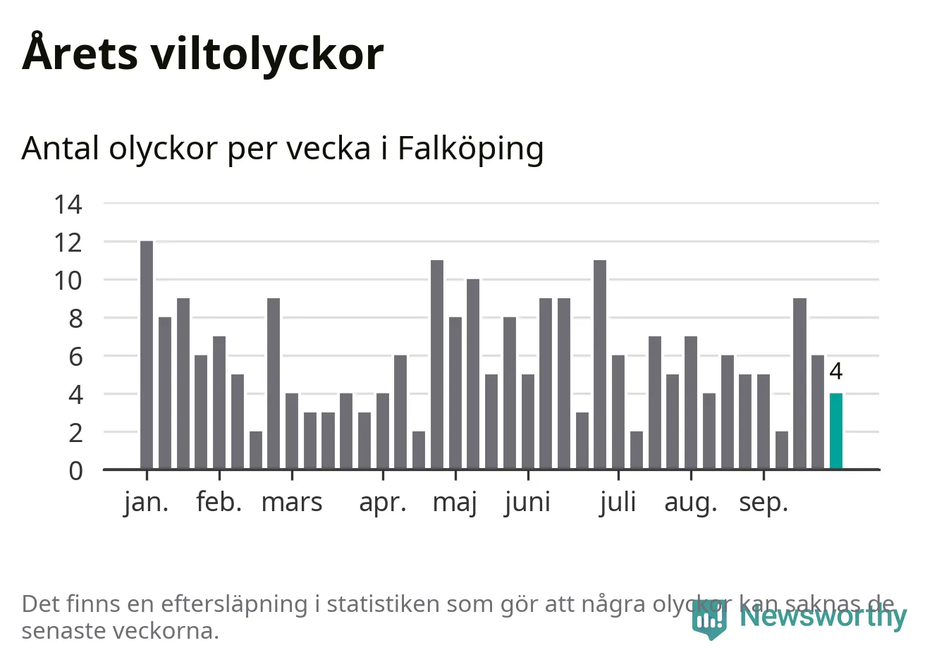 Hittills har fyra viltolyckor rapporterats in i Falköpings kommun från vecka 40. Se listan här.