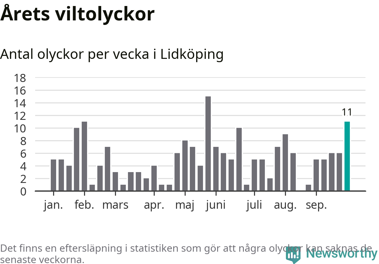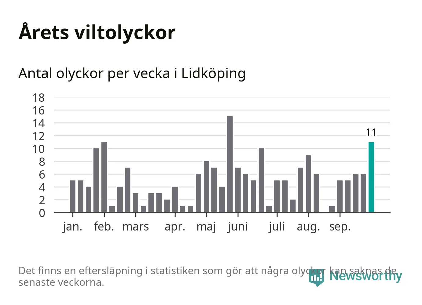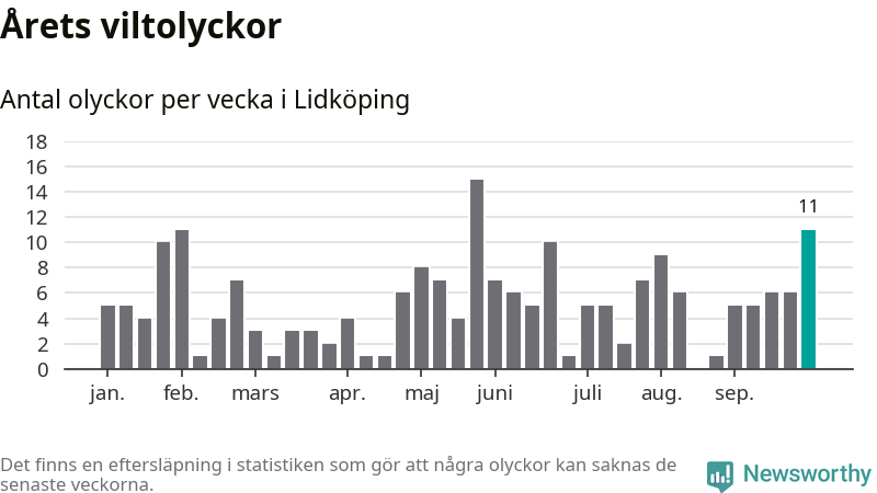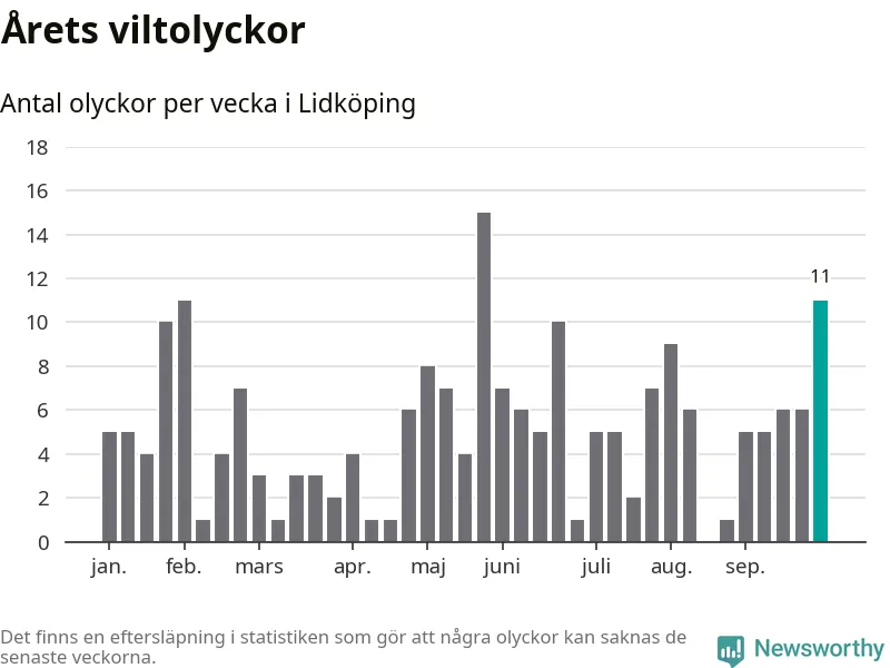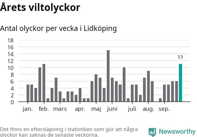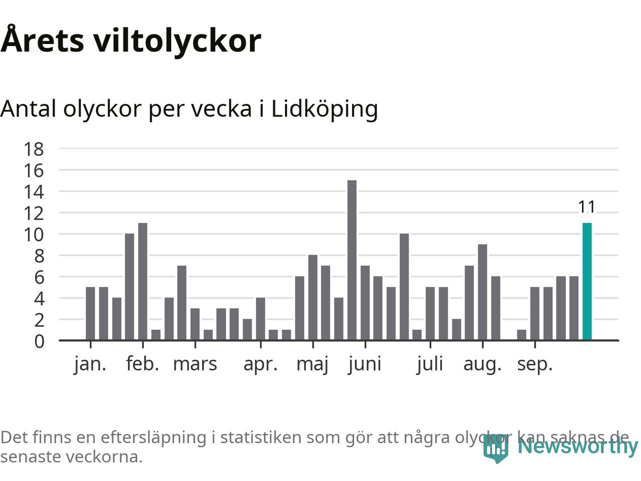 Elva olyckor på en enda vecka är också ovanligt många. Bara sex gånger tidigare sedan 2015 har det skett