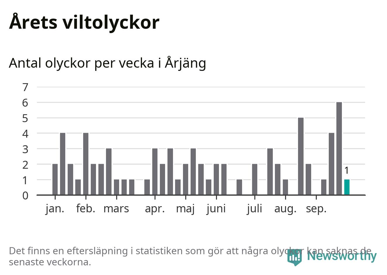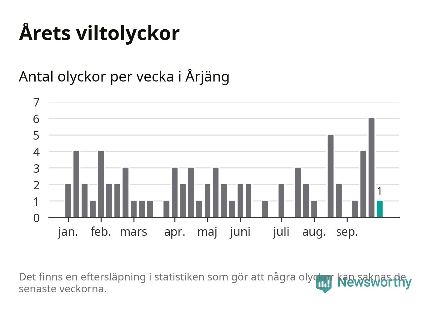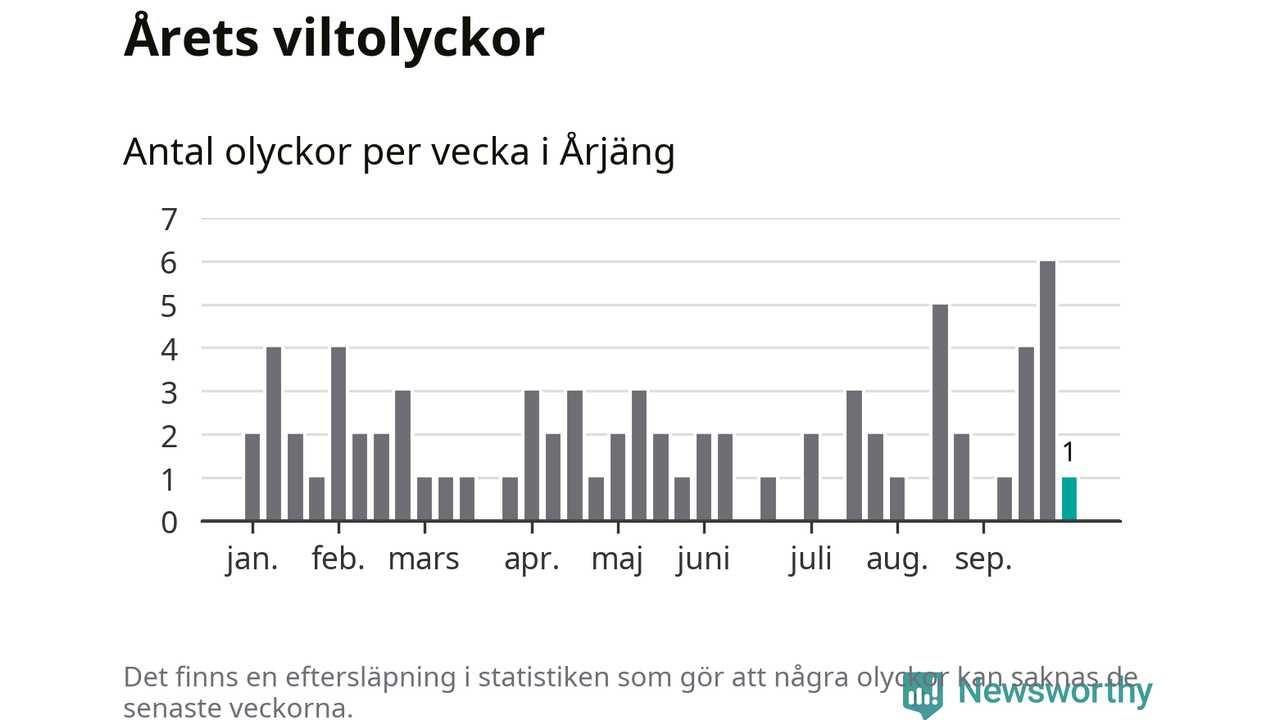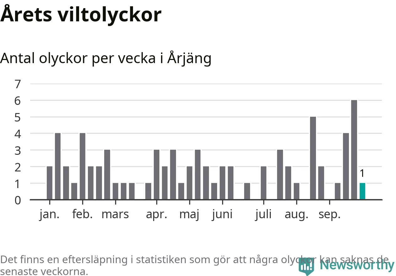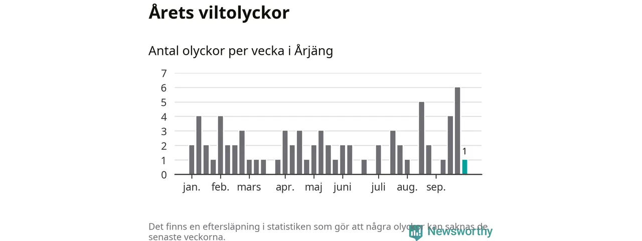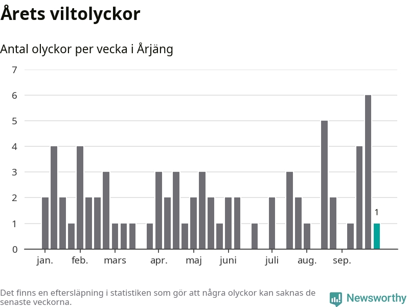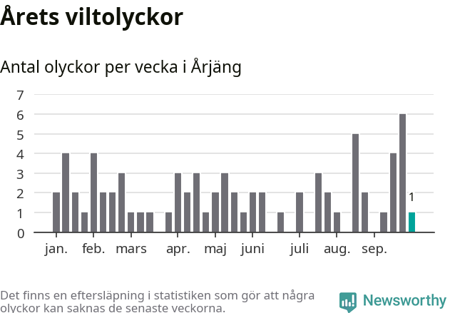 Från förra veckan (vecka 40) har hittills en viltolycka rapporterats in i Årjängs kommun.
