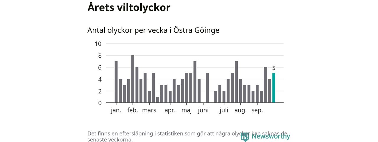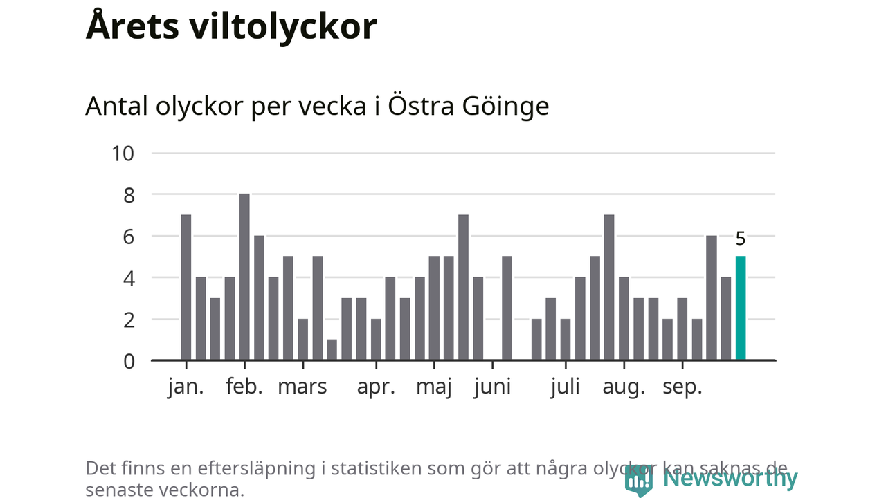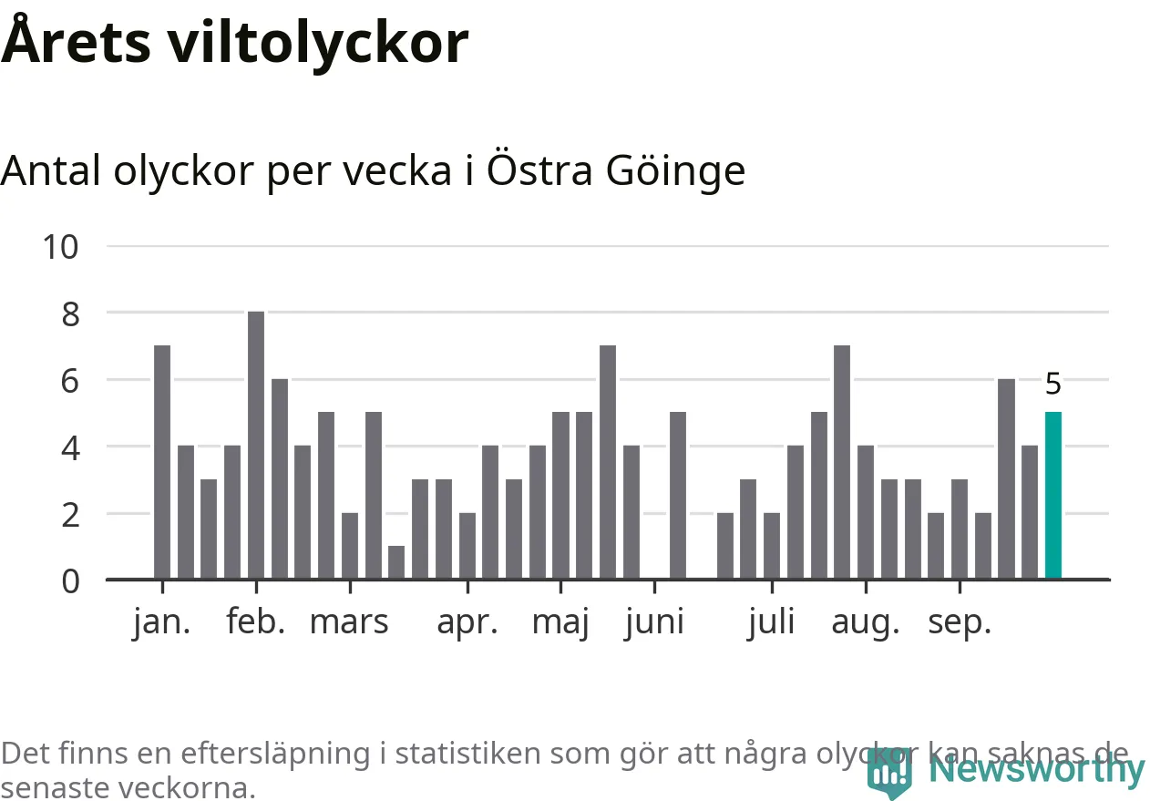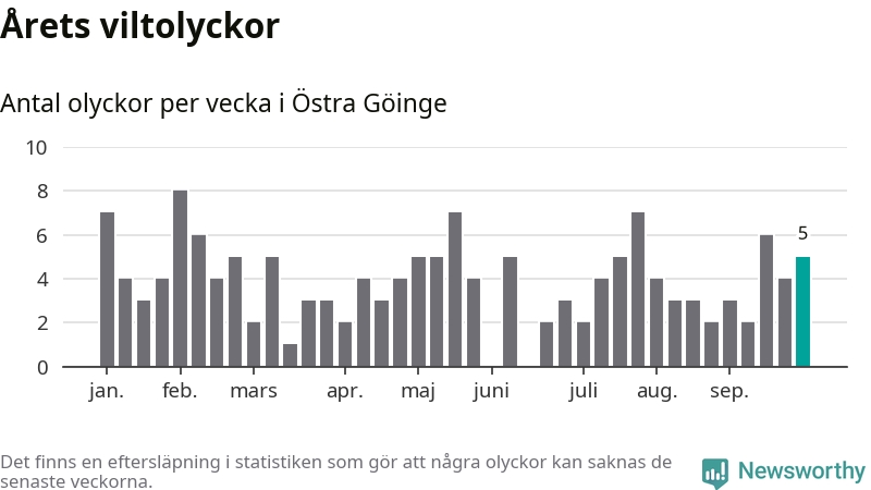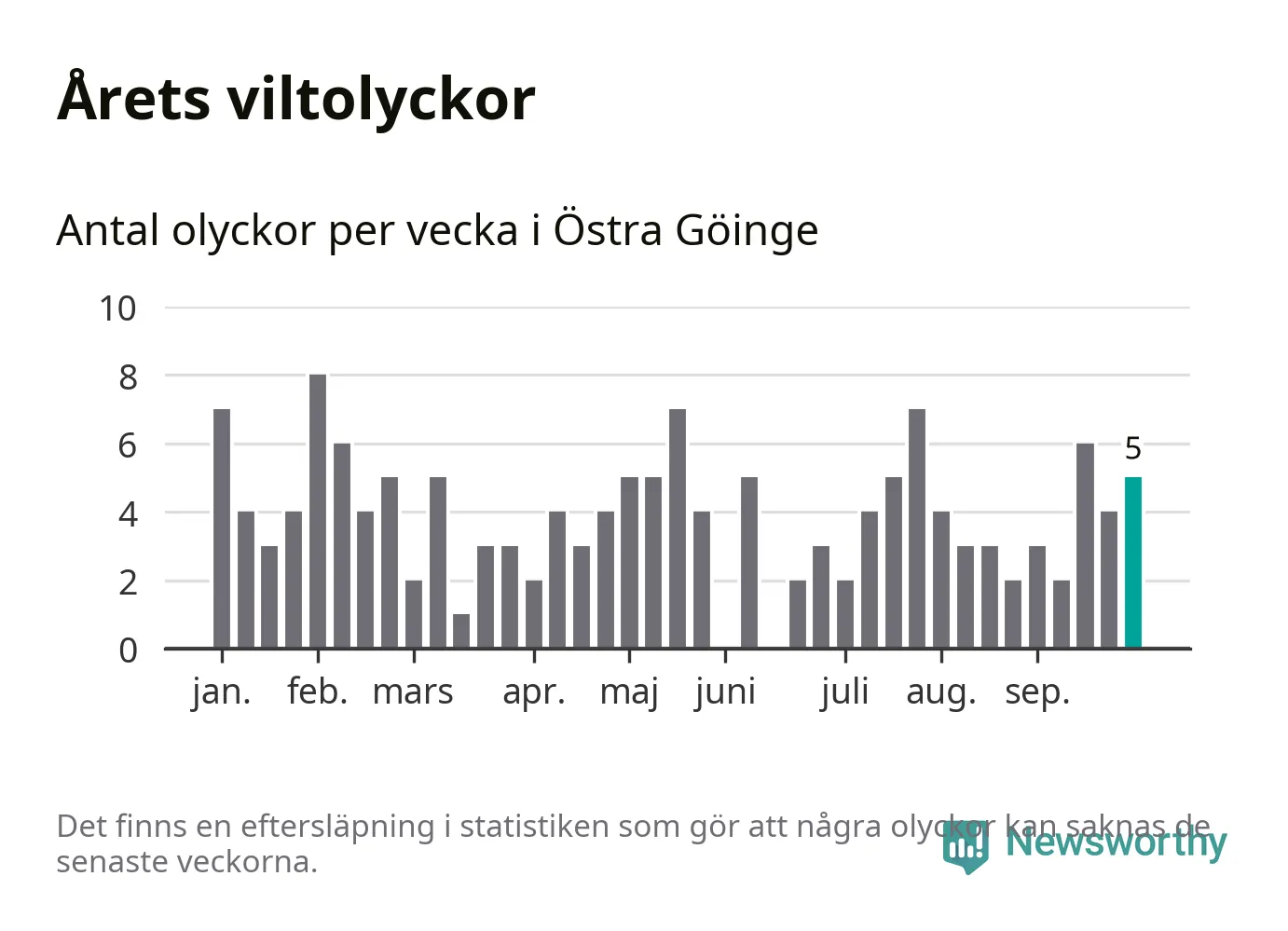 Hittills har fem viltolyckor rapporterats in i Östra Göinge kommun från vecka 40. Se listan här.
